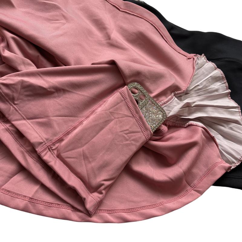 Falda de Yoga de Primavera y Verano Cintura Alta Alta Elasticidad Control de Abdomen Anti-Exposición Tenis Correr Falda Deportiva Fitness Culottes Falsos de Dos Piezas Bolsillo con Solapa Pantalones