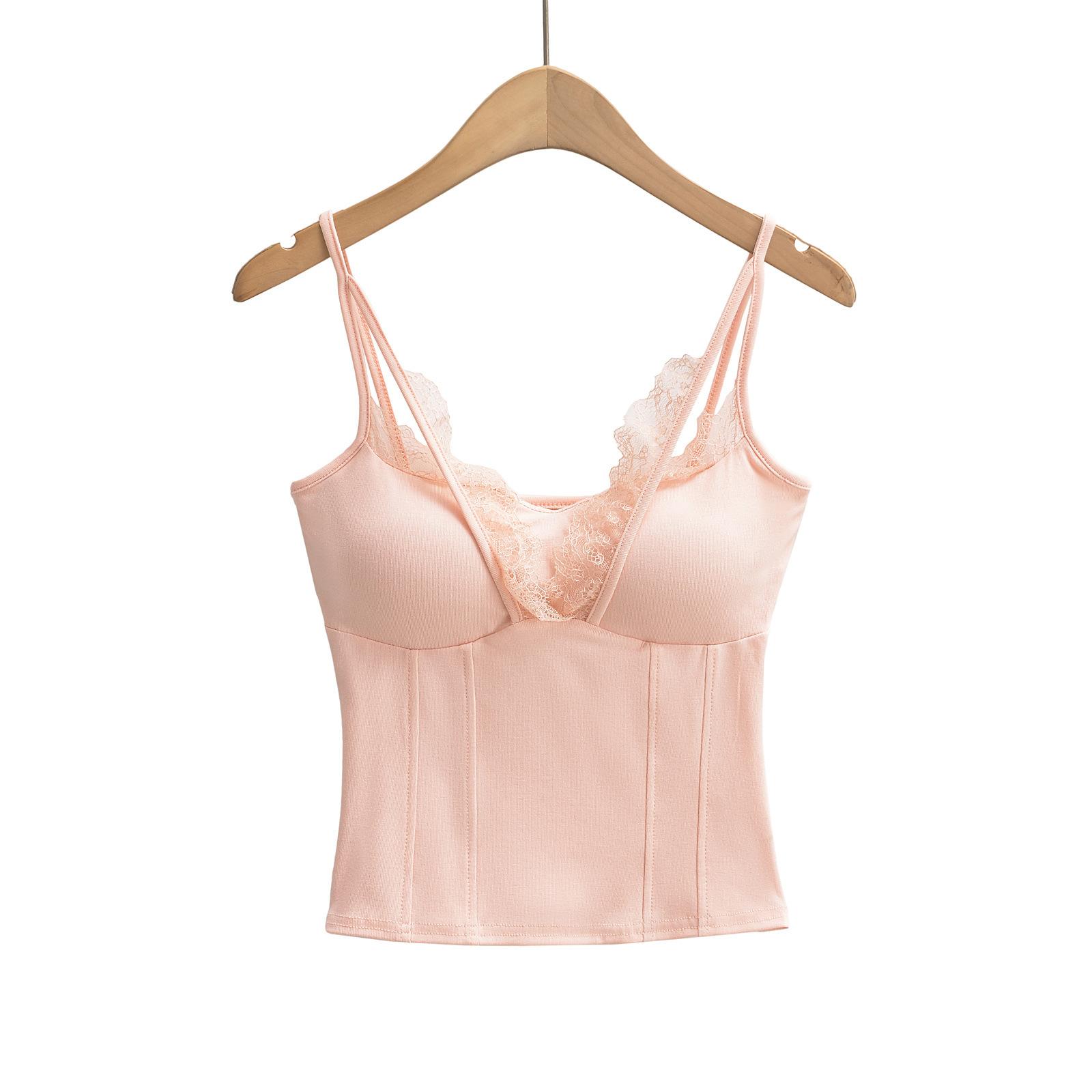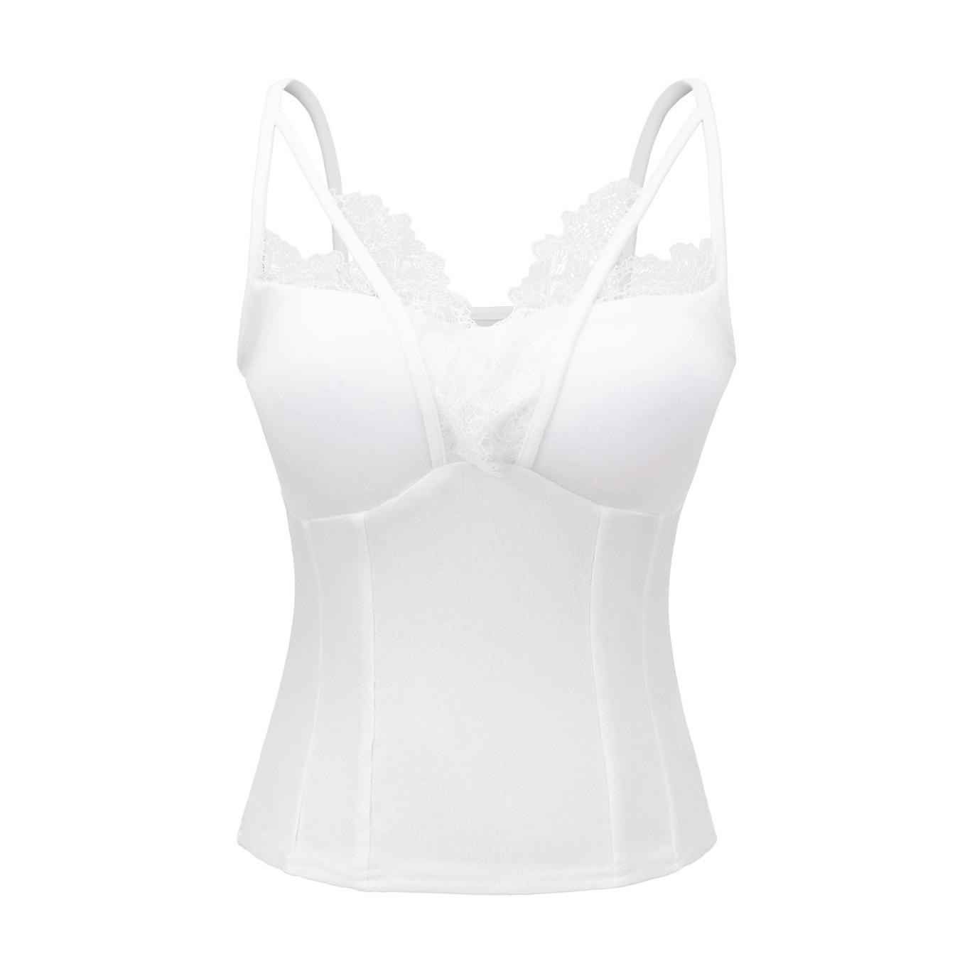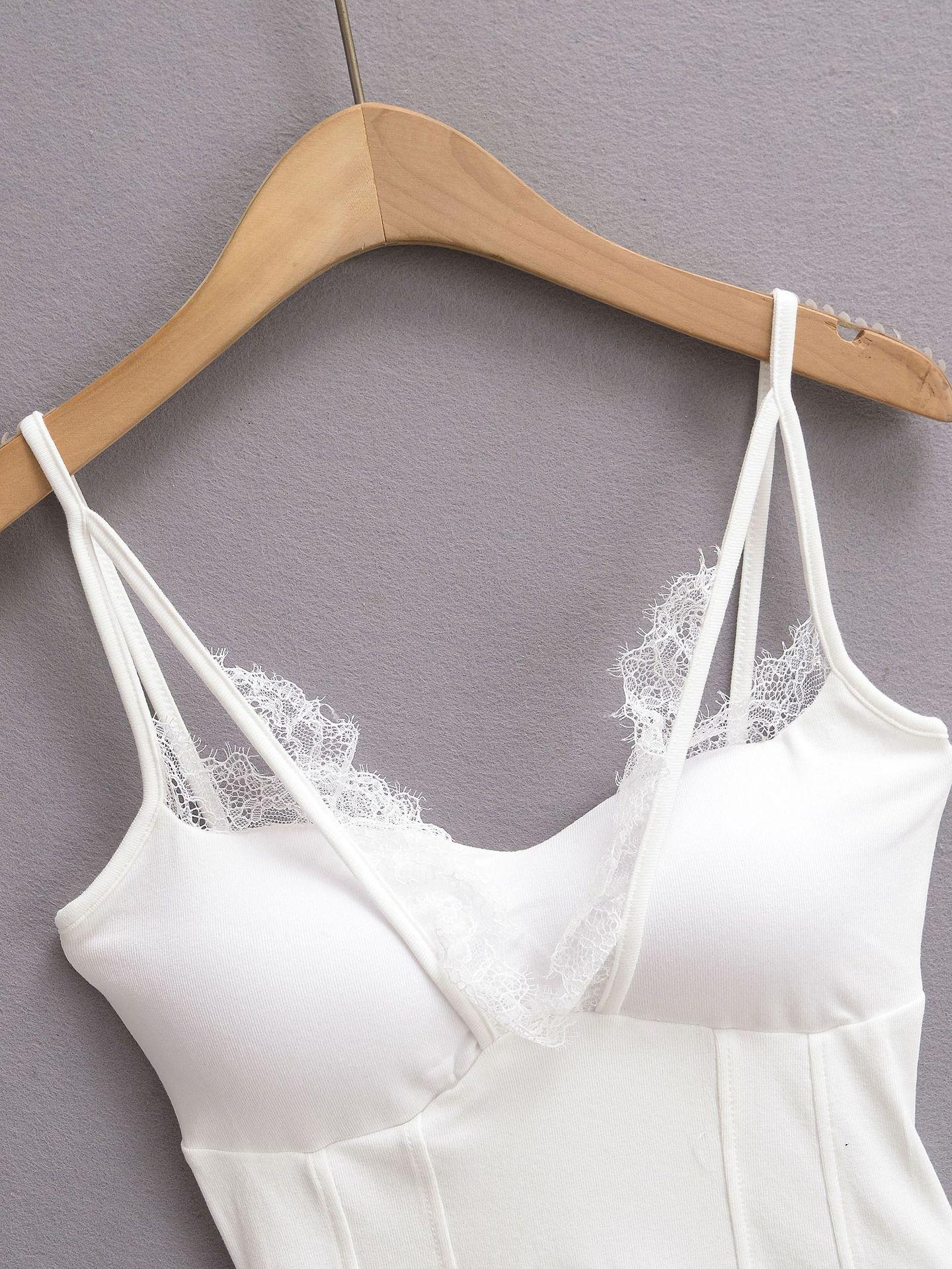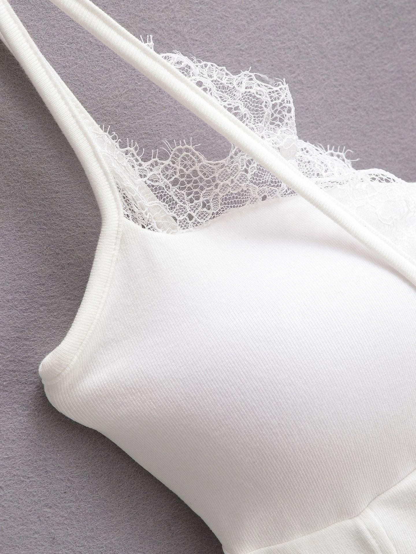 Primavera Nuevo Top Corto Ajustado para Fondo Puro Lujurioso Sexy Encaje Empalmado Camisola para Mujer