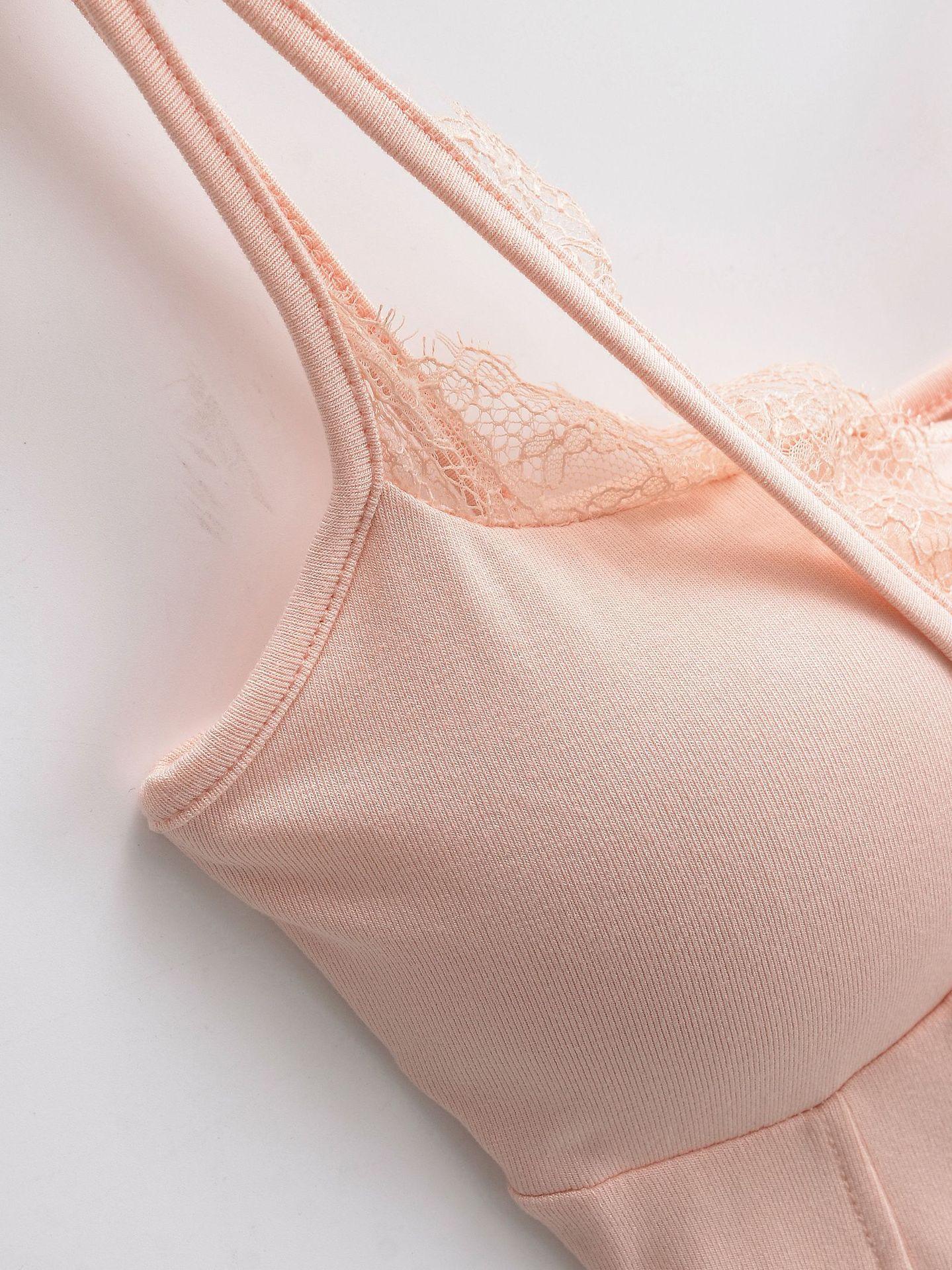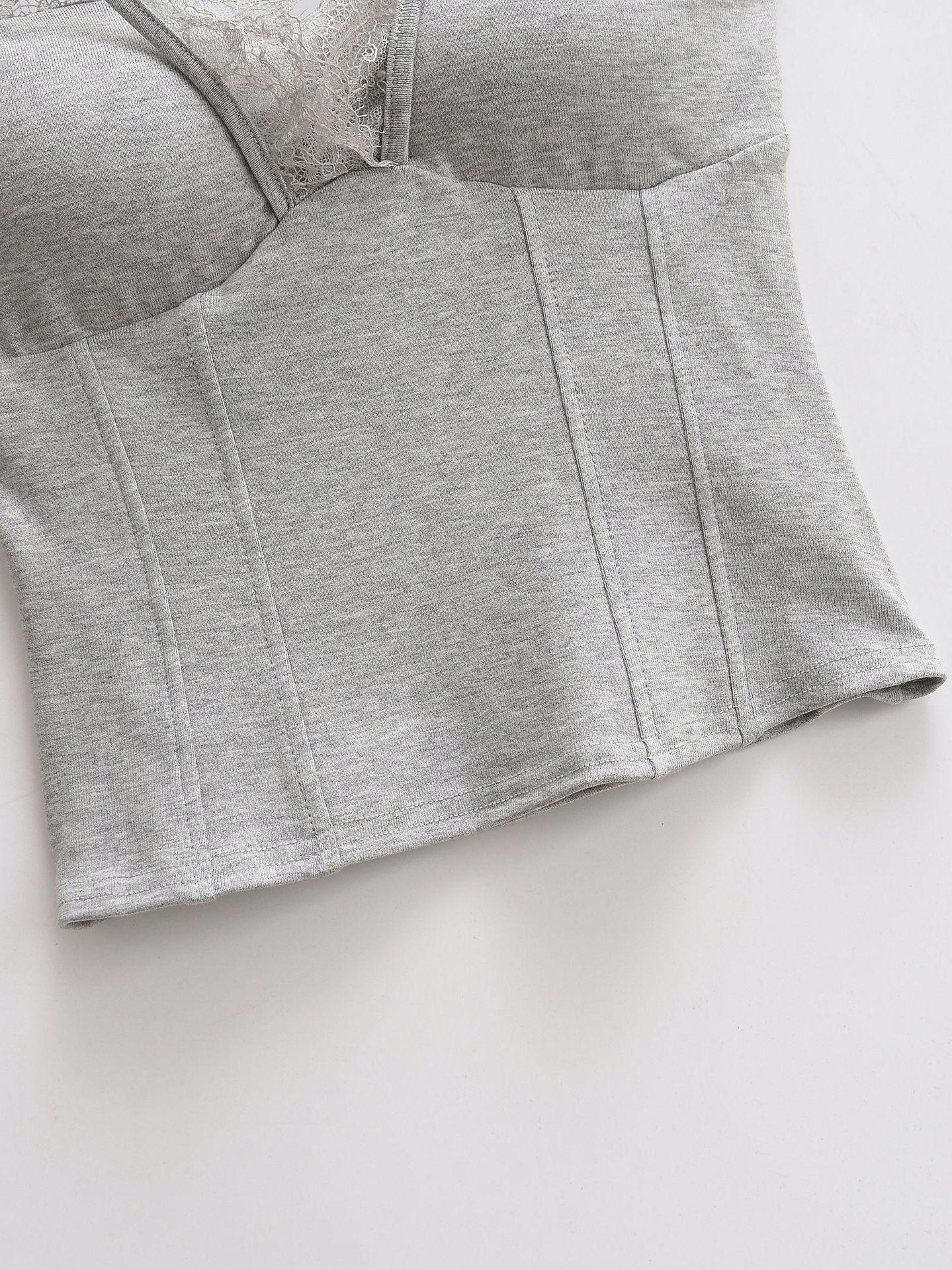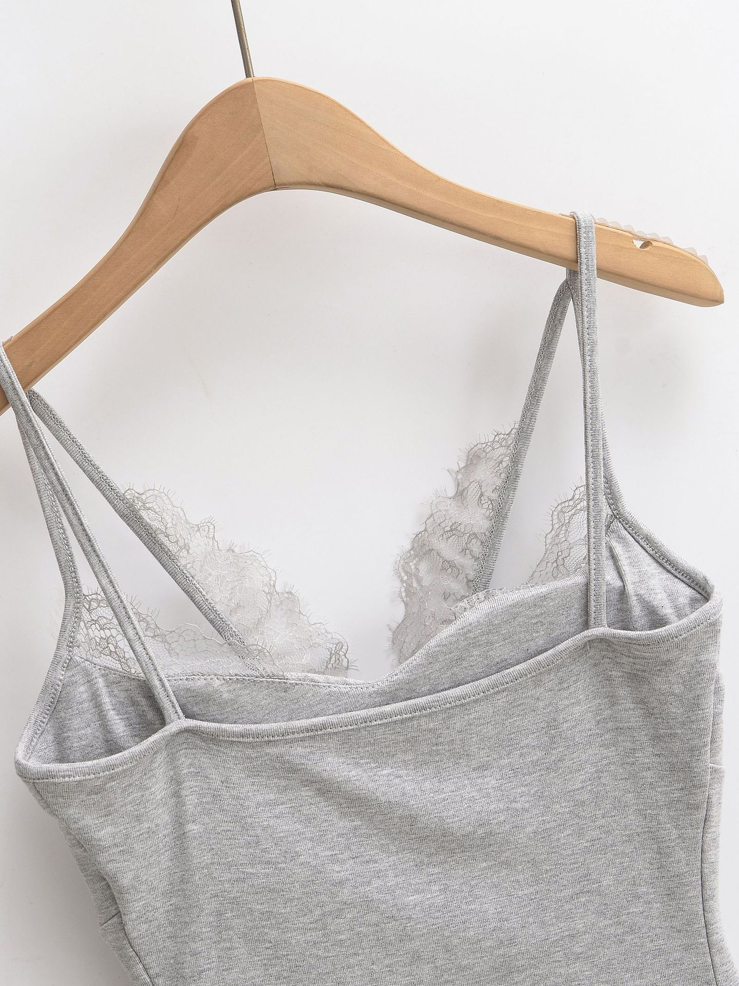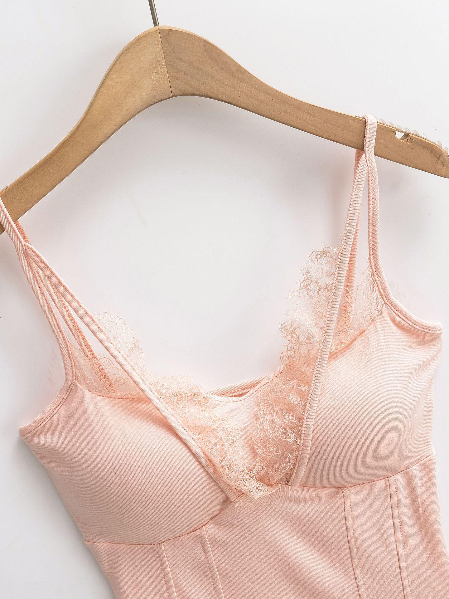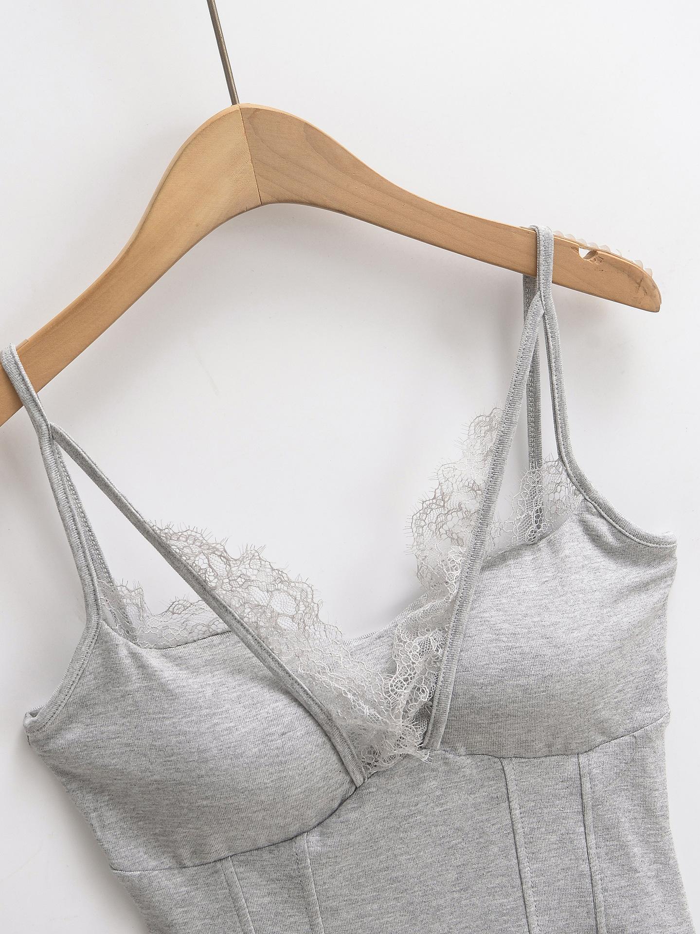Primavera Nuevo Top Corto Ajustado para Fondo Puro Lujurioso Sexy Encaje Empalmado Camisola para Mujer