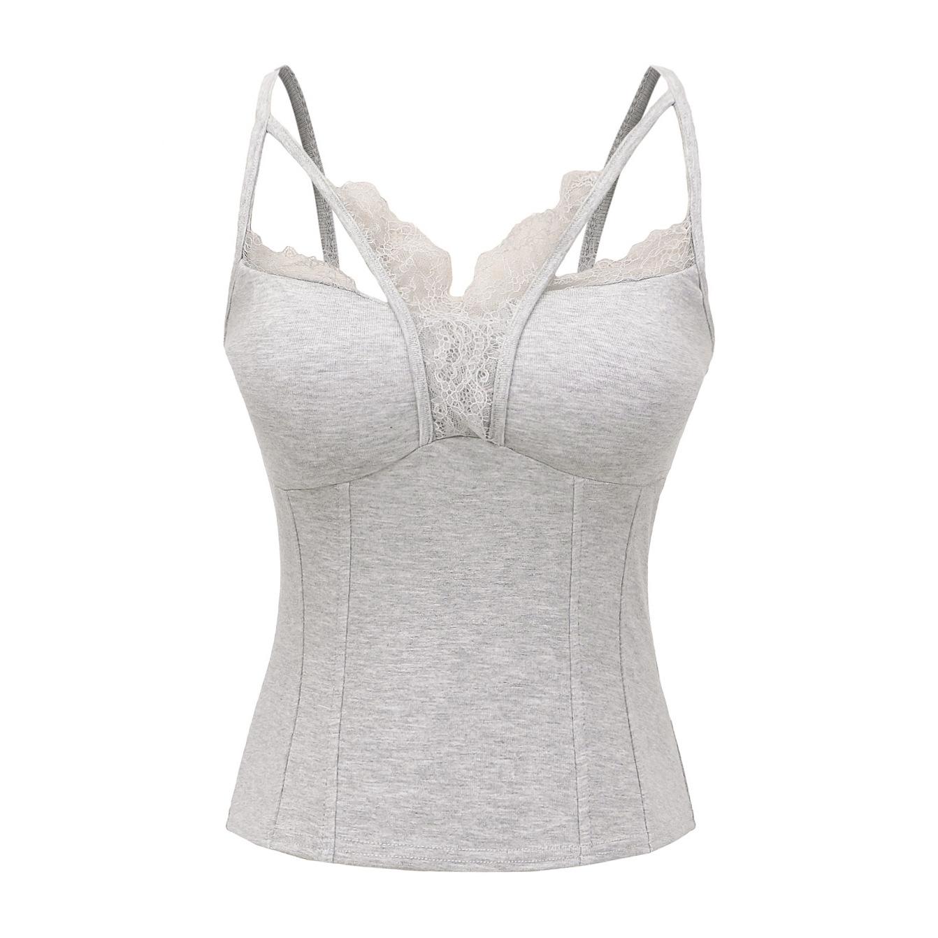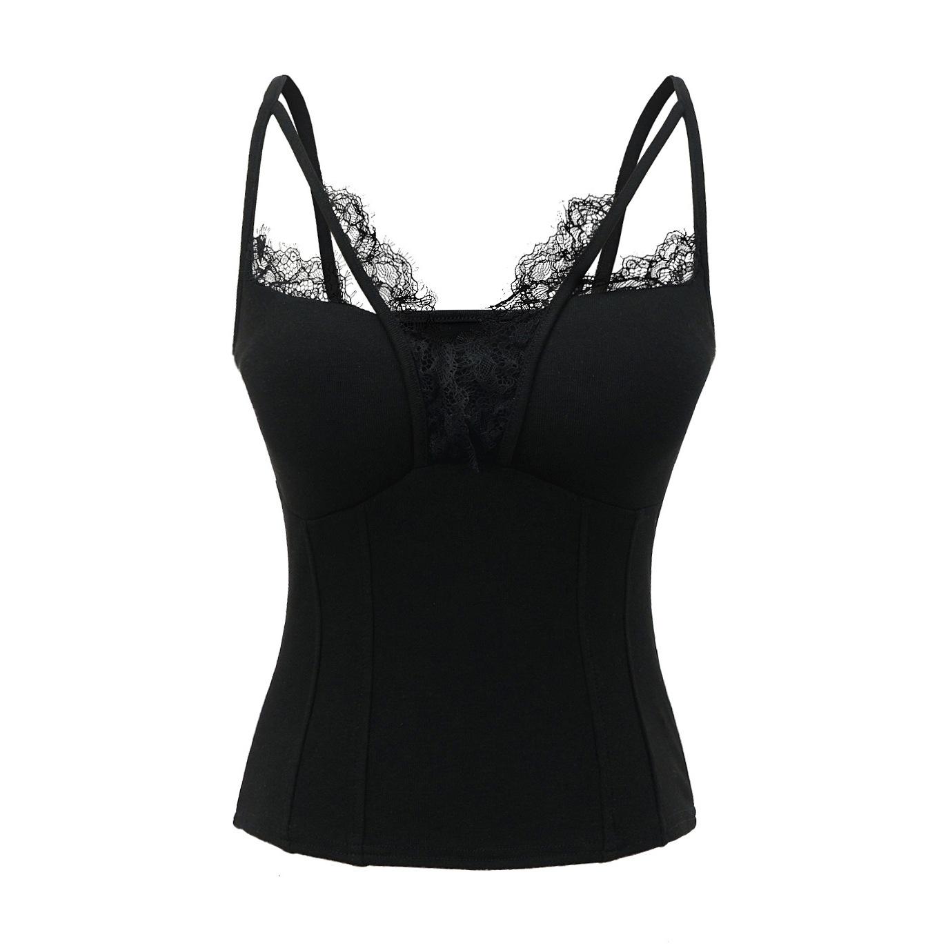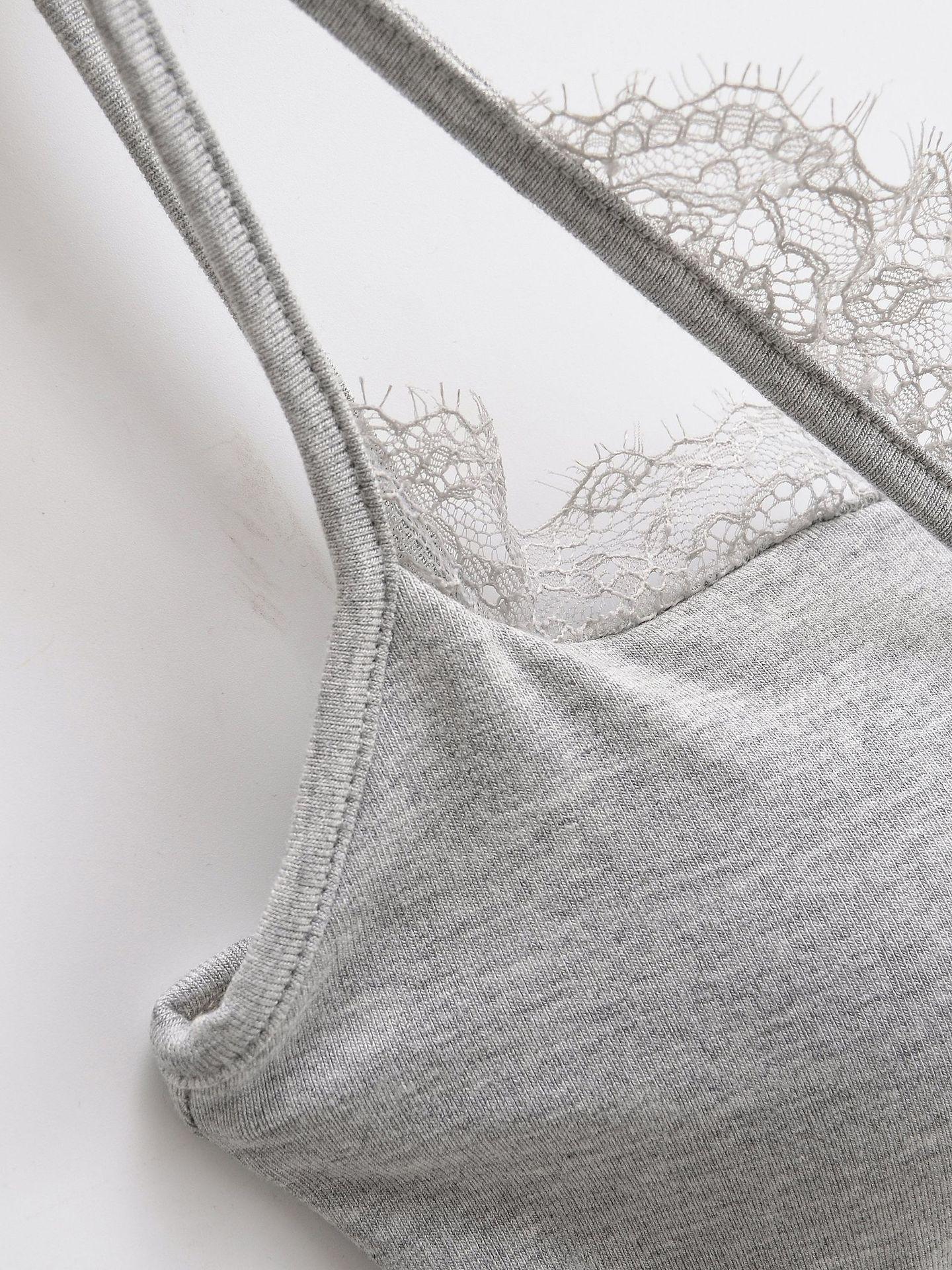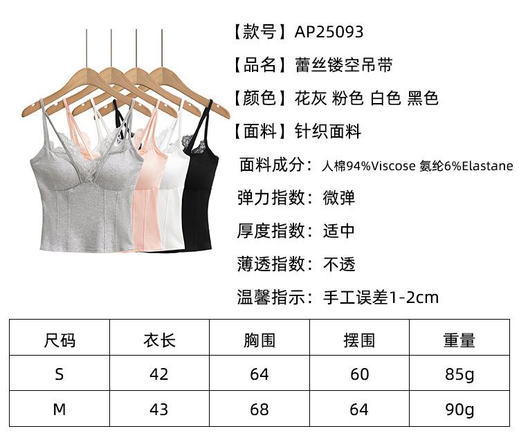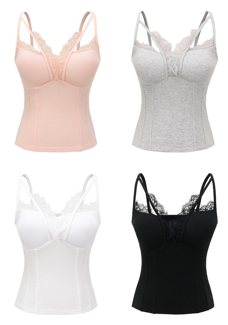 Primavera Nuevo Top Corto Ajustado para Fondo Puro Lujurioso Sexy Encaje Empalmado Camisola para Mujer