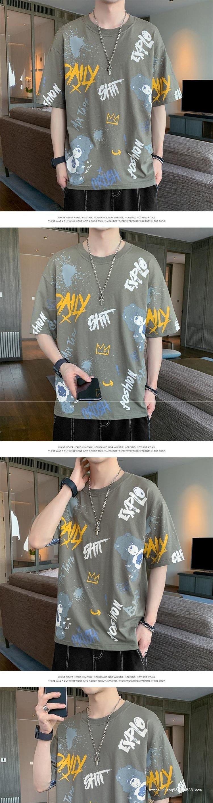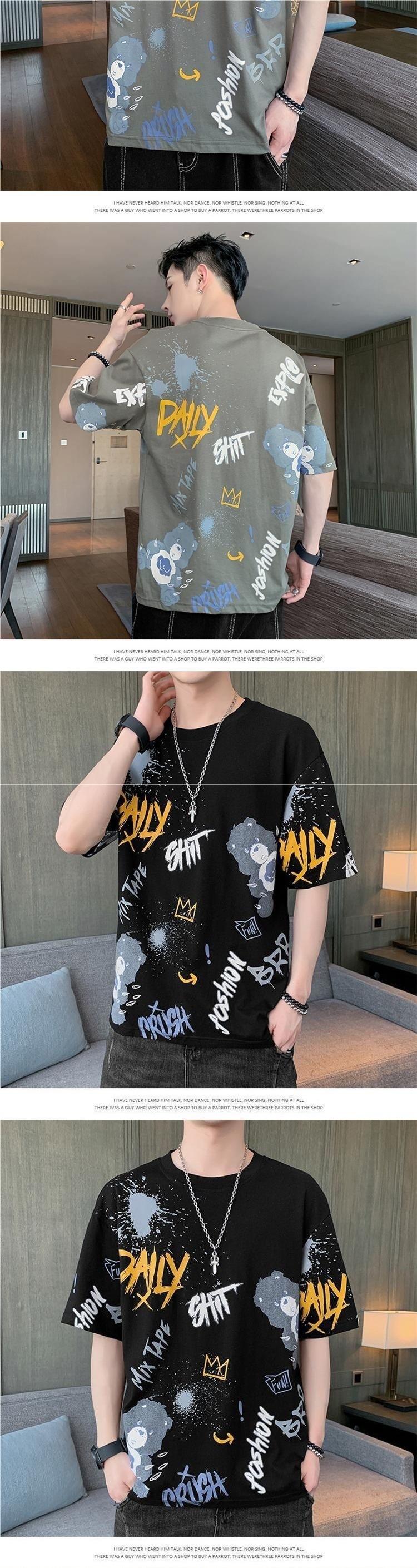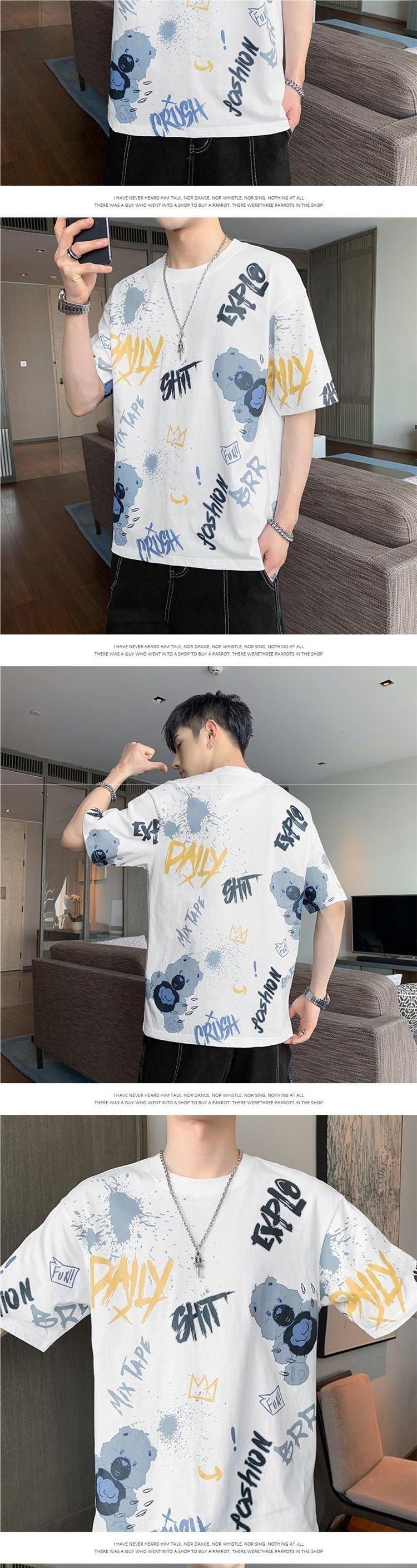 Playera de Manga Corta para Hombre Verano Cuello Redondo Manga Corta Camiseta Moda Suelta Camiseta Estampada Top para Jóvenes