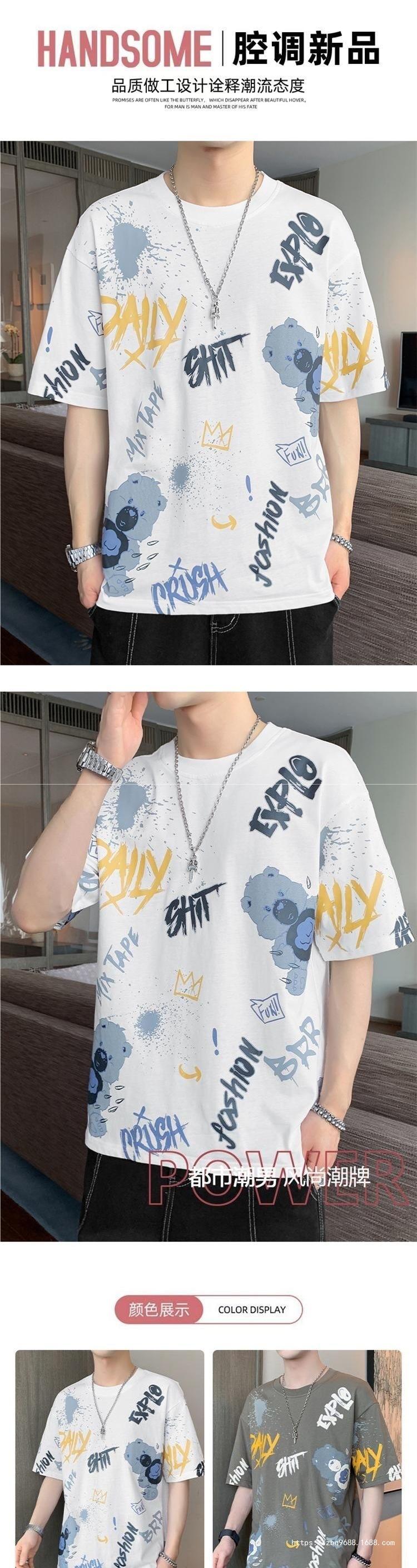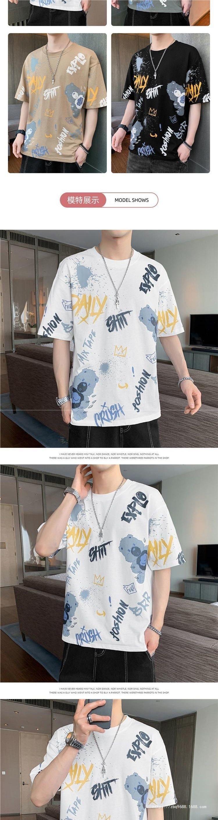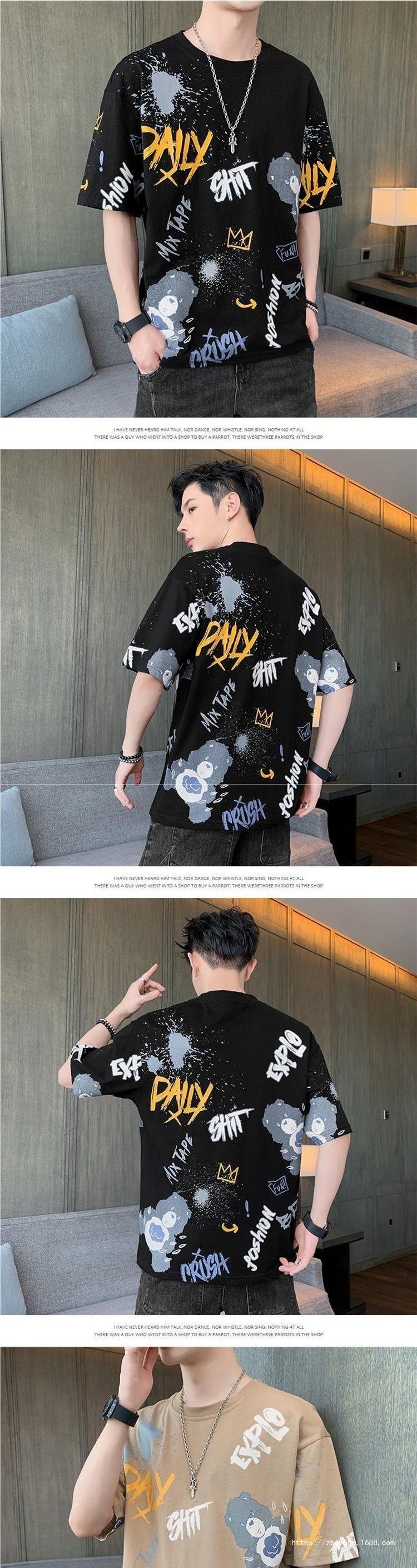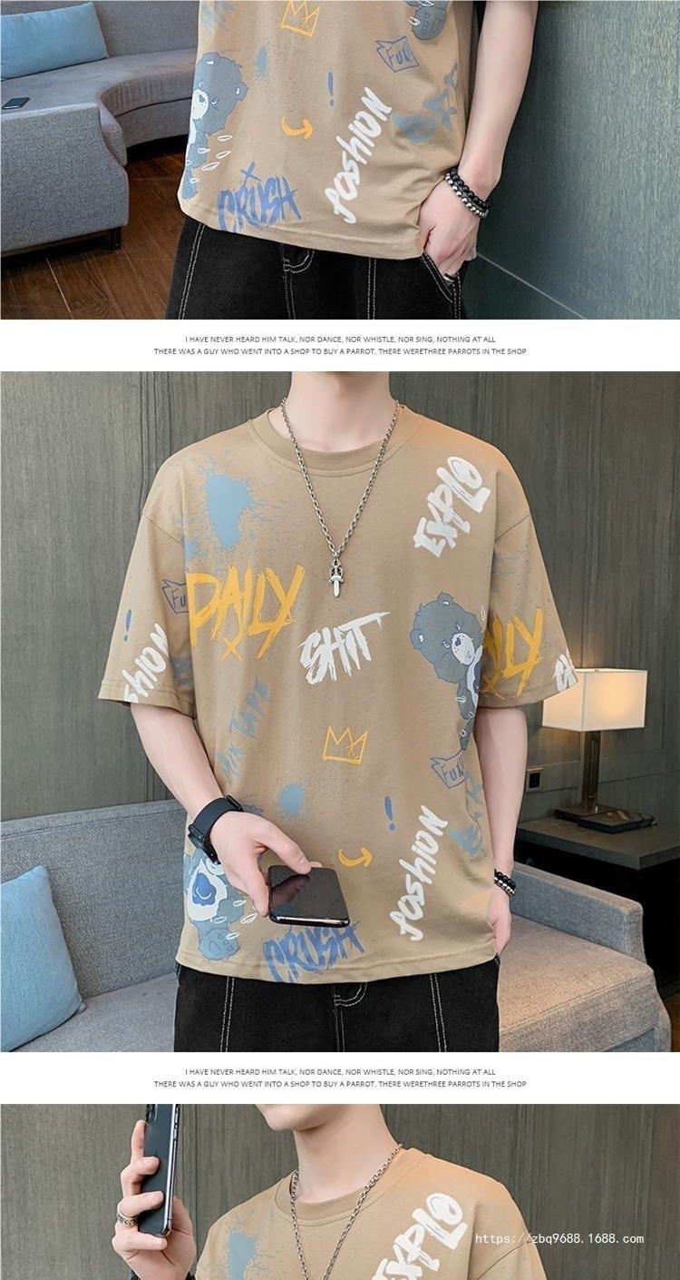 Playera de Manga Corta para Hombre Verano Cuello Redondo Manga Corta Camiseta Moda Suelta Camiseta Estampada Top para Jóvenes