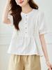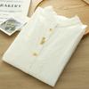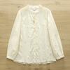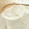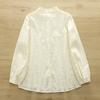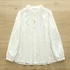 Camisa francesa artística de manga larga para mujer con cuello de encaje y bordado tridimensional, hermosa y elegante base de algodón puro.
