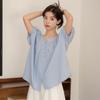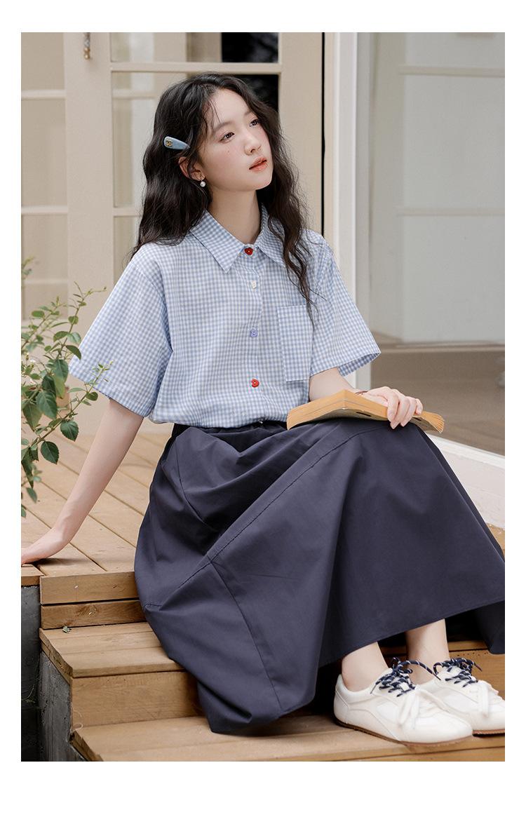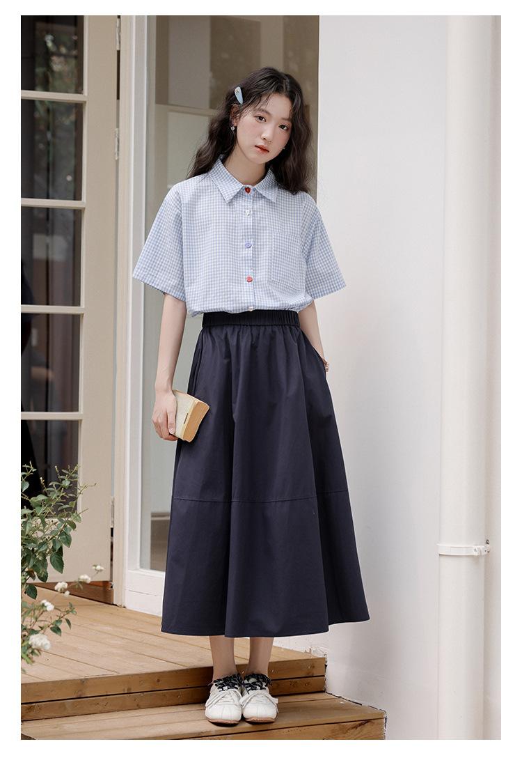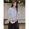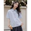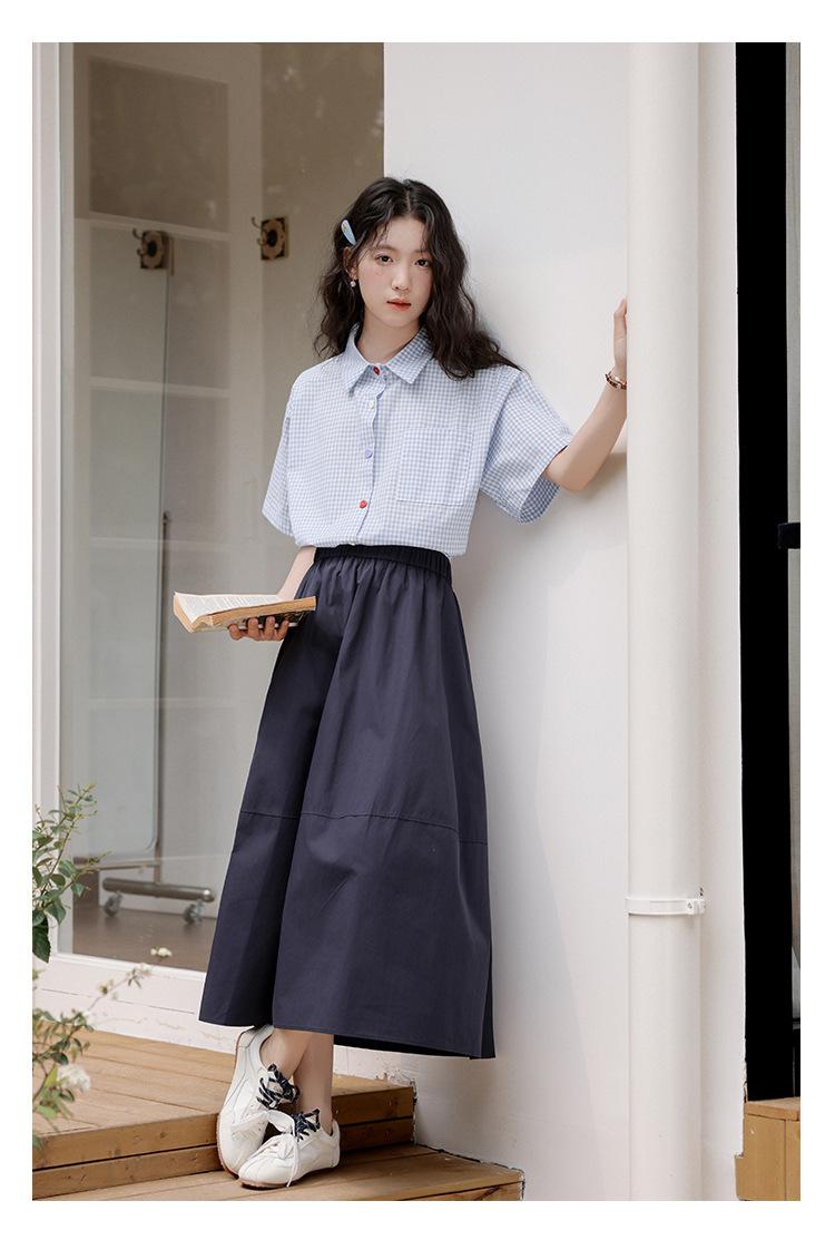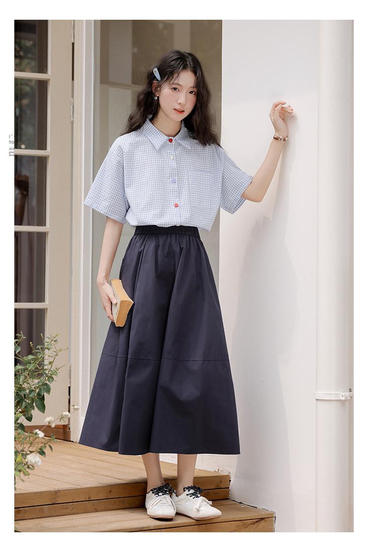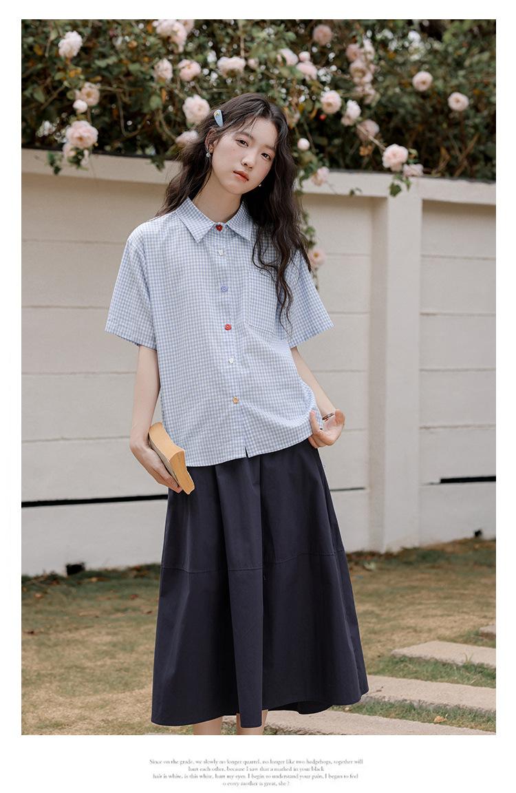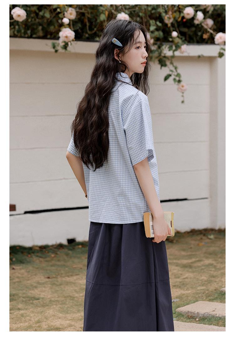 Verano 2025 Nuevo Estilo Japonés Estilo Universitario Botón Colorido Reductor de Edad Cuadros Manga Corta Cuello Polo Camisa Top para Mujer