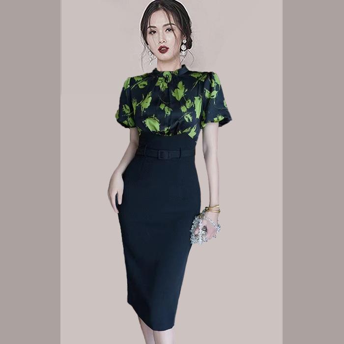 Vestido elegante estilo occidental verano 2023 elegante estilo francés Hepburn Tea Break moda mujer estilo alto vestido de manga corta