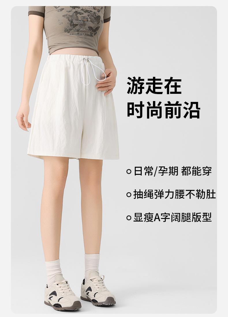 Pantalones cortos finos de verano para embarazadas, nuevo estilo 2025, pantalones anchos informales de pierna ancha sin barriga para embarazadas.