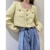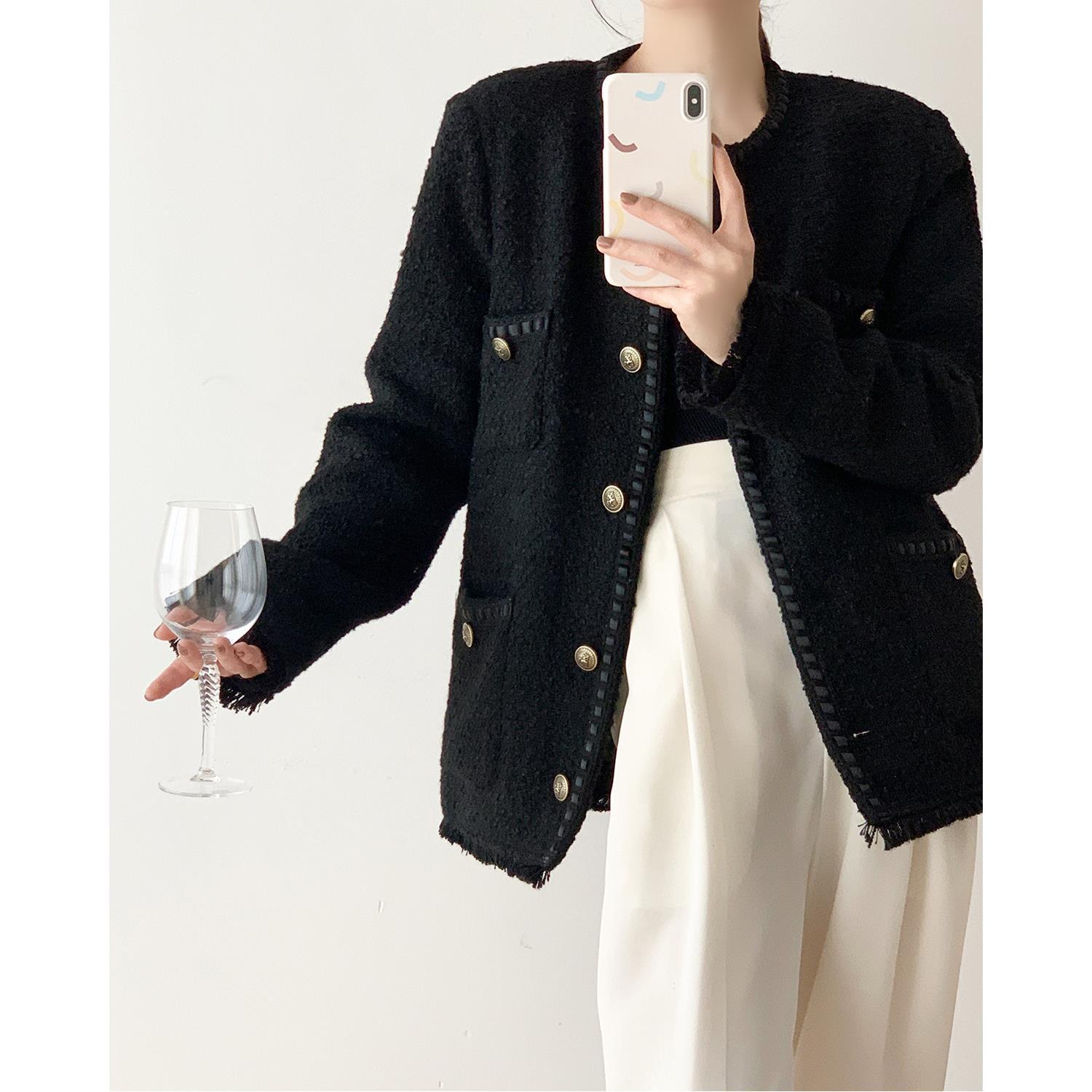 Chaqueta Negra Pequeña Fragante para Mujer 2025 Primavera y Otoño Nuevo Estilo Femenino Elegante Retro Tweed Chaqueta Corta Top