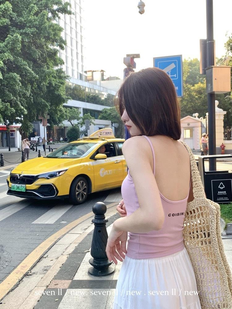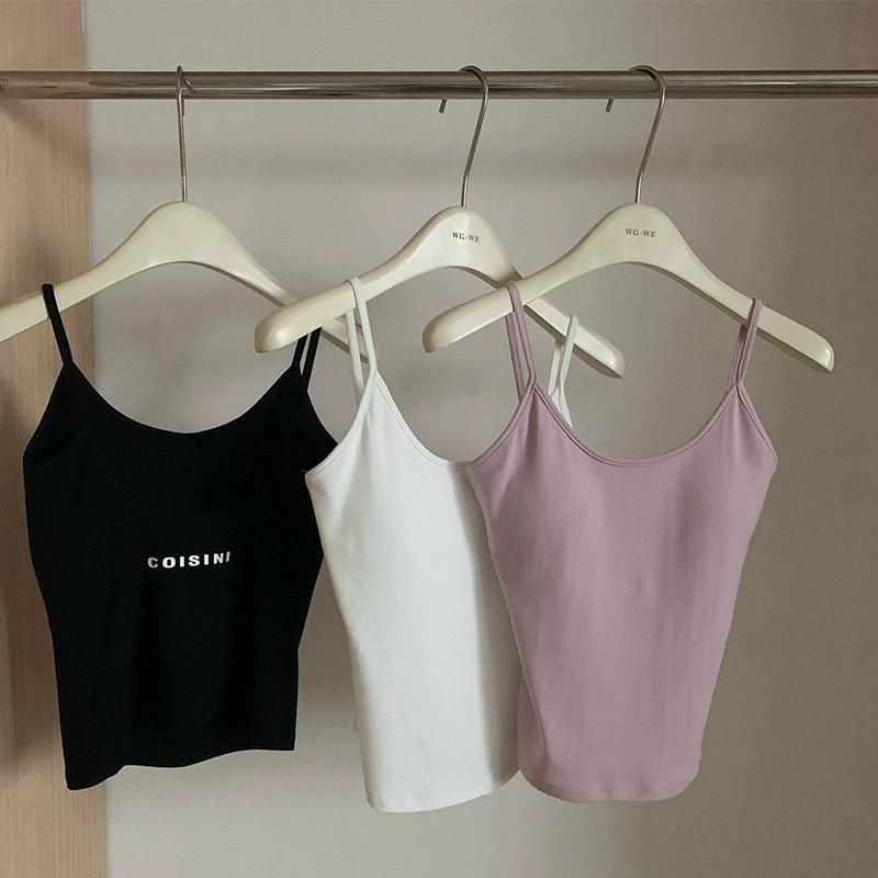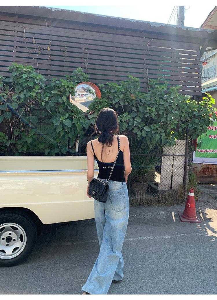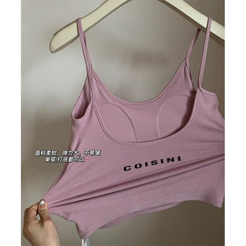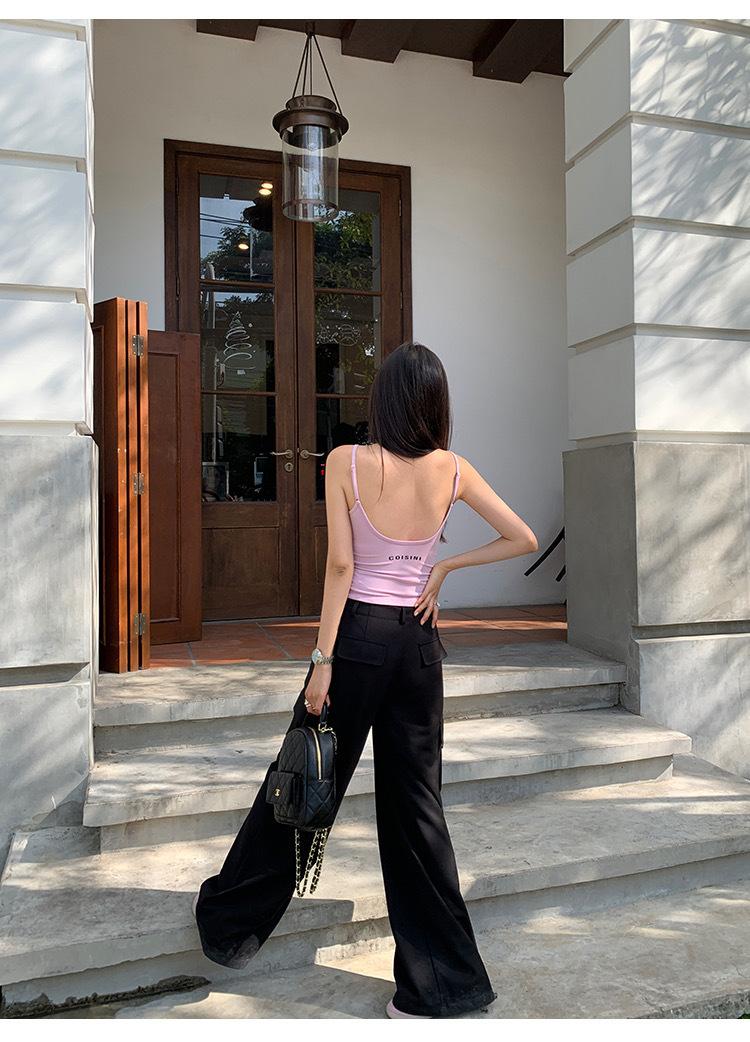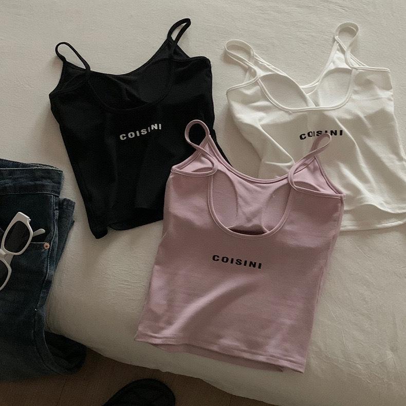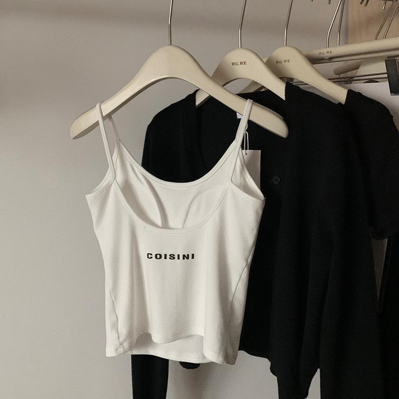 Top de tirantes finos con espalda descubierta y estampado de letras estilo coreano, sexy, ajustado, con espalda descubierta, de hada, sencillo, combinable con todo, con copa fija.