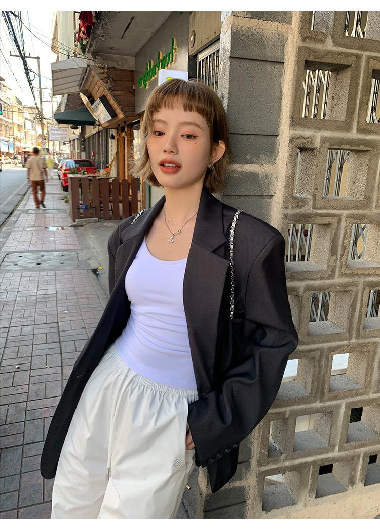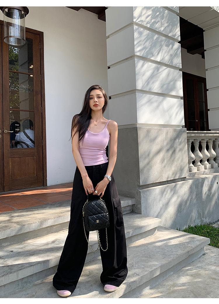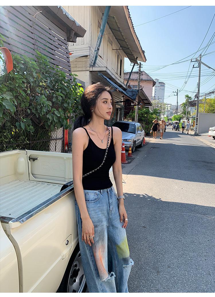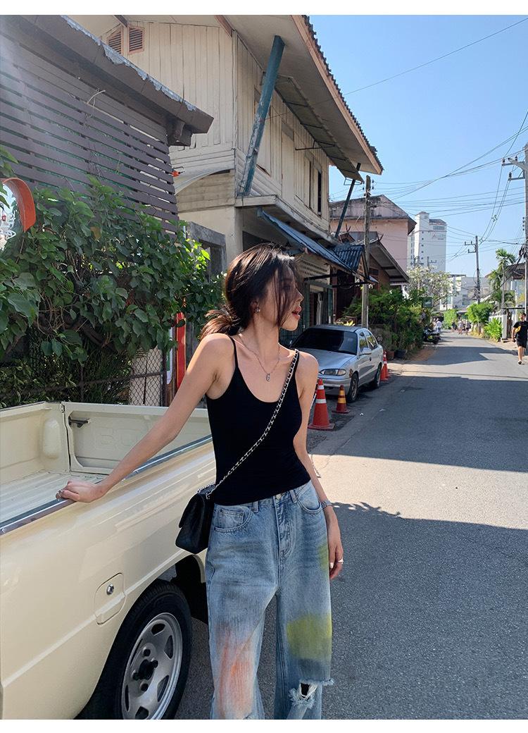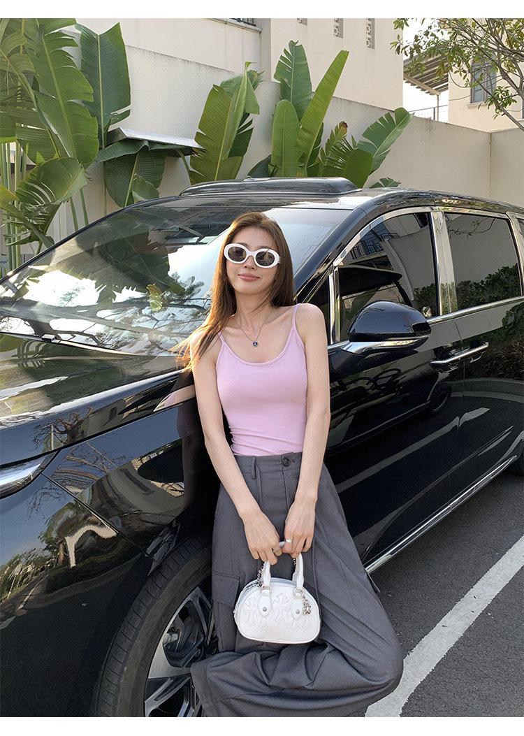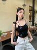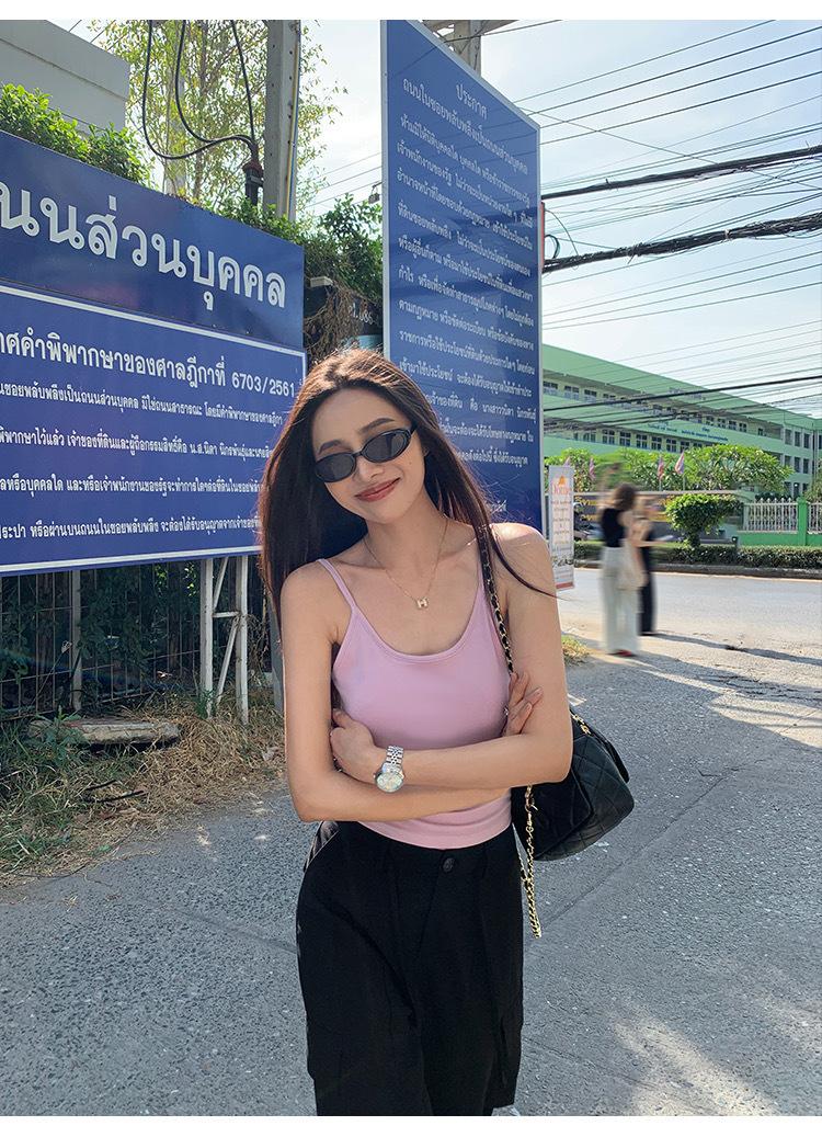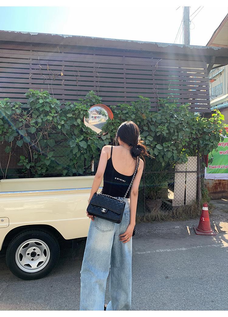 Top de tirantes finos con espalda descubierta y estampado de letras estilo coreano, sexy, ajustado, con espalda descubierta, de hada, sencillo, combinable con todo, con copa fija.