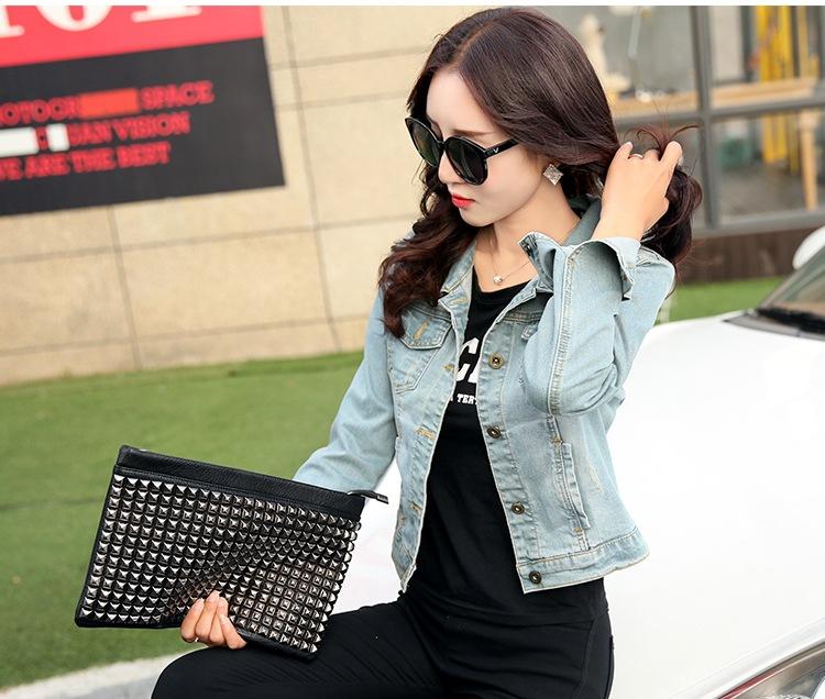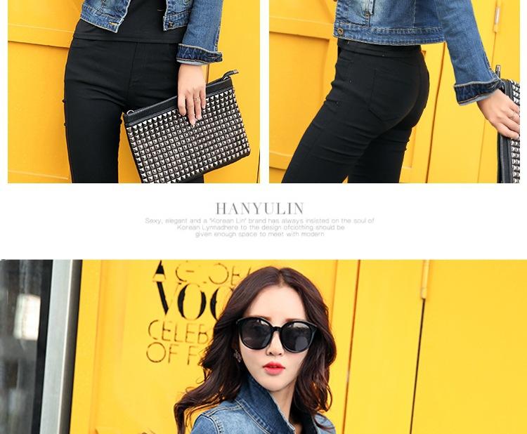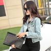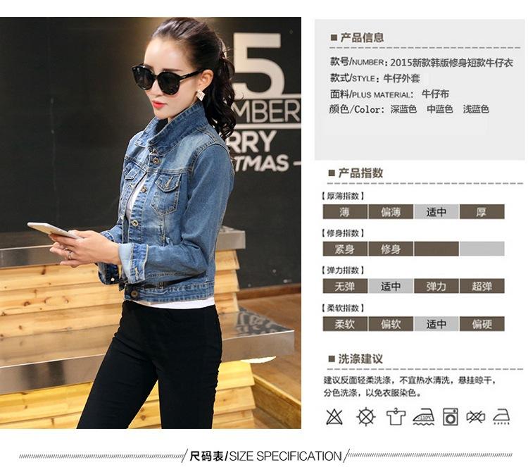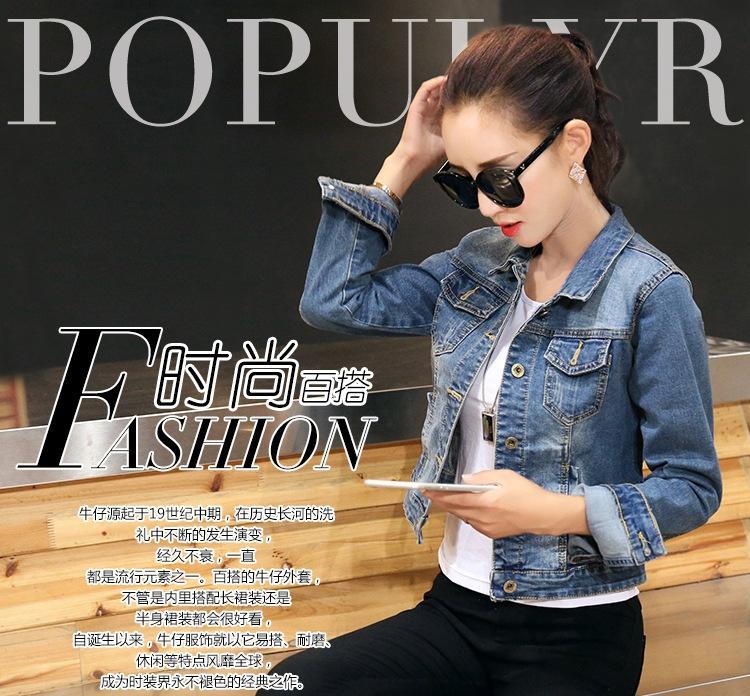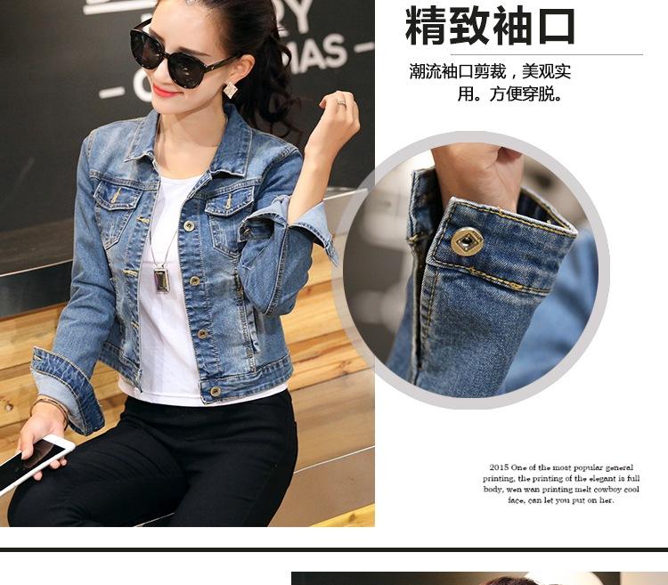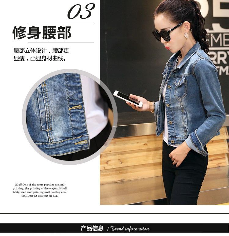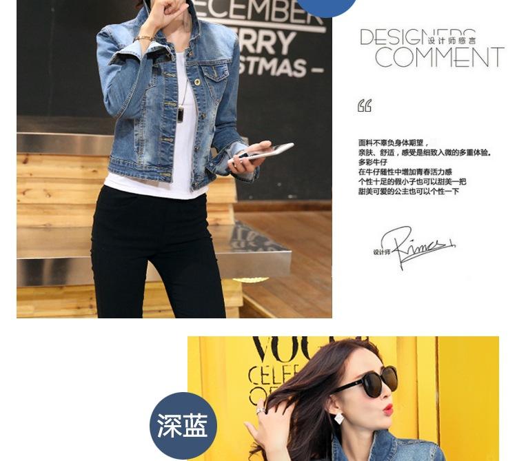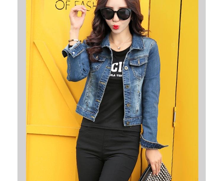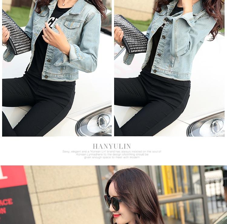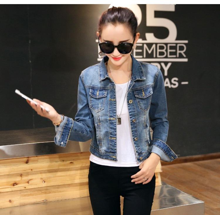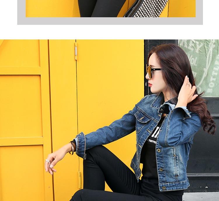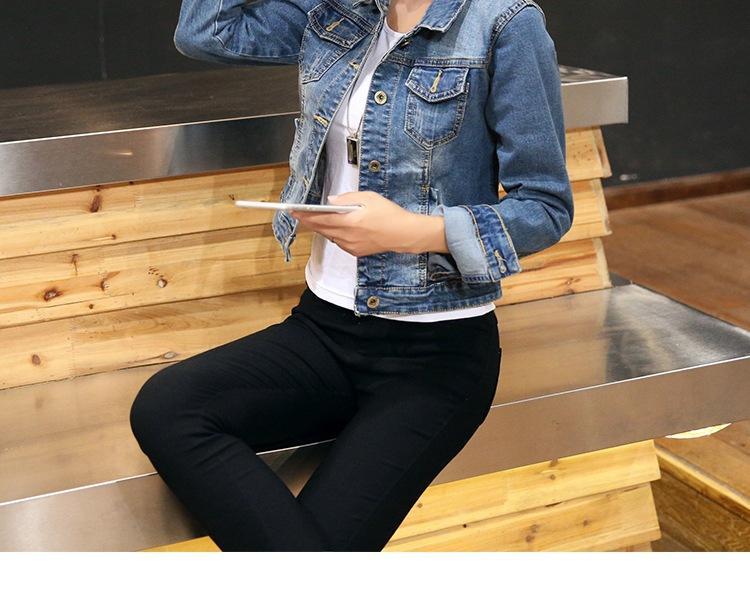 Chaqueta Corta de Mezclilla para Mujer Otoño Nueva Estilo Coreano Ajustada de Color Sólido Combinable Ropa de Mezclilla de Manga Larga