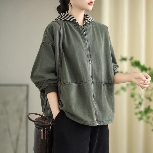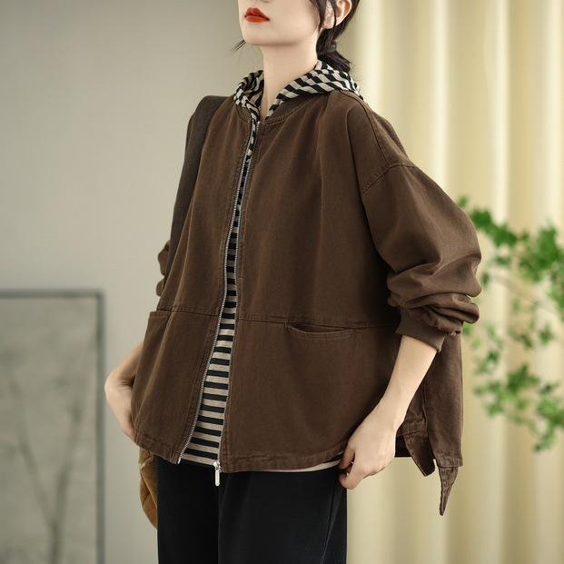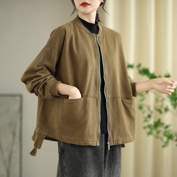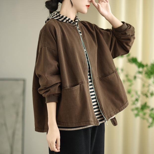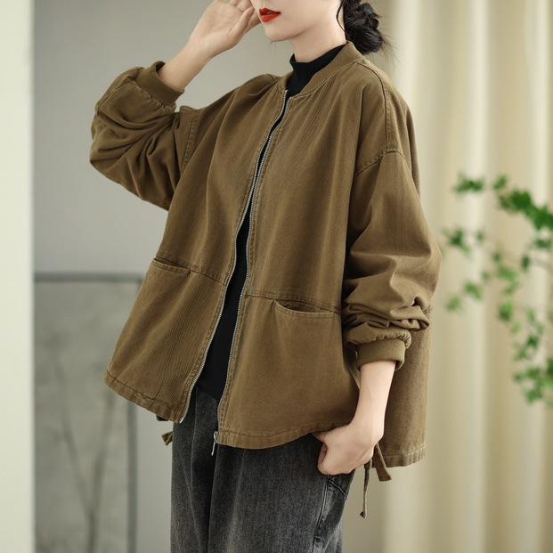 Chaqueta de béisbol de algodón para mujer, primavera 2025, holgada, sencilla, informal, combinable
