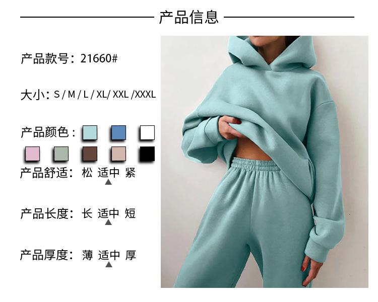 Conjunto de dos piezas de otoño e invierno 2023, ropa transfronteriza de Amazon para mujer europea y americana, suéter con capucha de color sólido, pantalones, traje informal de moda