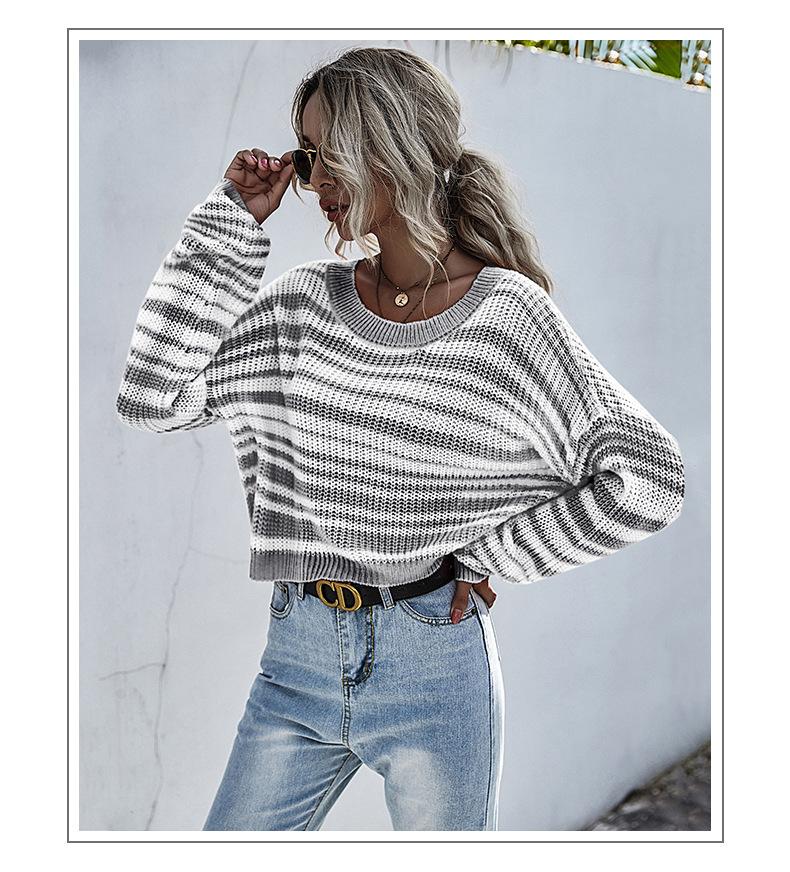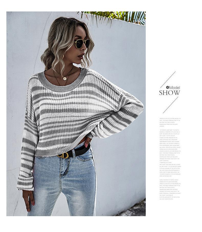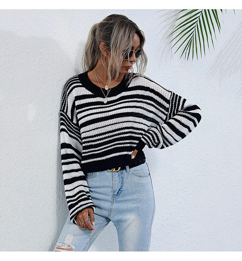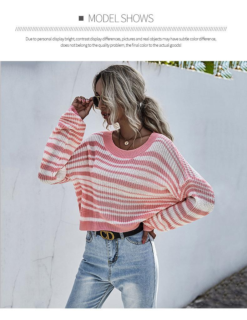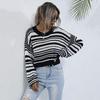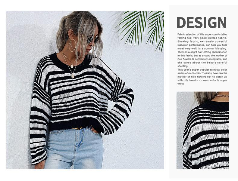Suéter de cuello redondo de manga larga con parte inferior de otoño para mujer, suéter corto a rayas, estación independiente de Amazon, comercio exterior transfronterizo, Europa y Estados Unidos