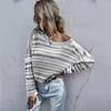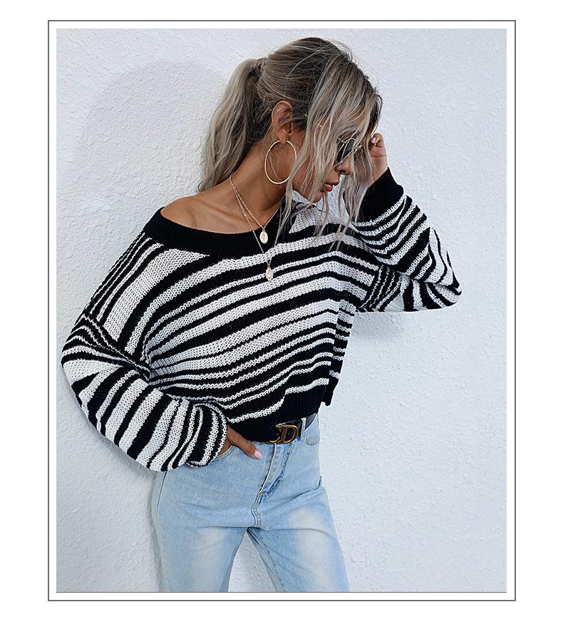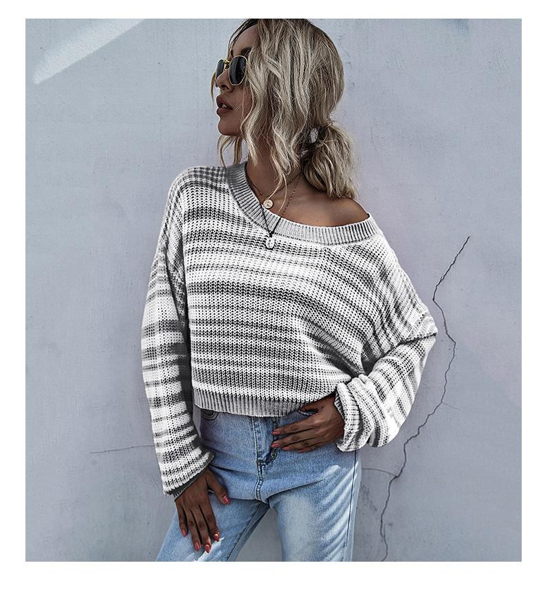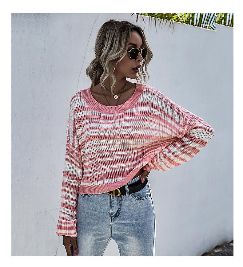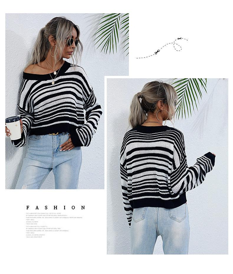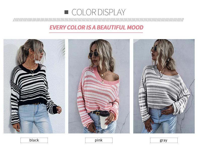 Suéter de cuello redondo de manga larga con parte inferior de otoño para mujer, suéter corto a rayas, estación independiente de Amazon, comercio exterior transfronterizo, Europa y Estados Unidos