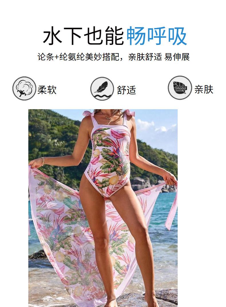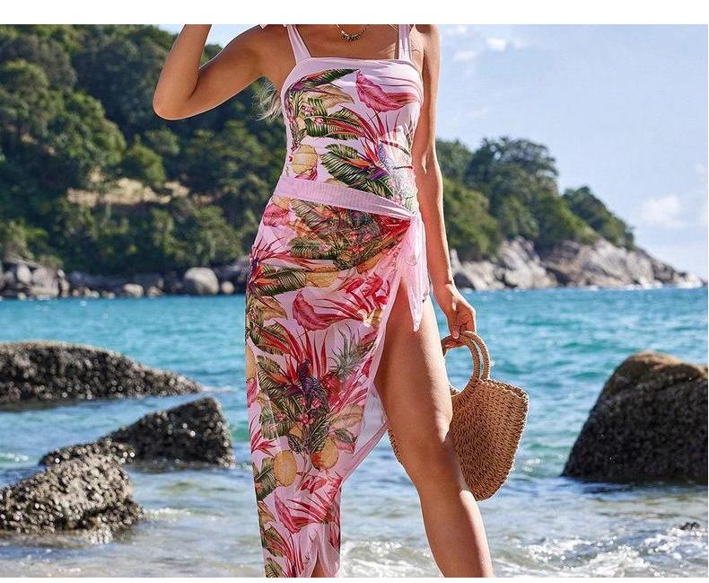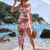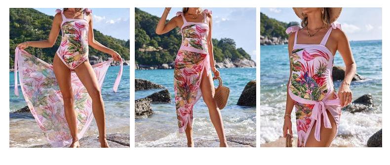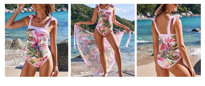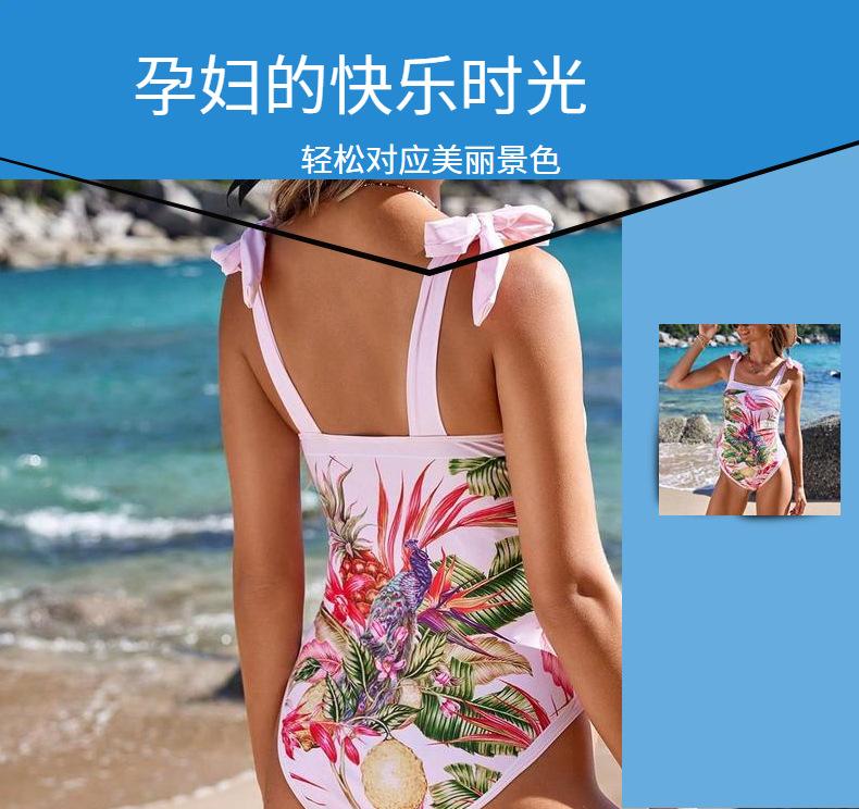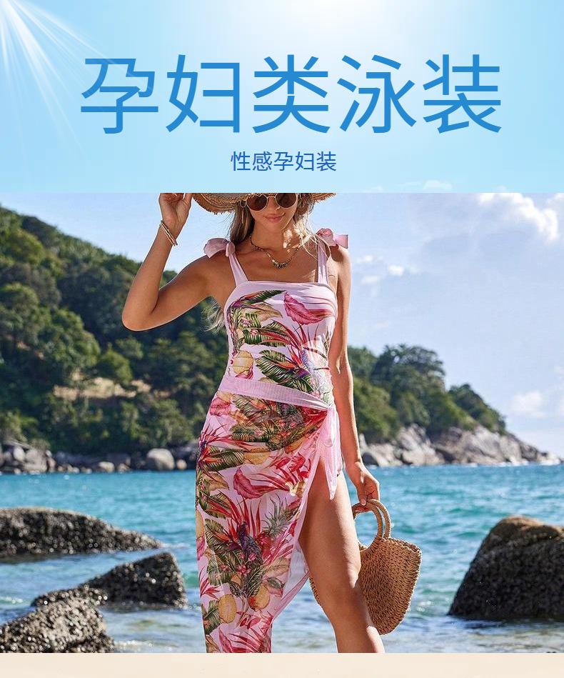 Conjunto de bikini de tres piezas con estampado fresco para mujeres embarazadas, estilo europeo y americano, para vacaciones de verano, 2025