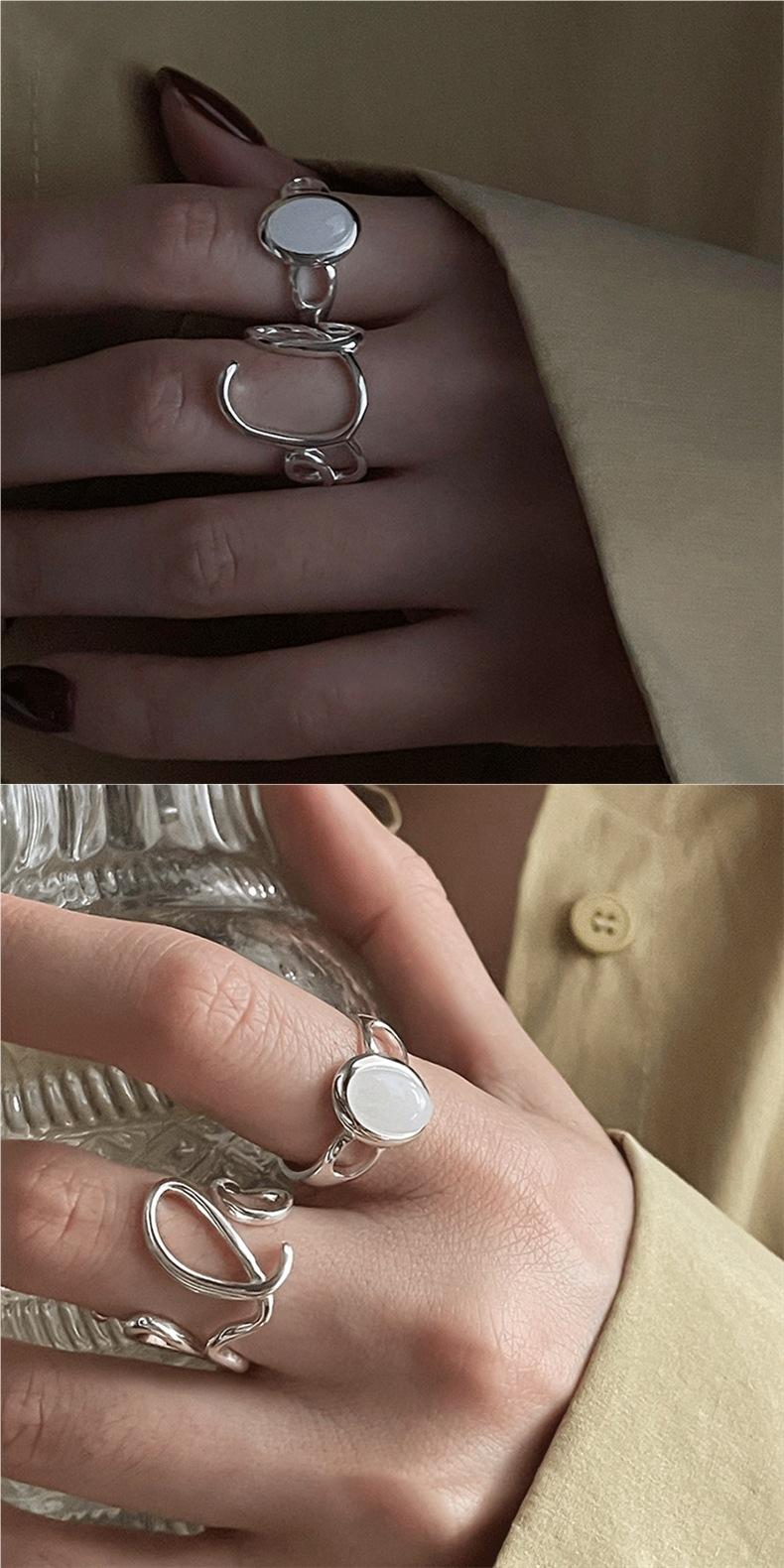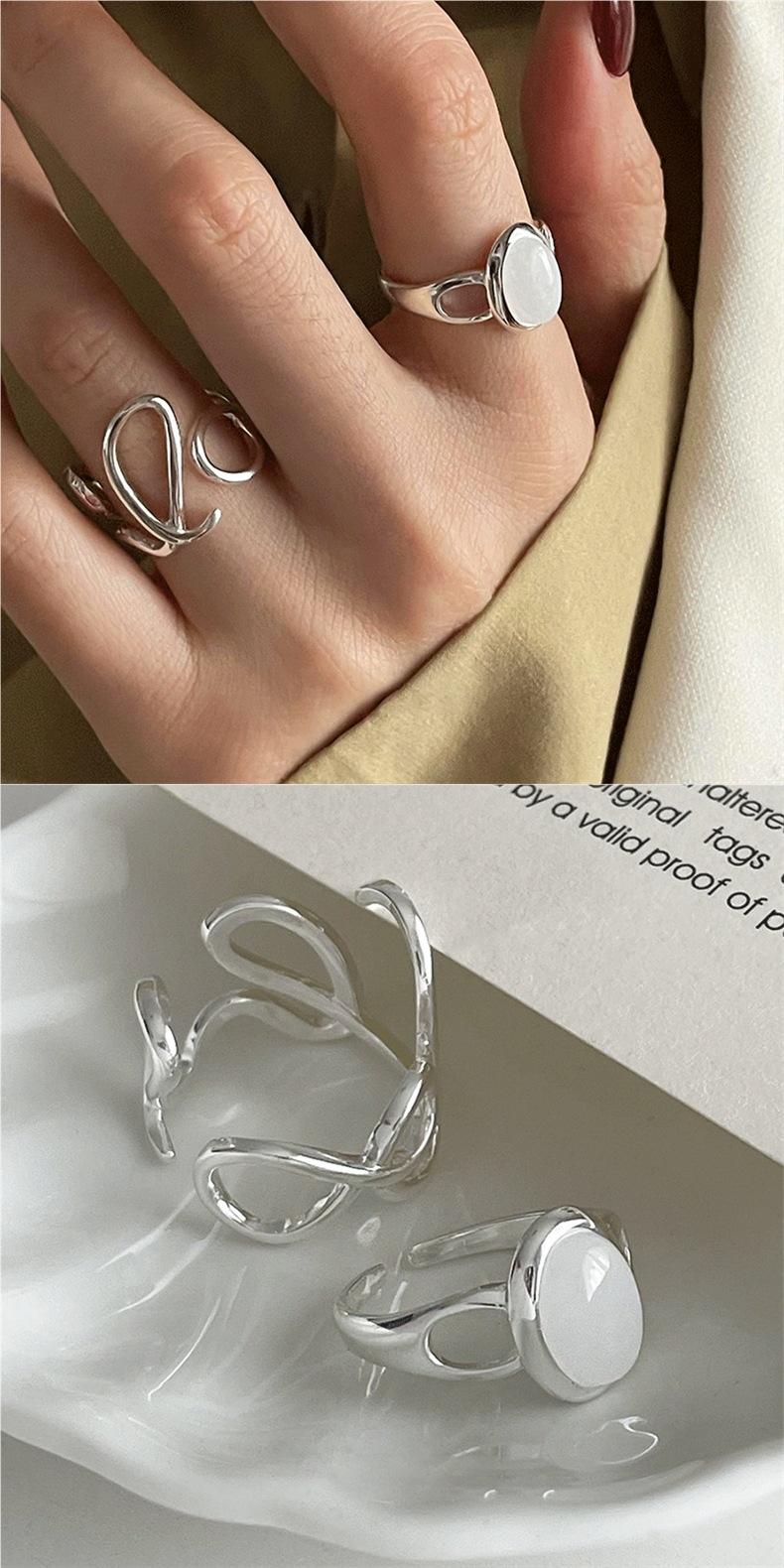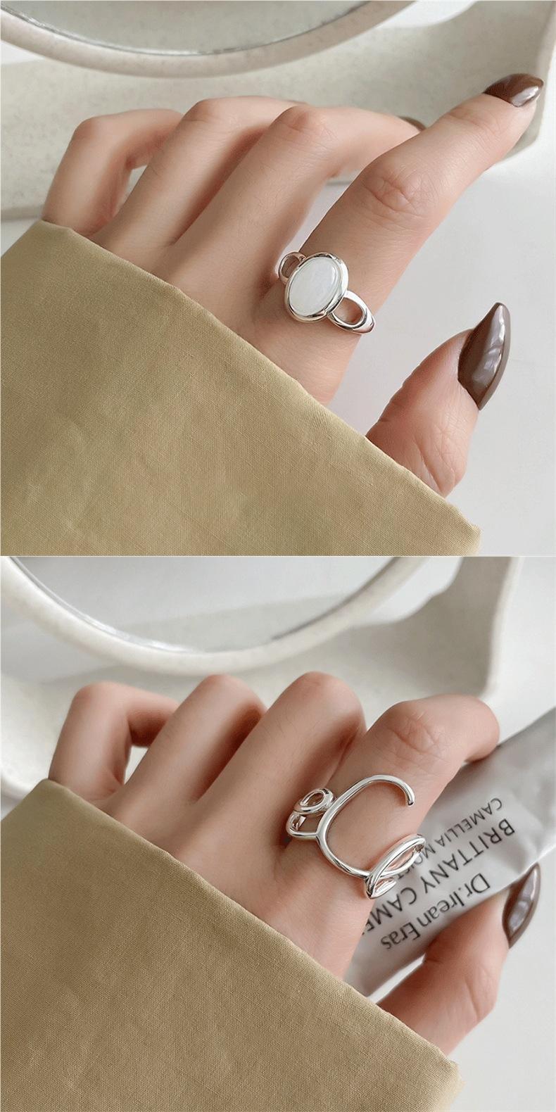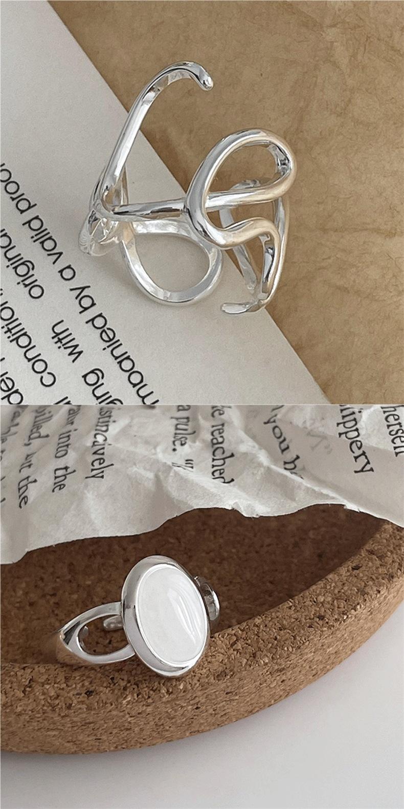 Anillo con letra LOVE para mujer, moda simple y elegante, plata S925, línea hueca, anillo abierto, anillo de dedo personalizado, moderno