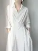 Primavera y verano 2025 nueva ropa de mujer vestido camisero francés de alta gama vestido largo elegante vestido blanco mujer