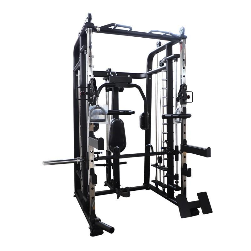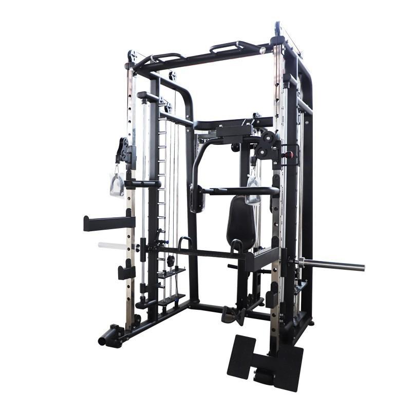 Entrenador Smith Multifuncional con Press de Pecho, Jalón Alto y Bajo, y Función de Pájaro Pequeño
