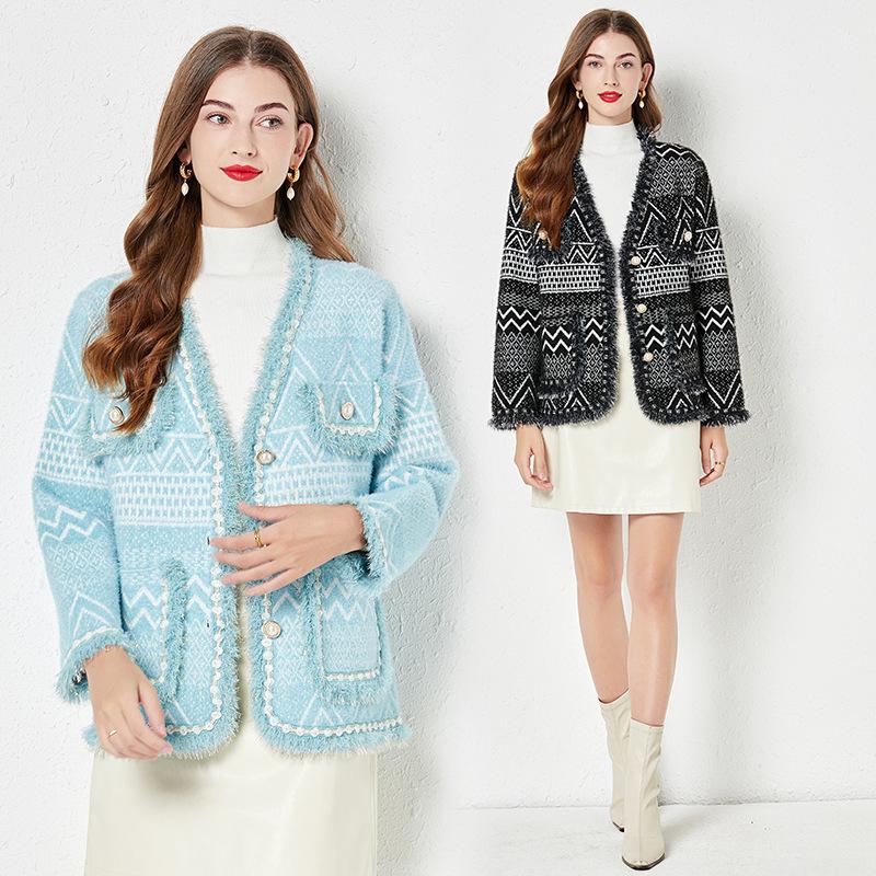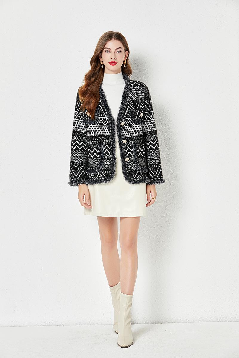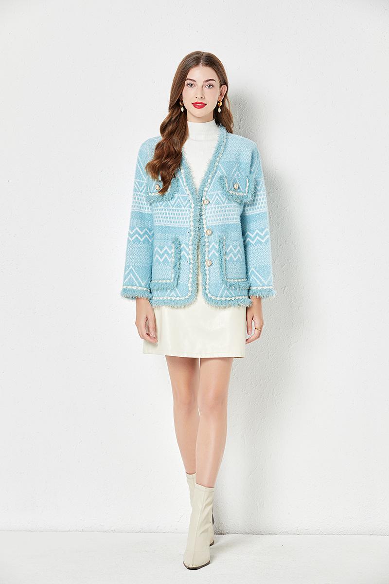 Abrigo estilo Chanel Primavera y Otoño nuevo tweed otoño 2023 abrigo corto top mujer tejido en color contraste