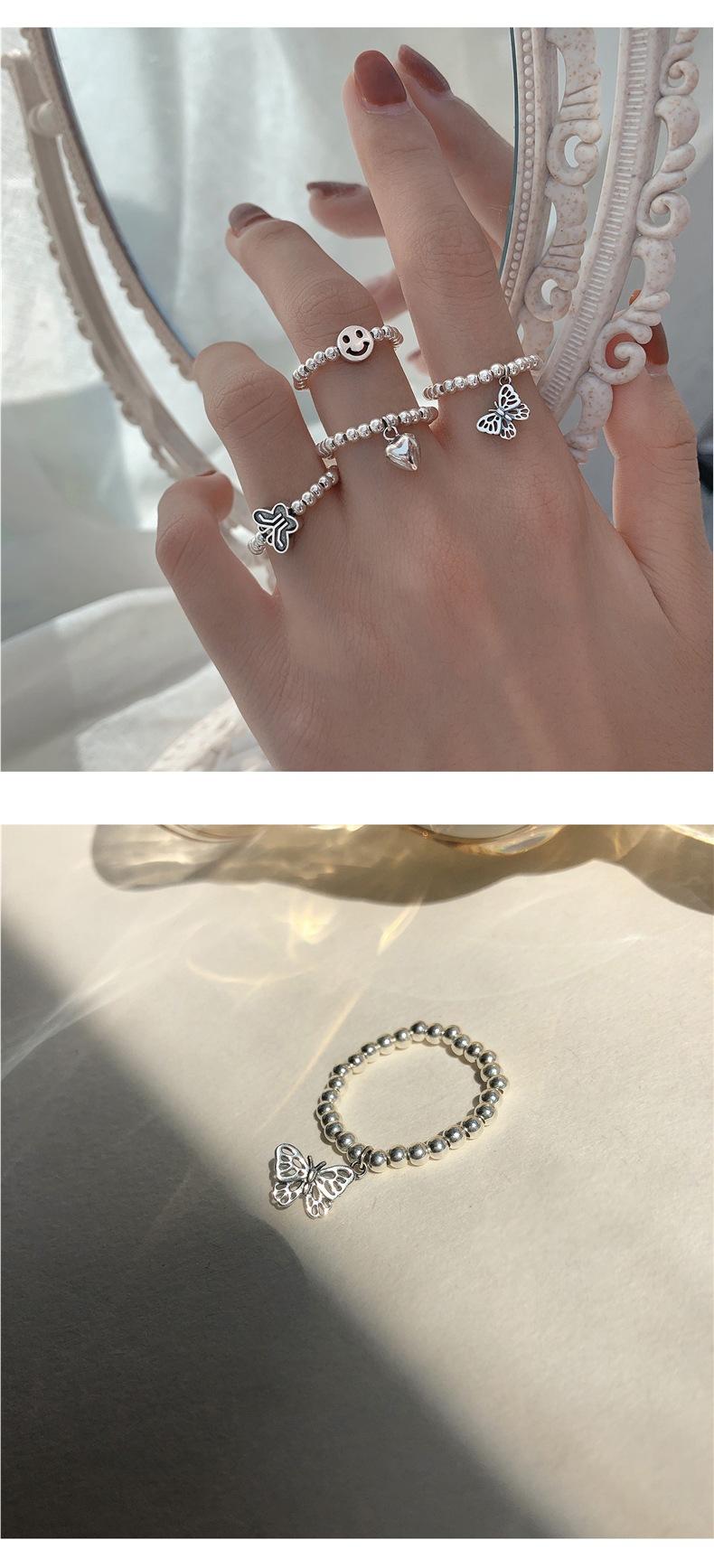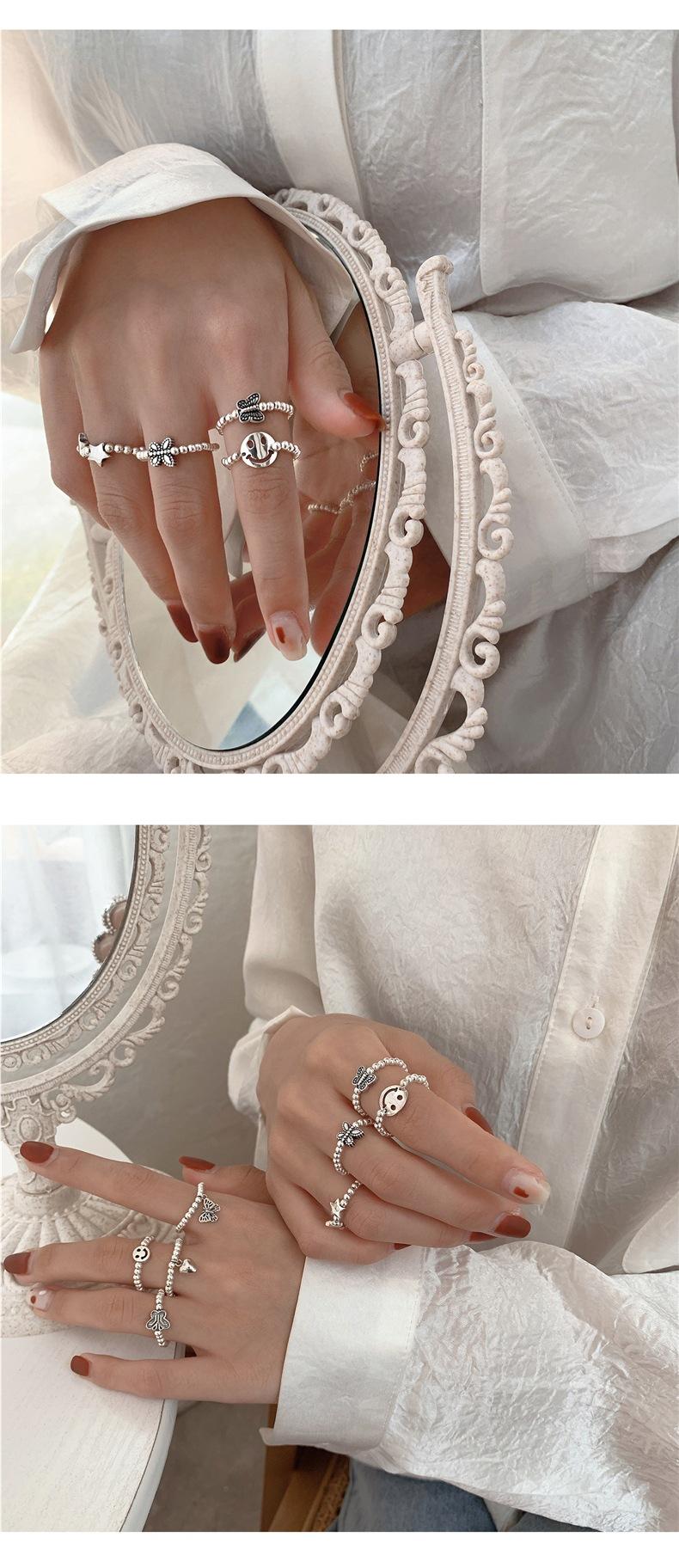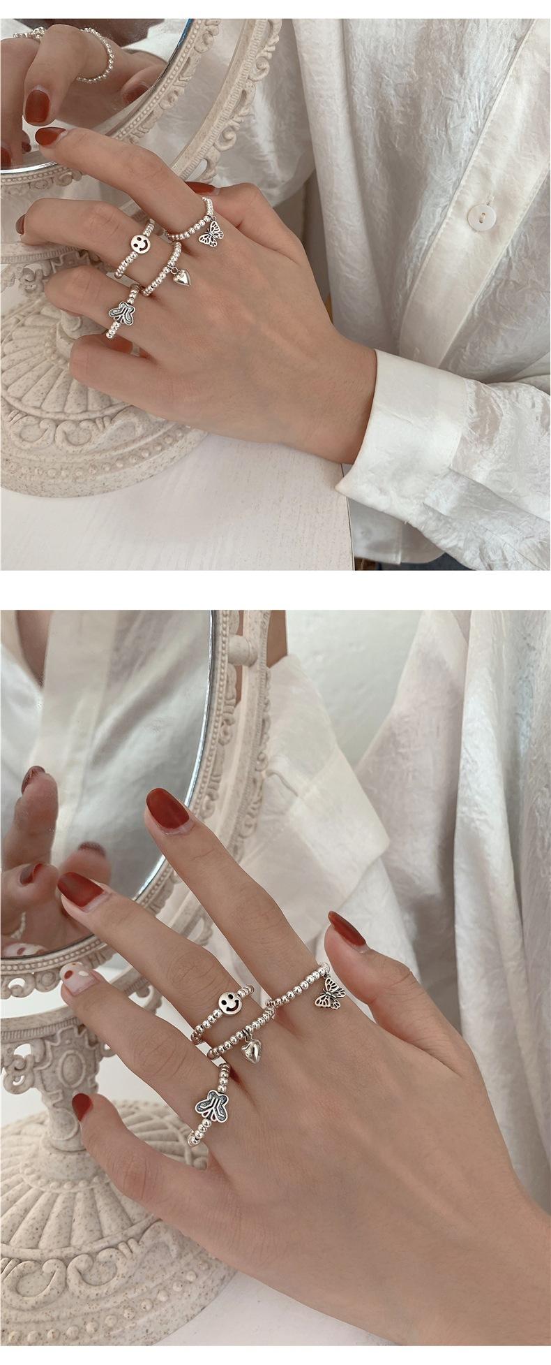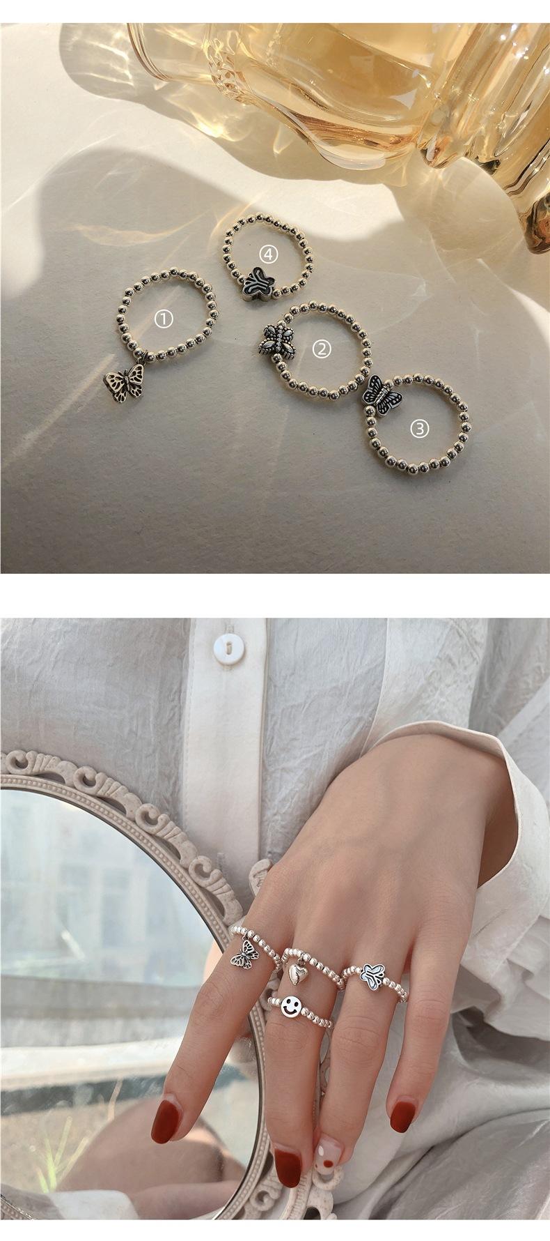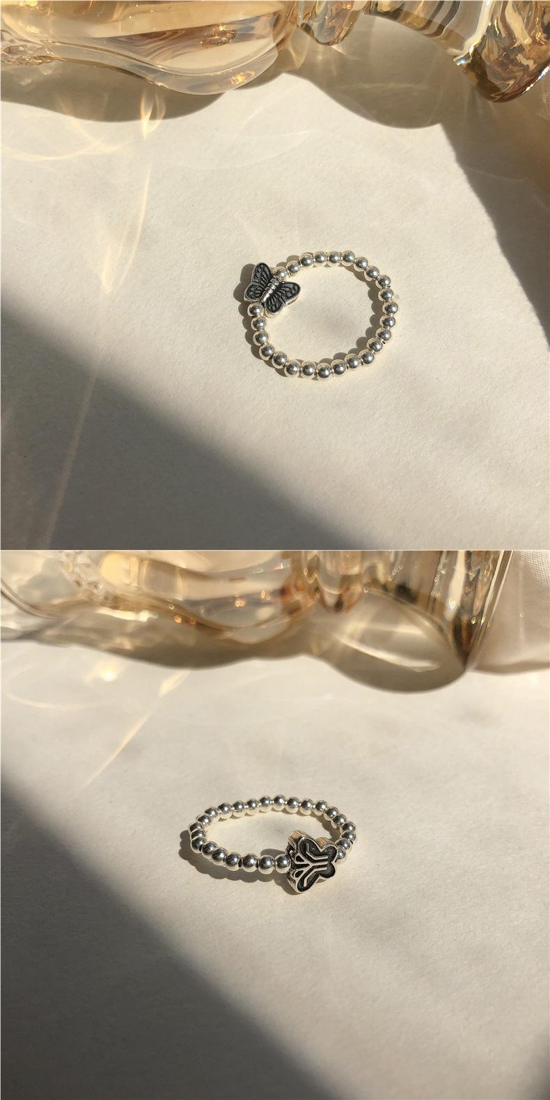 Anillo de Mariposa Dulce de Plata S925 Versión Coreana para Mujeres, Anillo Vintage de Moda Cilíndrico Pequeño Extraíble para el Dedo Índice, Anillo Elegante Apilable