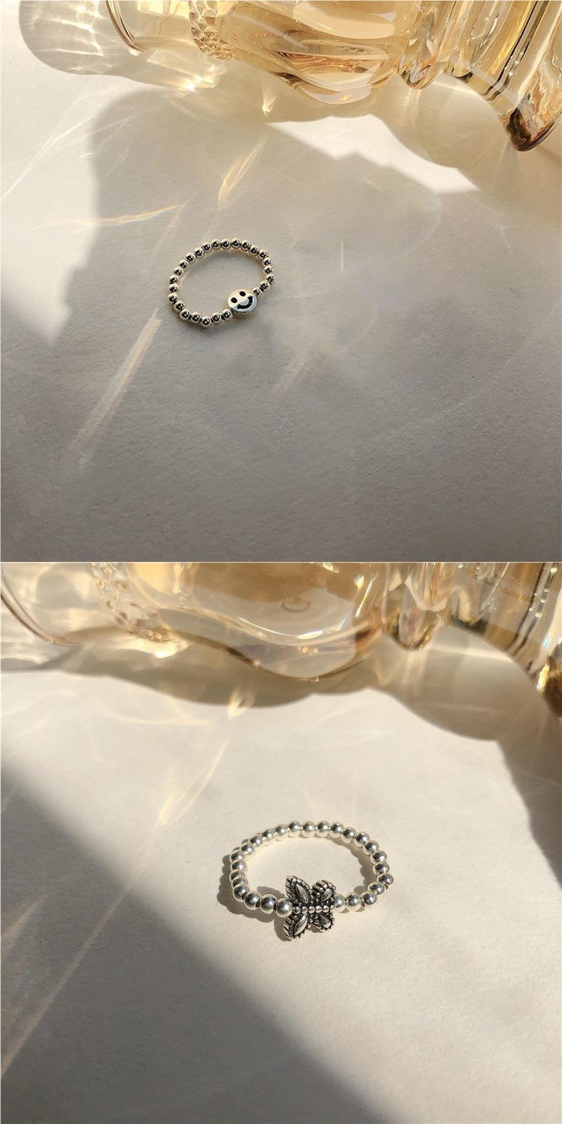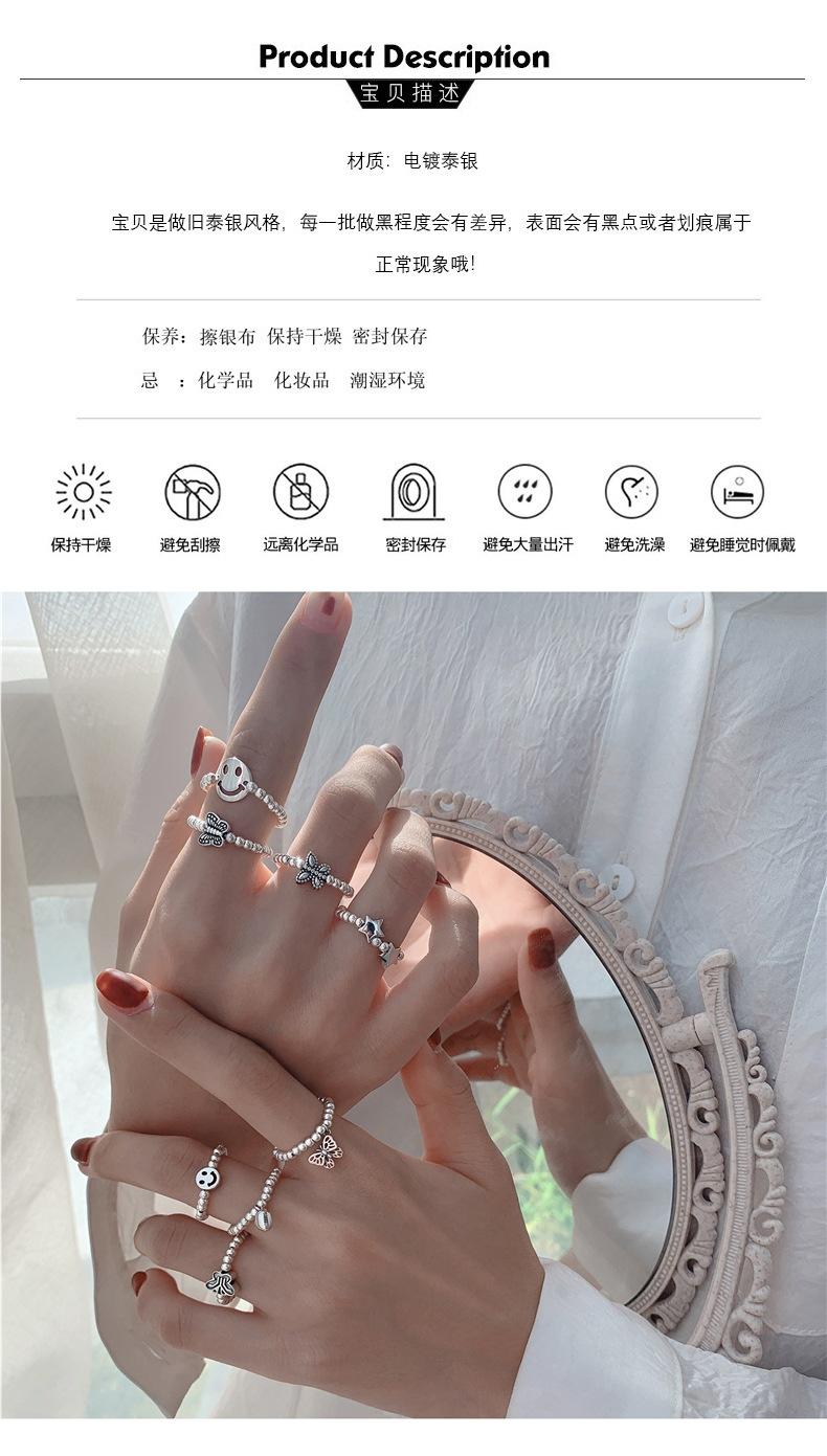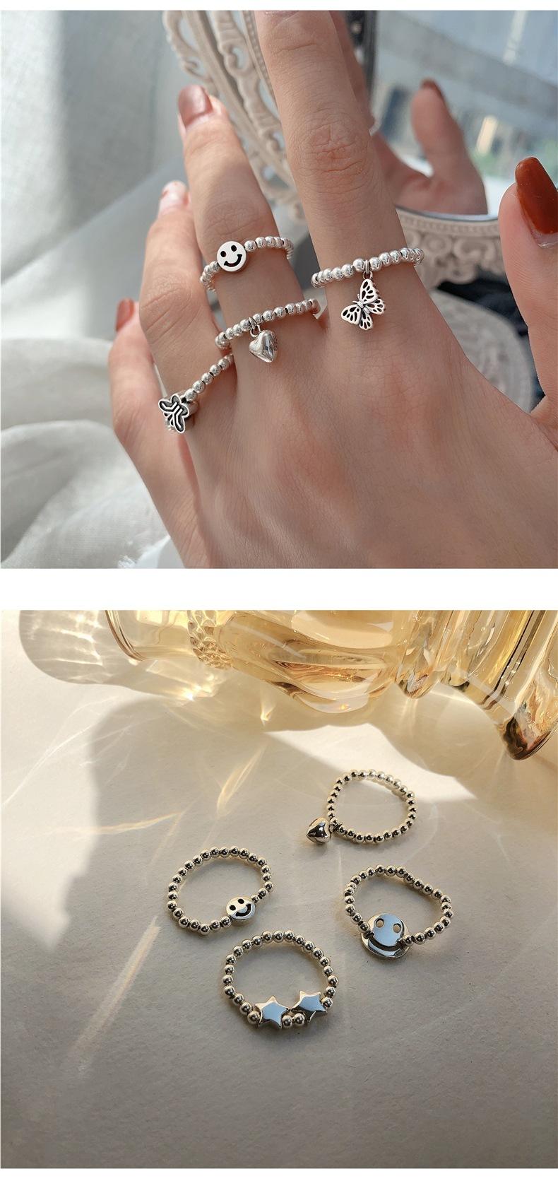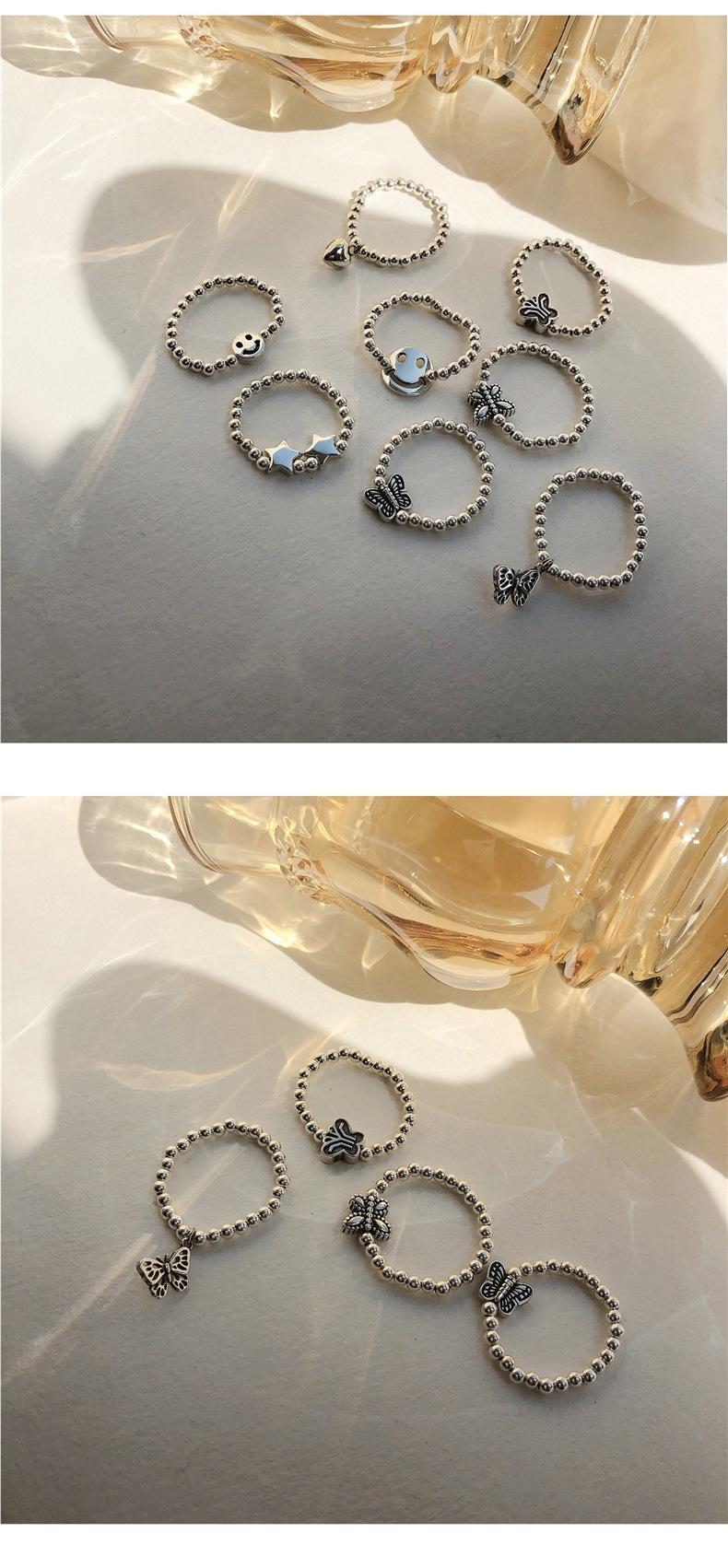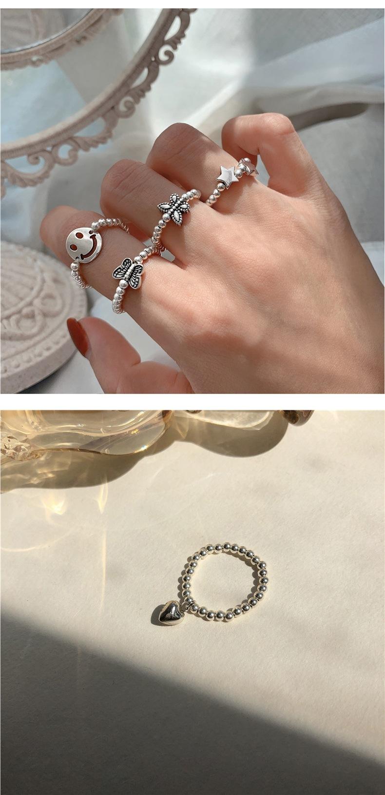 Anillo de Mariposa Dulce de Plata S925 Versión Coreana para Mujeres, Anillo Vintage de Moda Cilíndrico Pequeño Extraíble para el Dedo Índice, Anillo Elegante Apilable