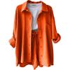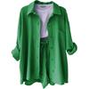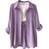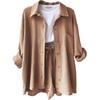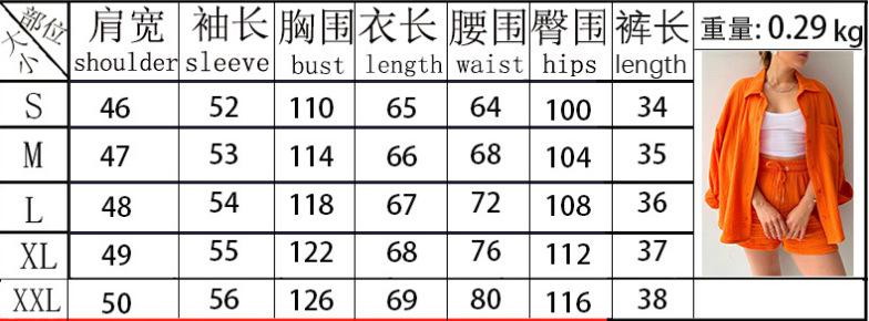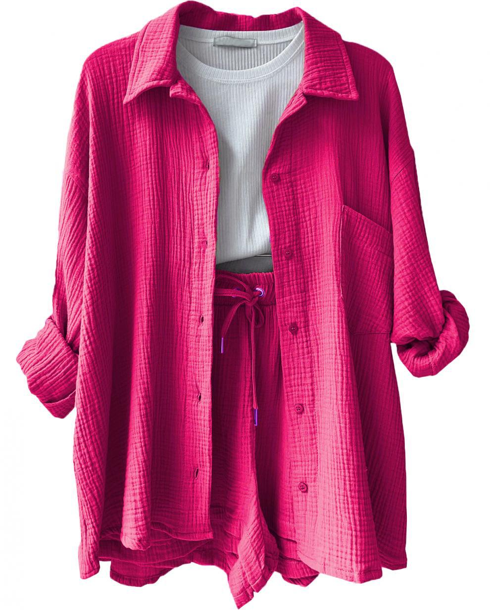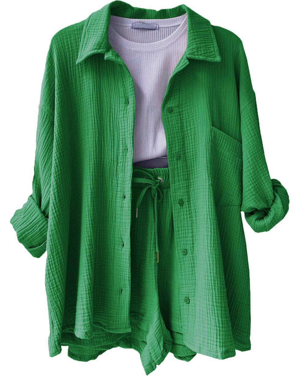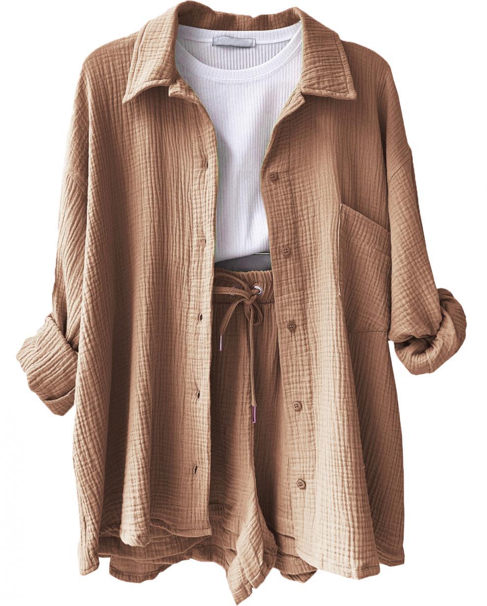 Transfronterizo 2025 Amazon Europeo y Americano Camisa de Solapa de Tela Arrugada de Manga Larga Shorts con Cordón de Cintura Alta Traje Casual de Moda