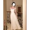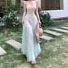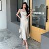 Vestido Sexy de Primavera 2025 con Cuello en V y Largo Medio para Mujer, Francés, Ajustado, con Capas Decorativas, Textura de Satén de Seda, Falda con Tirantes