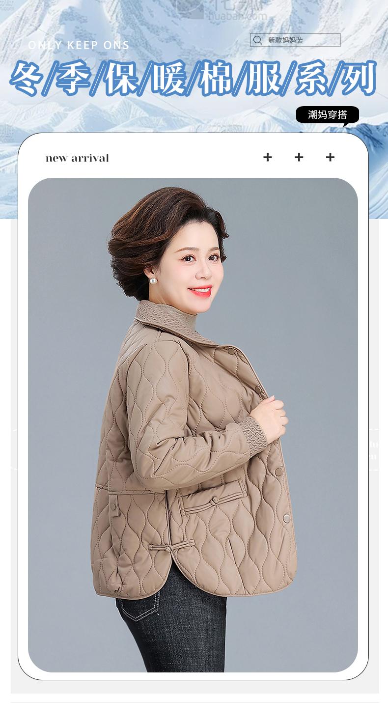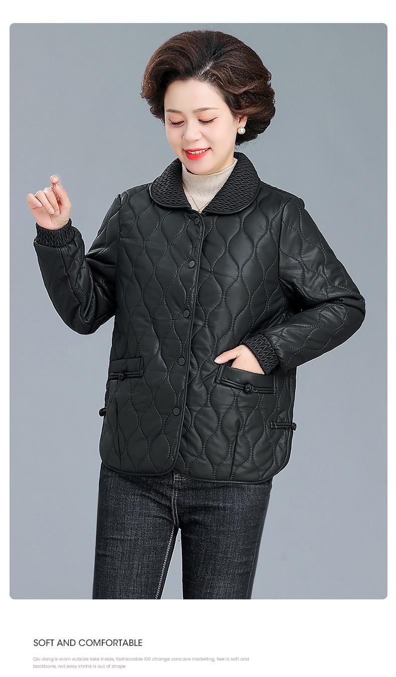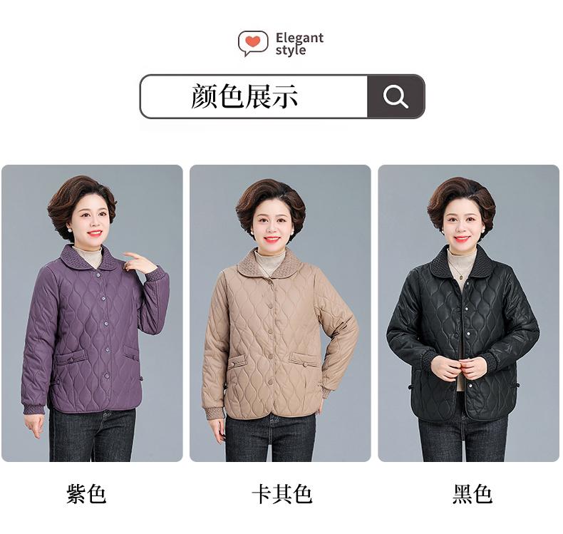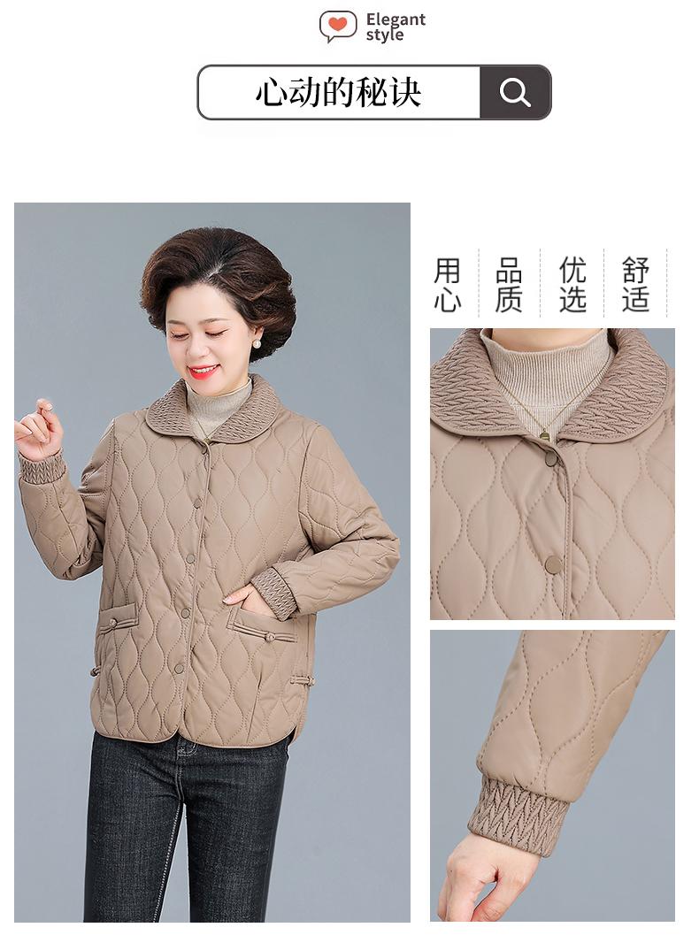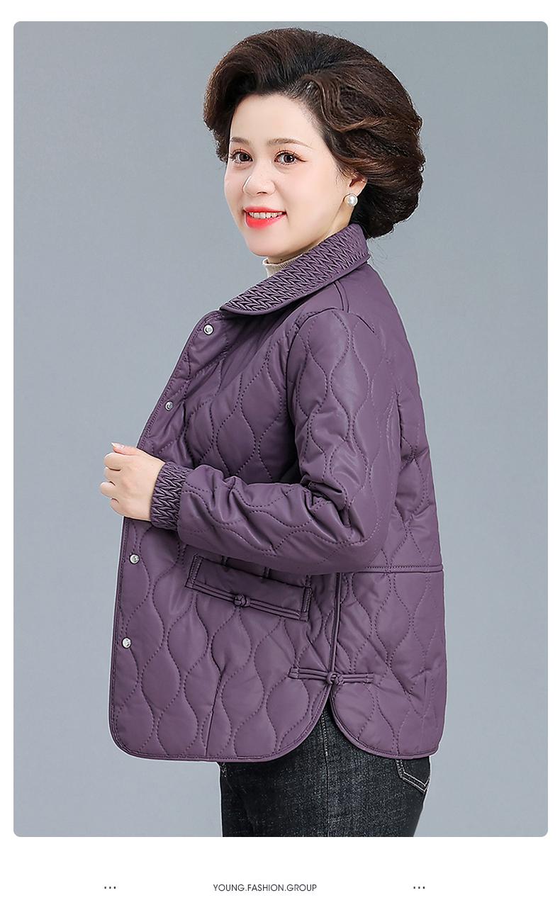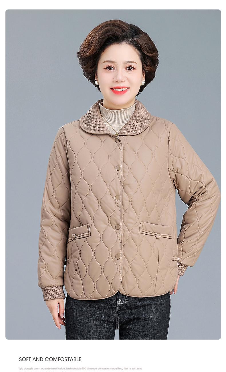Abrigo de invierno ligero acolchado de algodón para madre de mediana edad, chaqueta corta acolchada de algodón noble estilo extranjero para mujer, para mediana edad y ancianos mayores de 50 años