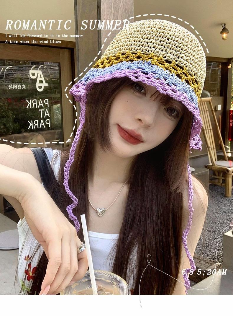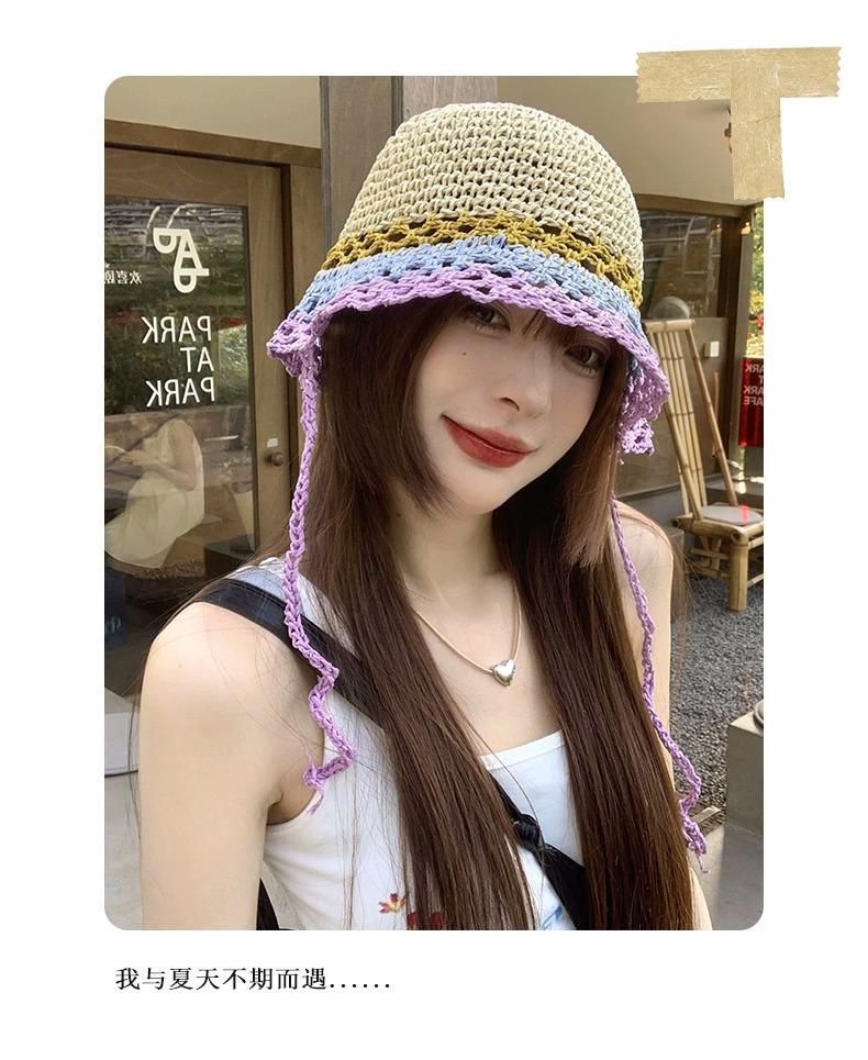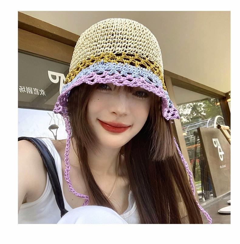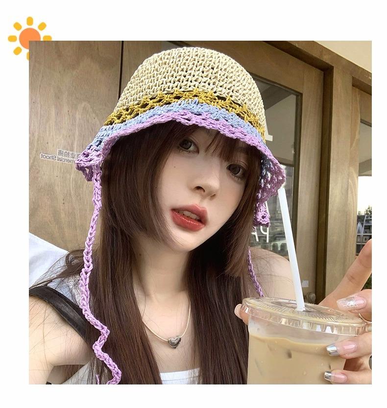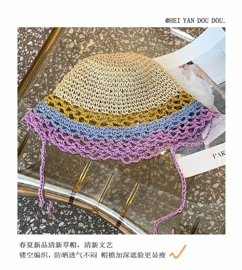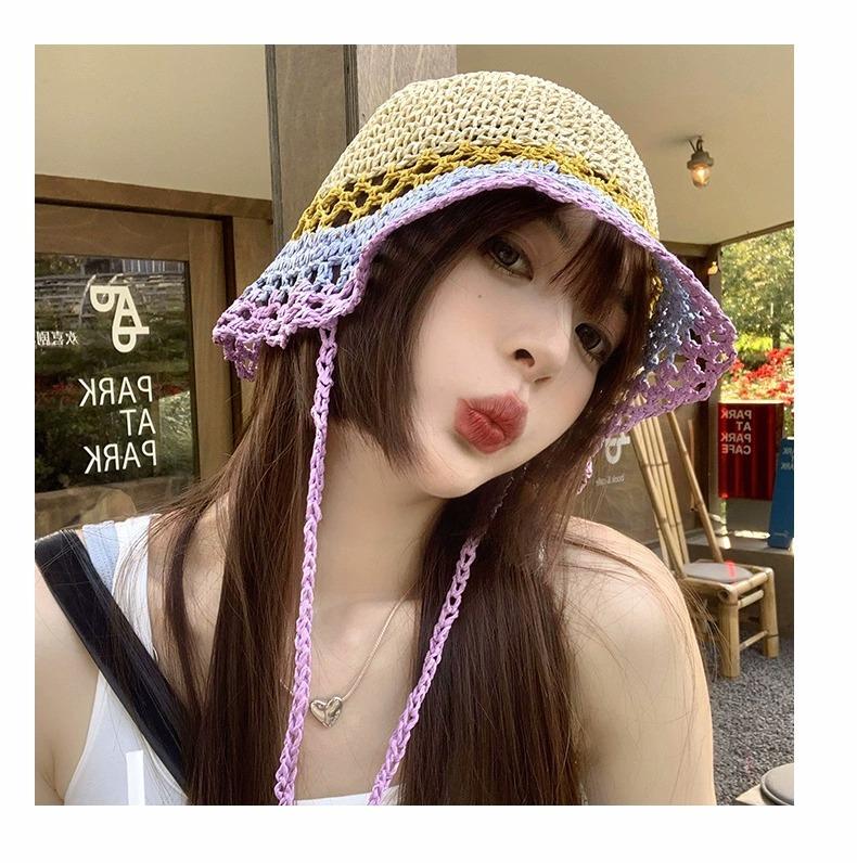 Sombrero de Paja para Mujer Estilo Japonés Fresco Plegable Sombrero de Pescador Verano Paja Fina Transpirable Parasol Protector Solar Sombrero de Playa