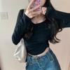 Camiseta de manga larga de estilo coreano para mujer, combinable con todo, primavera de 2025, nuevo diseño, con cordón ajustable, ropa ajustada irregular.