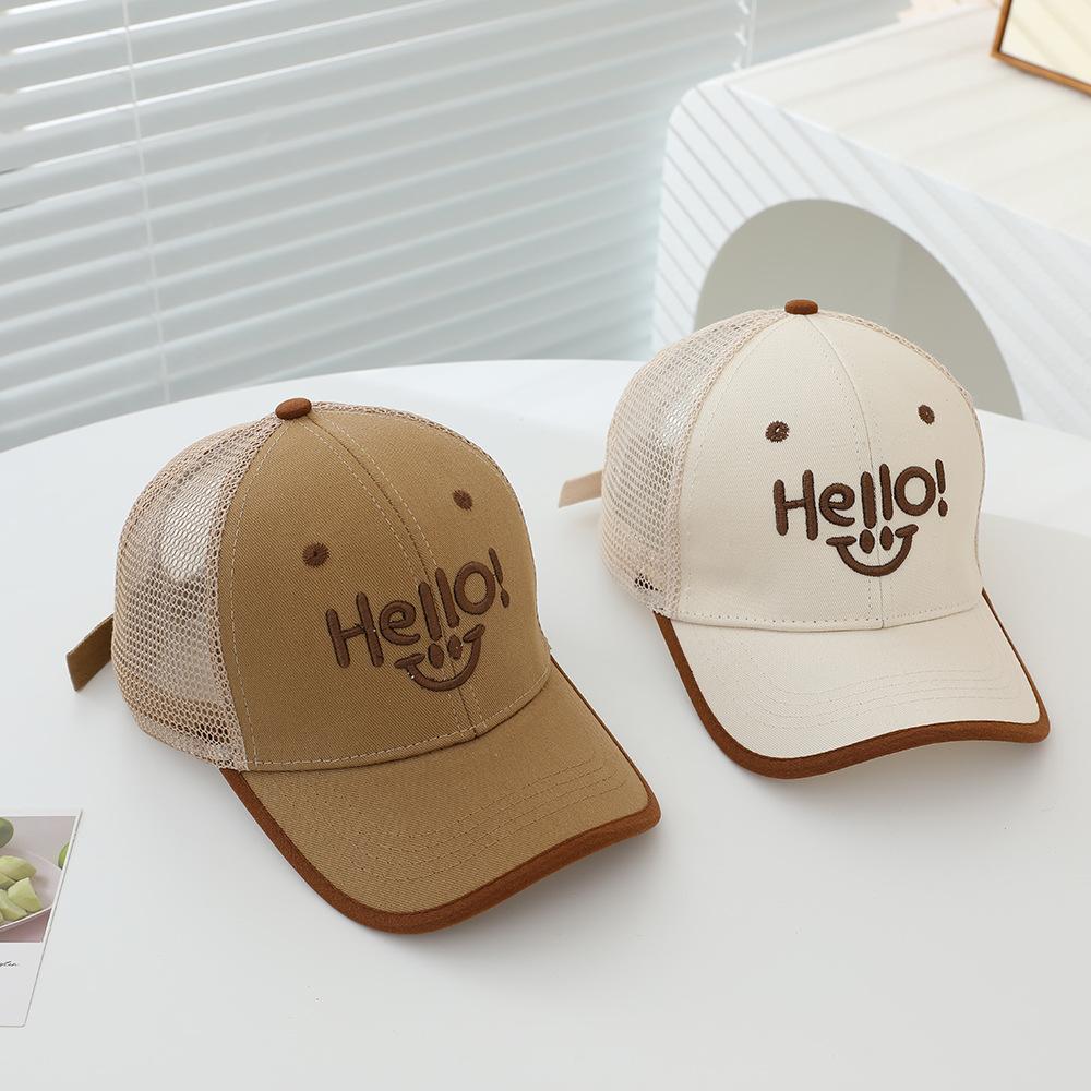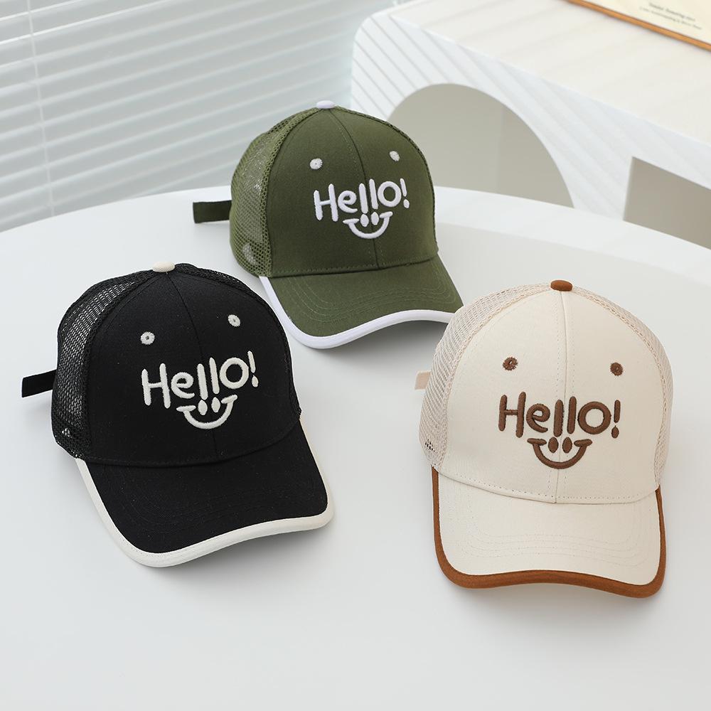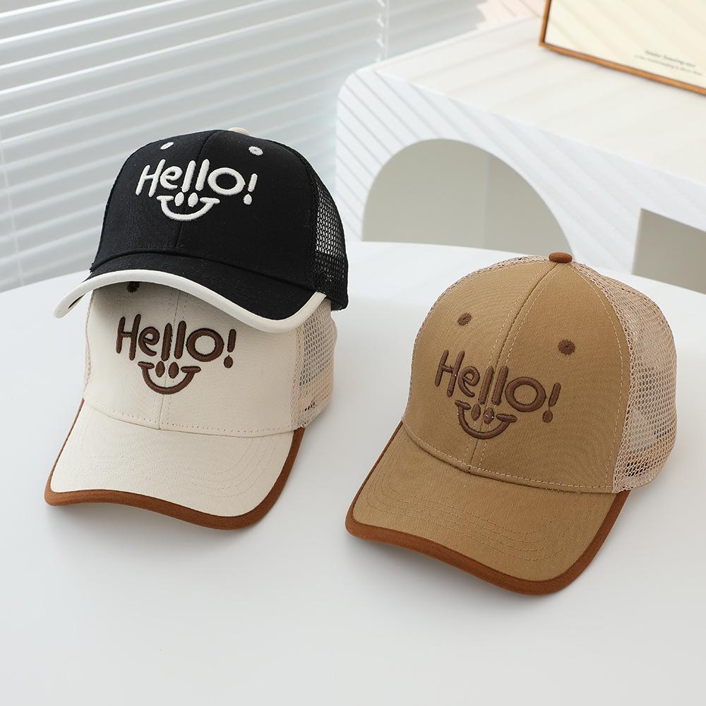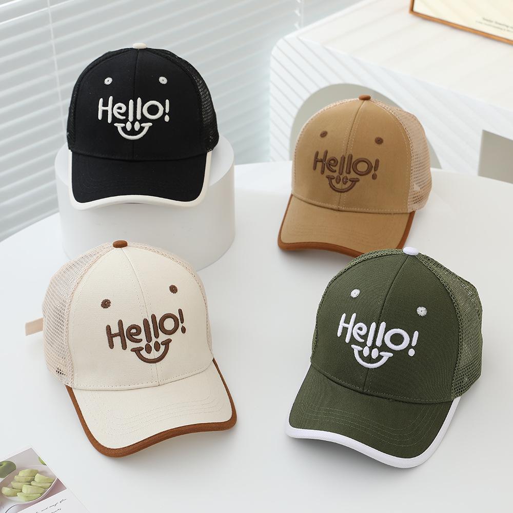 2025 sombrero para niños gorra al por mayor verano sol gorra de red HELLO cara sonriente niños y niñas gorra de béisbol para niños
