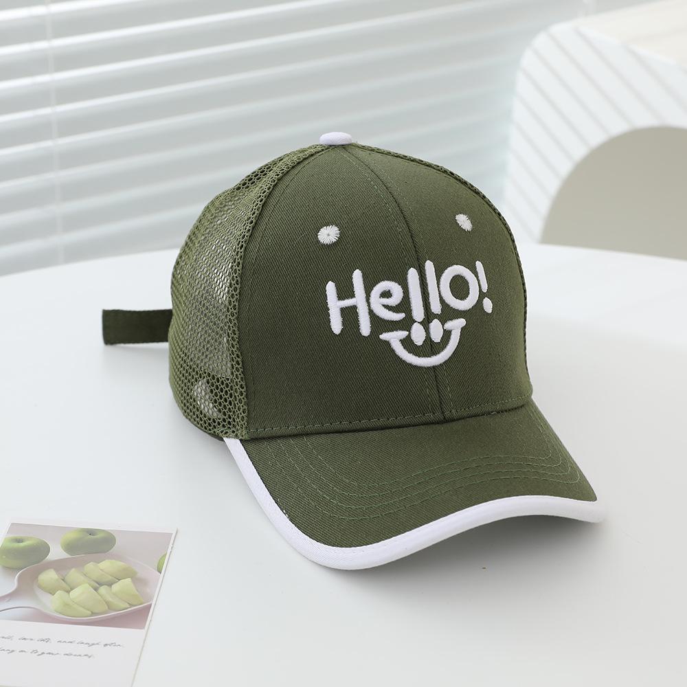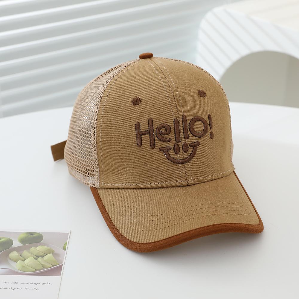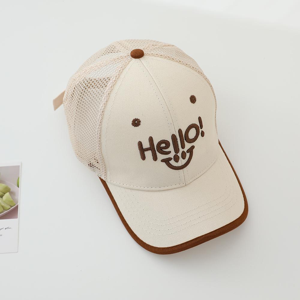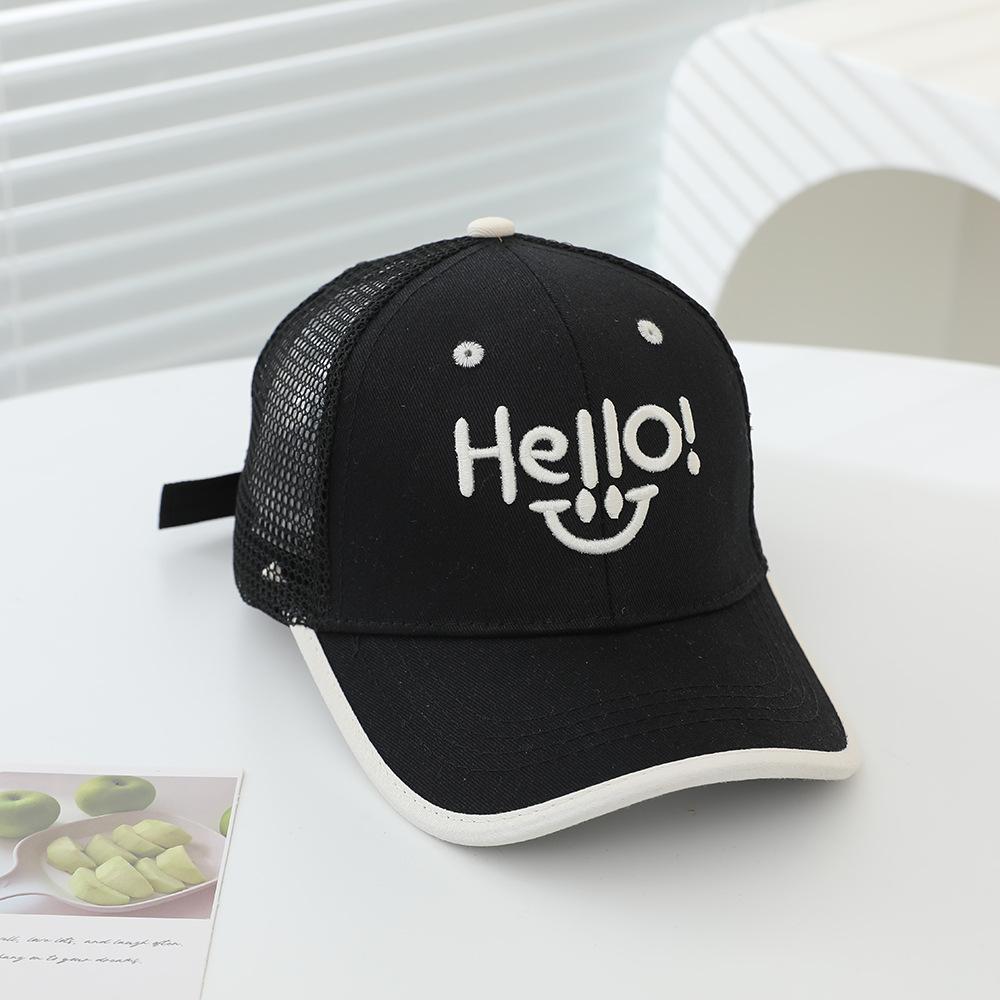 2025 sombrero para niños gorra al por mayor verano sol gorra de red HELLO cara sonriente niños y niñas gorra de béisbol para niños
