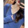 Suéter de mujer otoño e invierno ropa exterior suéter de cuello redondo cálido versátil chic suéter de línea de costura de color en contraste