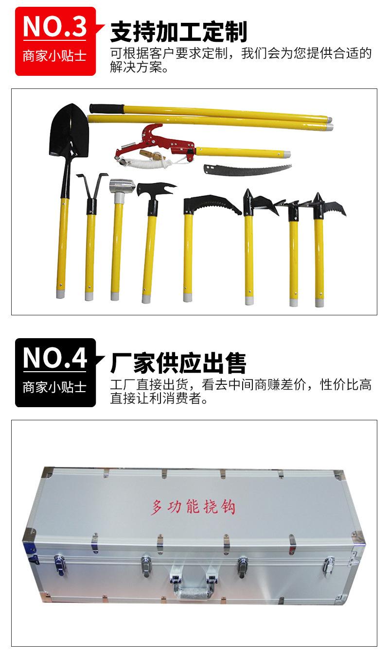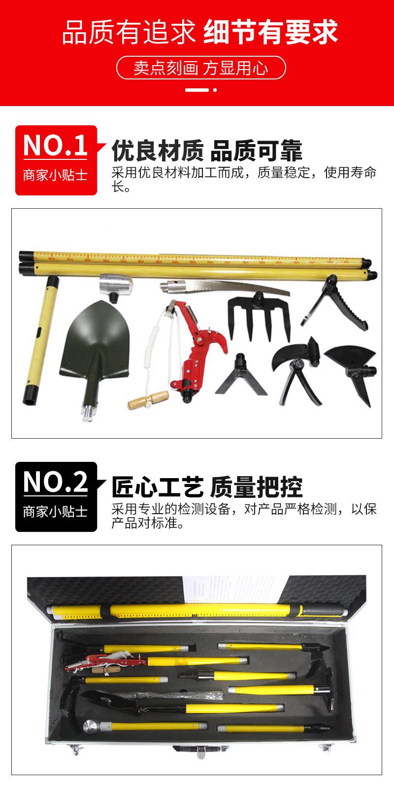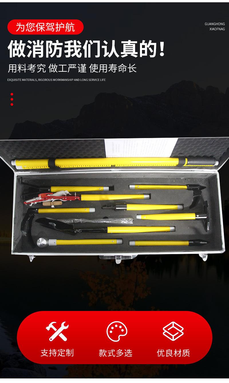 11. Varilla de conexión ordinaria, varilla de conexión multiusos (con escala): Una sola varilla mide un metro de largo. Mediante conexión combinada, puede medir rápidamente distancia horizontal, elevación, profundidad de zanjas o alcantarillas en el sitio, lo cual es conveniente para que los operadores tomen decisiones científicas y acciones de rescate; también puede usarse como guía para extinción de incendios y rescate en lugares como incendios, humo denso, piscinas y charcos. Por ejemplo, si se usan dos varillas de 2 metros de largo con una bolsa de tela (se puede pedir prestada ropa o pantalones) o una red en el medio, puede servir como camilla temporal. Precauciones
