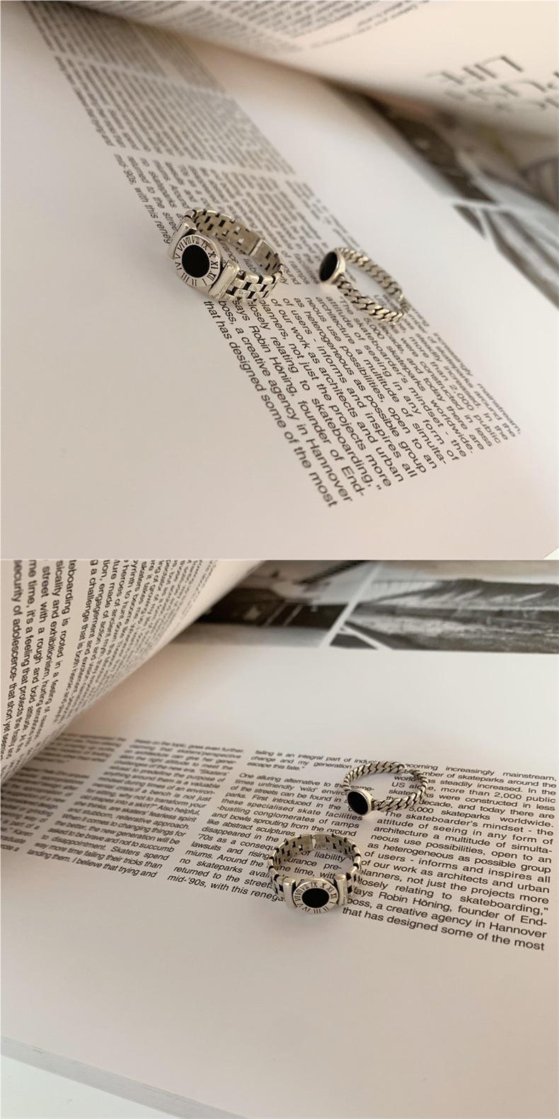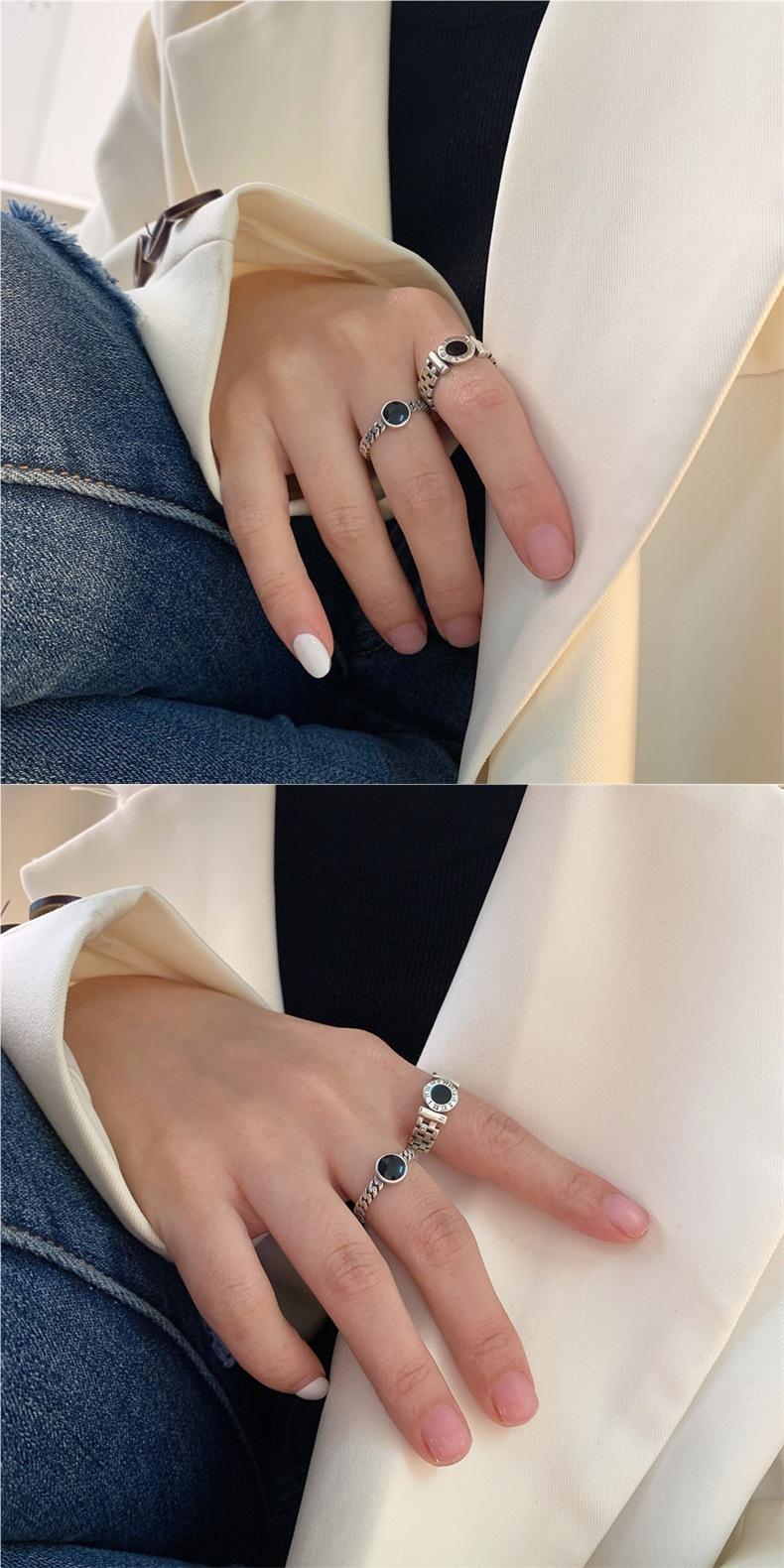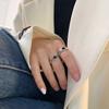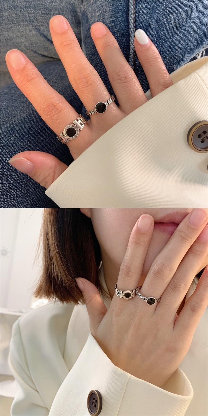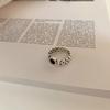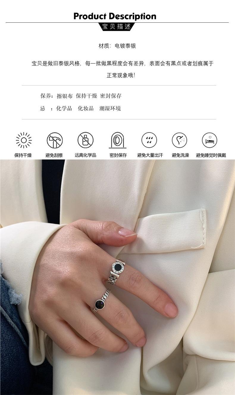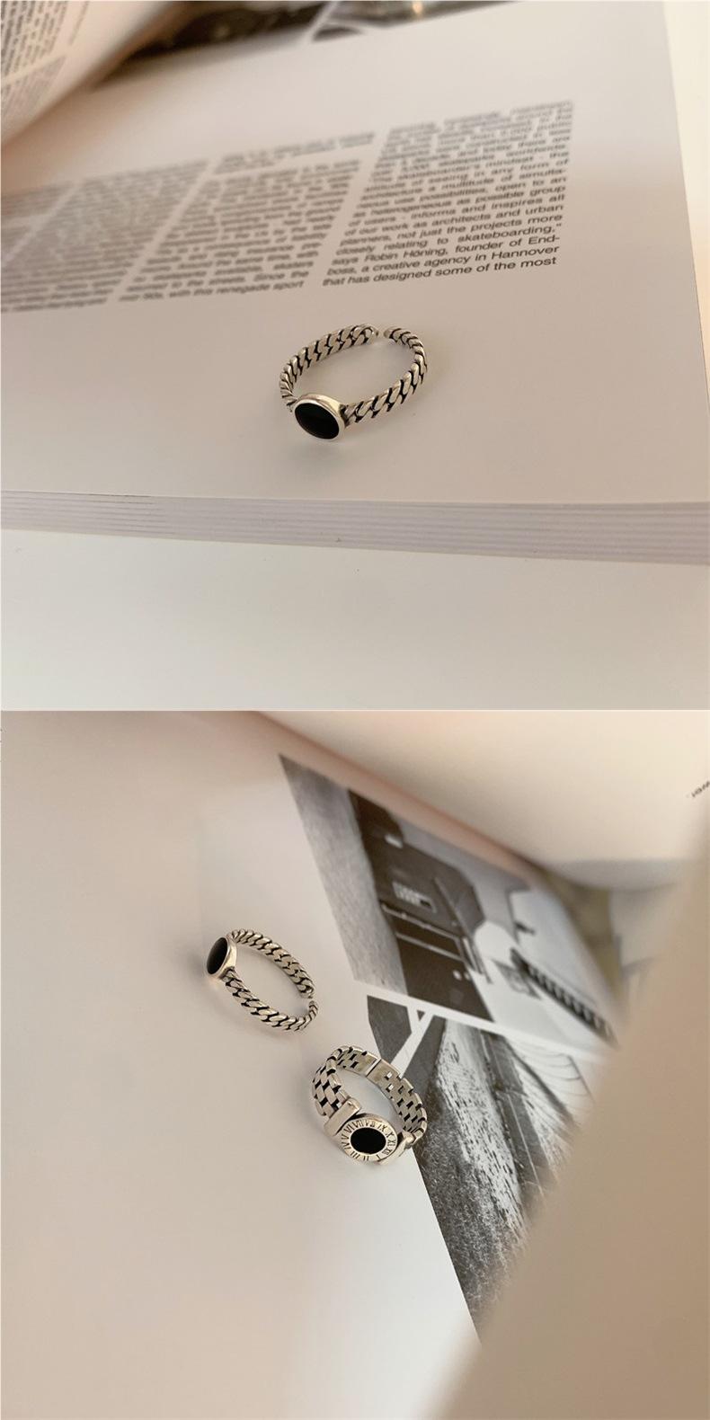 Anillo Redondo Negro Personalizado de Plata S925 Versión Coreana para Mujer, Moda Vintage Temperamento Geométrico Anillo Abierto Dedo Índice Anillo de Moda