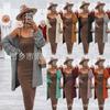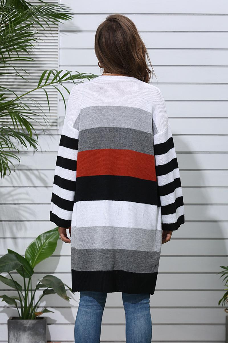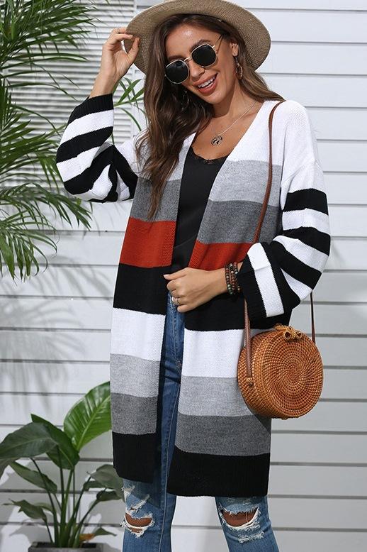 Suéter de comercio exterior de otoño e invierno 2020, suéter de moda europea y americana para mujer, cárdigan largo a rayas de Amazon a juego con colores