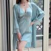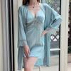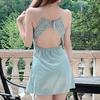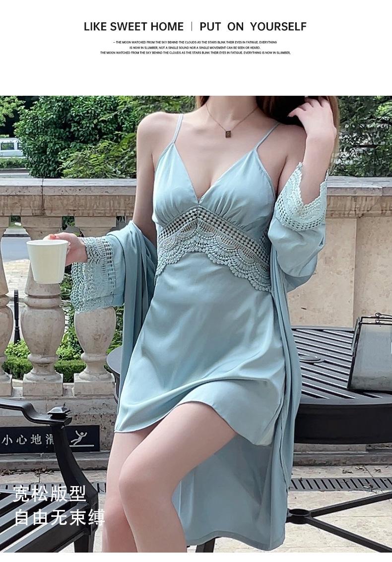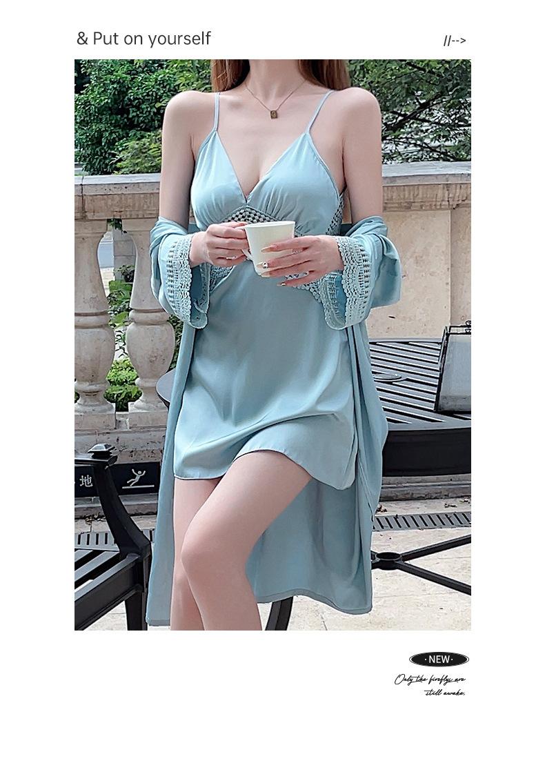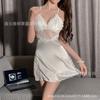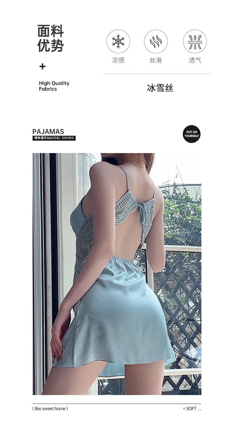 Sexy camisón de seda de hielo con tirantes traseros huecos para mujer, deseo puro de dos piezas, pijama de seda de hielo sin espalda con encaje para estar en casa
