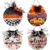 Decoración de Fiesta de Halloween Letrero de Madera Luminoso Utilería para la Disposición del Ambiente Luces LED Linternas Calabaza de Madera Etiquetas Colgantes