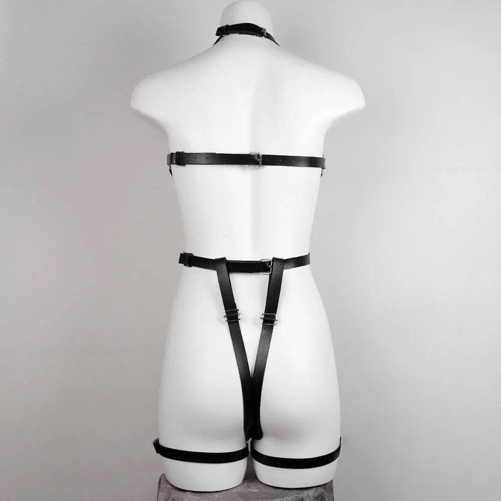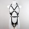 Ropa interior de cuero estilo Spice Girl, estilo europeo y americano, con cinturón hueco, encaje punk, barra atada y correa de liga.