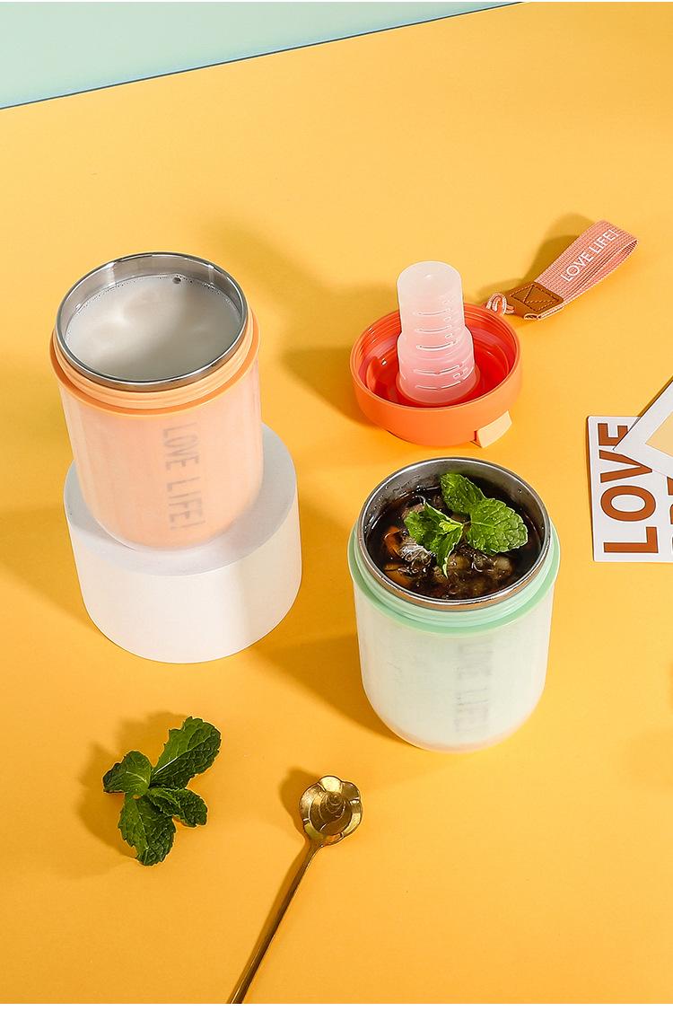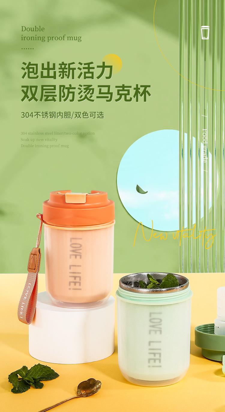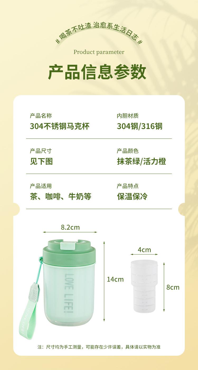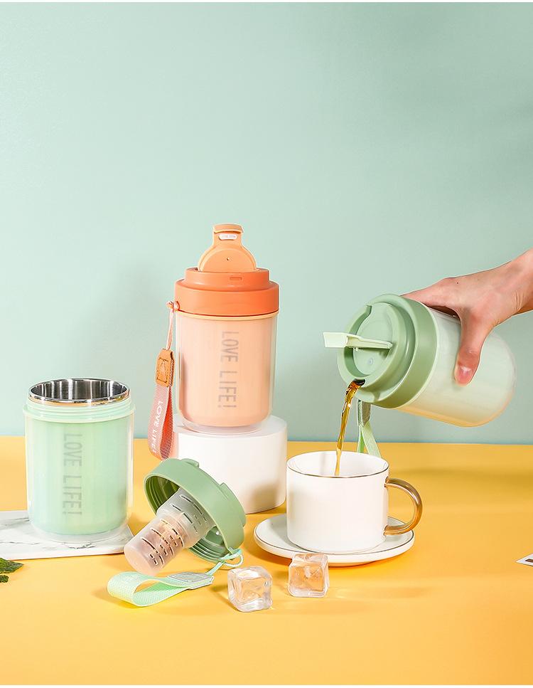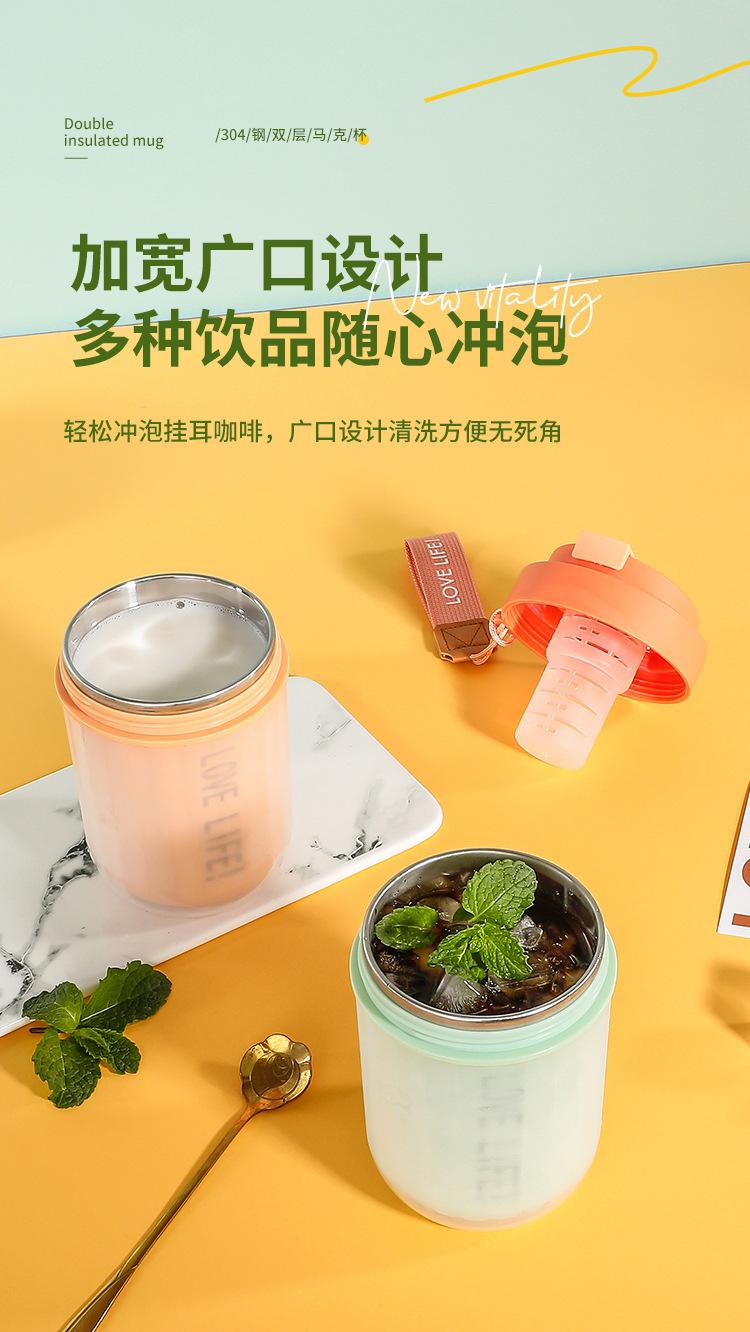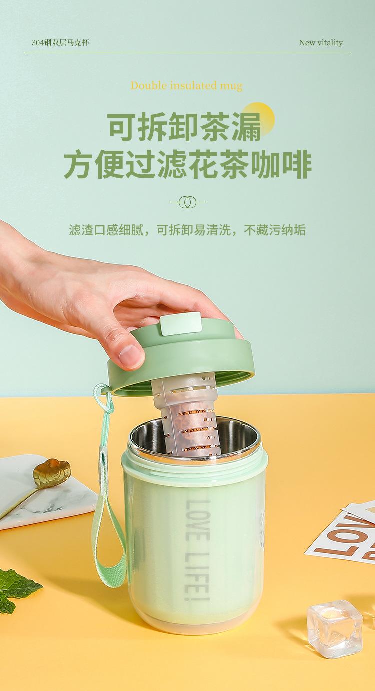 Taza de acero inoxidable 304 de doble capa, pequeña y fresca, de verano, con compartimento para té, para leche, estilo estudiante.