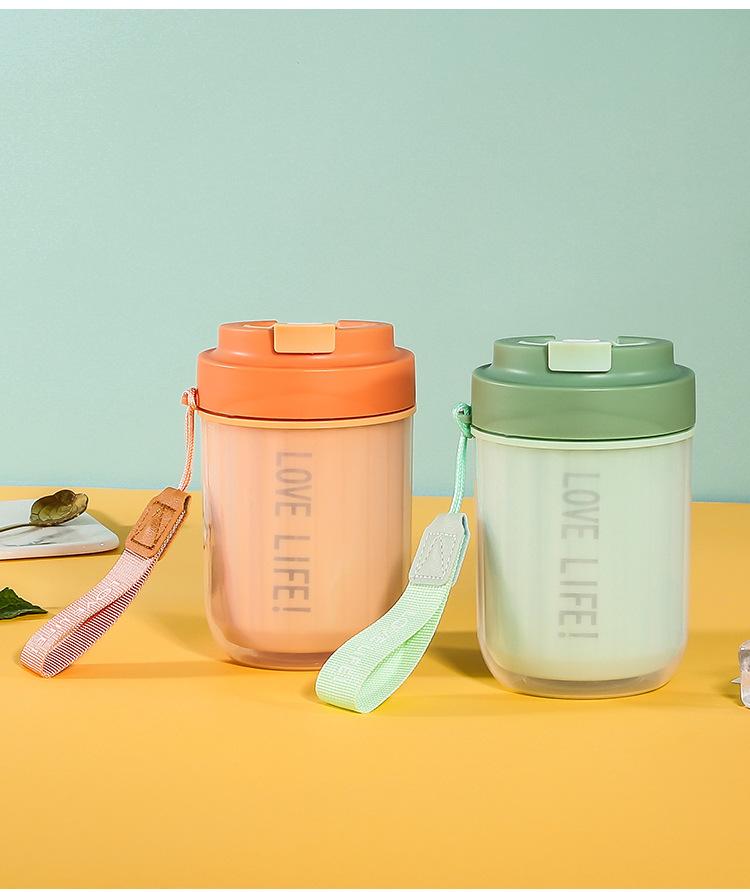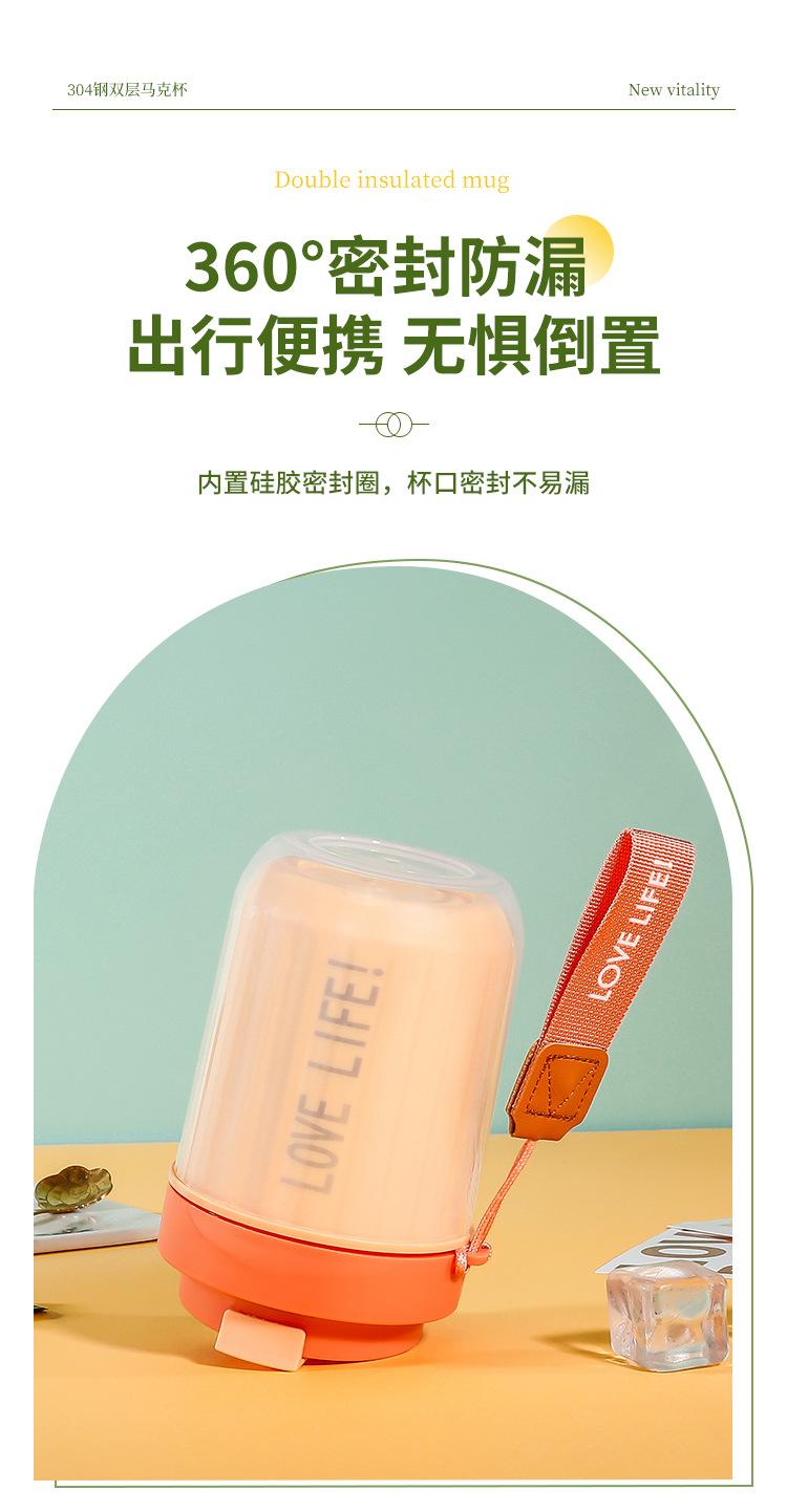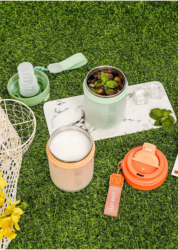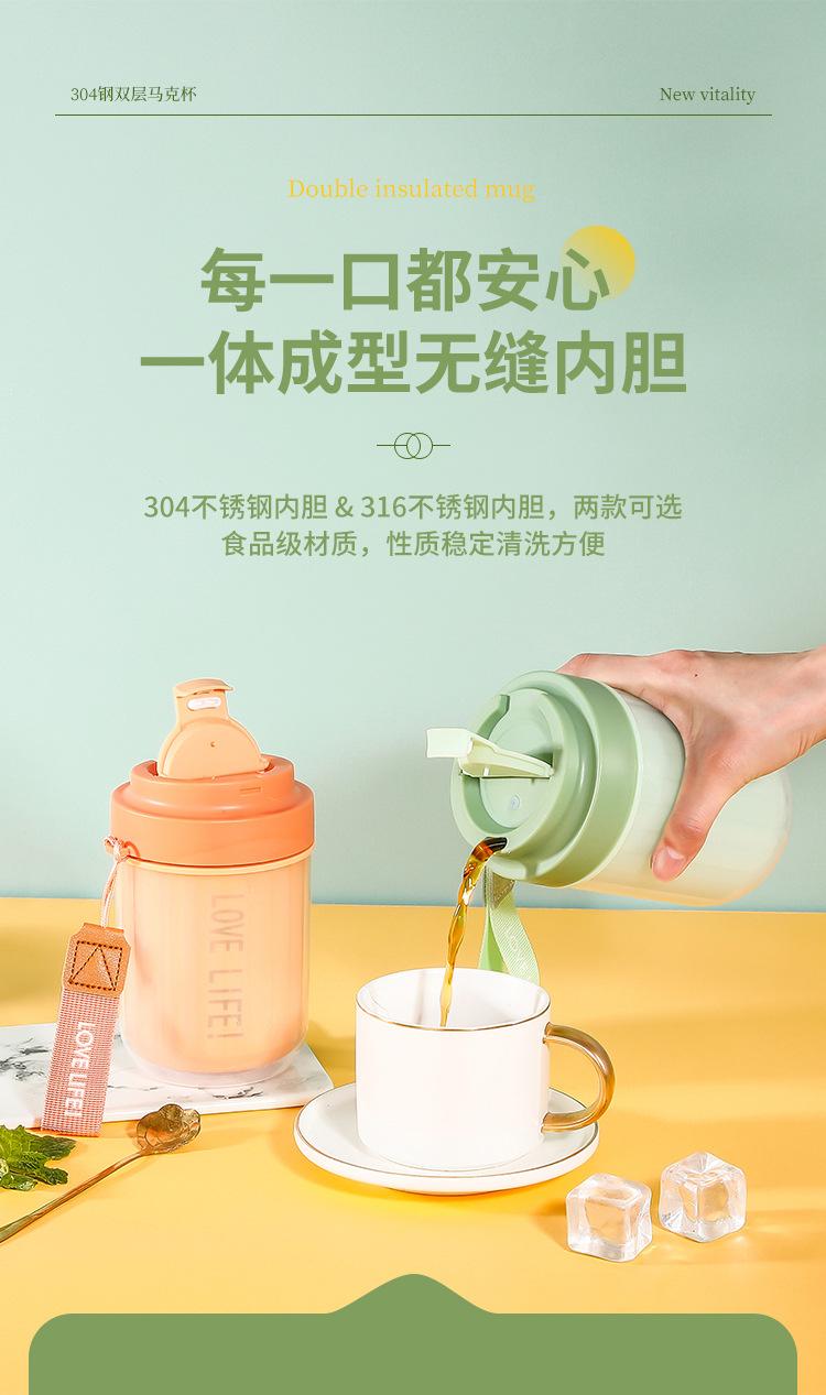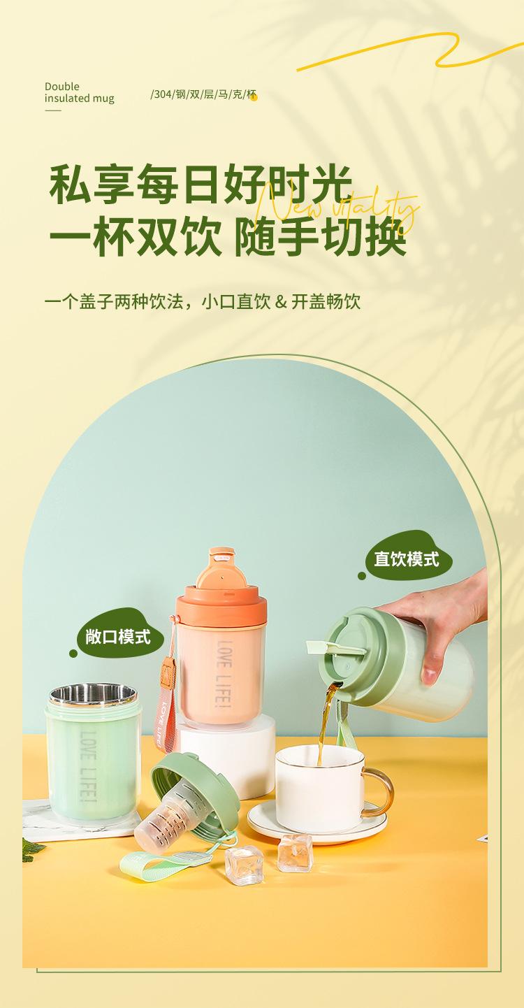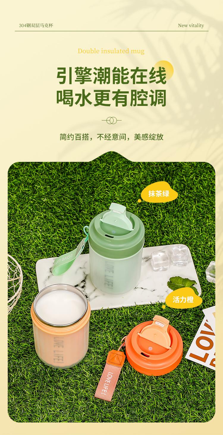 Taza de acero inoxidable 304 de doble capa, pequeña y fresca, de verano, con compartimento para té, para leche, estilo estudiante.