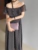 Falda halter a cuadros de color contrastante elegante de estilo francés para mujer, vestido retro de verano de alta gama, vestido largo ajustado de línea A