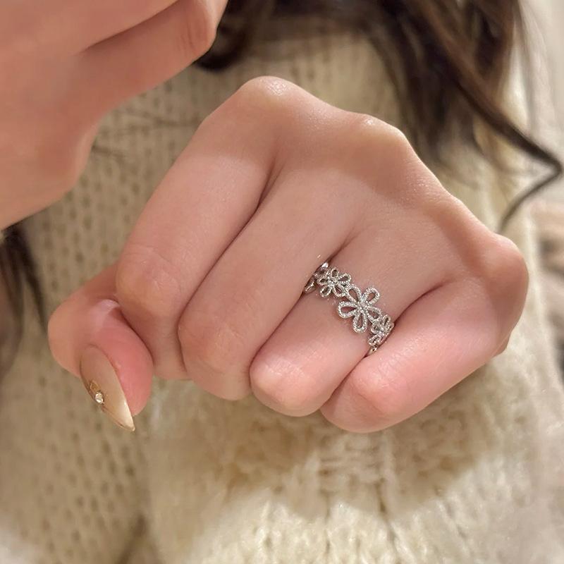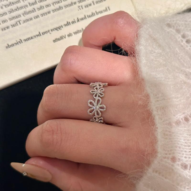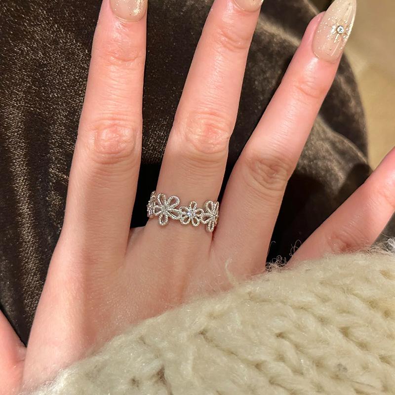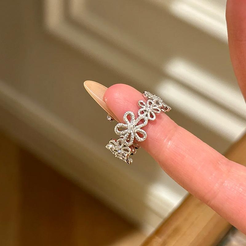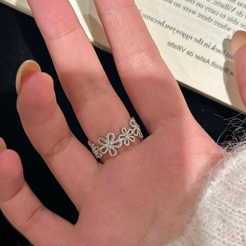 Anillo de Encaje Calado con Dibujo de Flor para Mujer, Diseño de Lujo Ligero con Sentido de Alta Gama, Refinado, Elegante, Moda Versátil, Anillo para Dedo