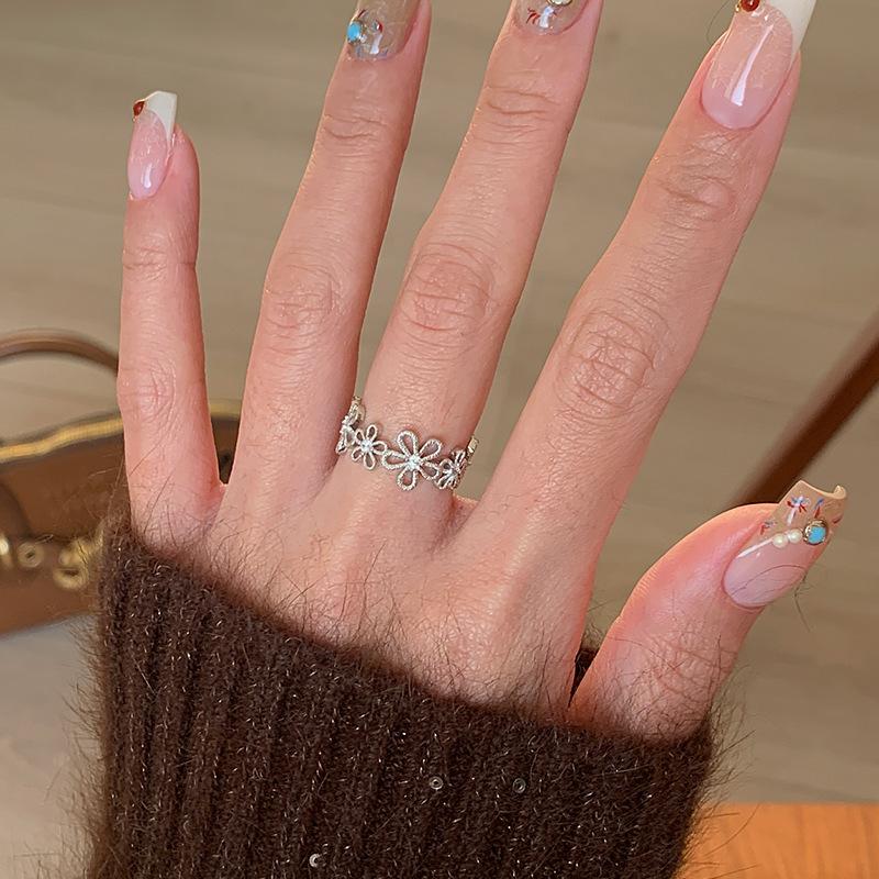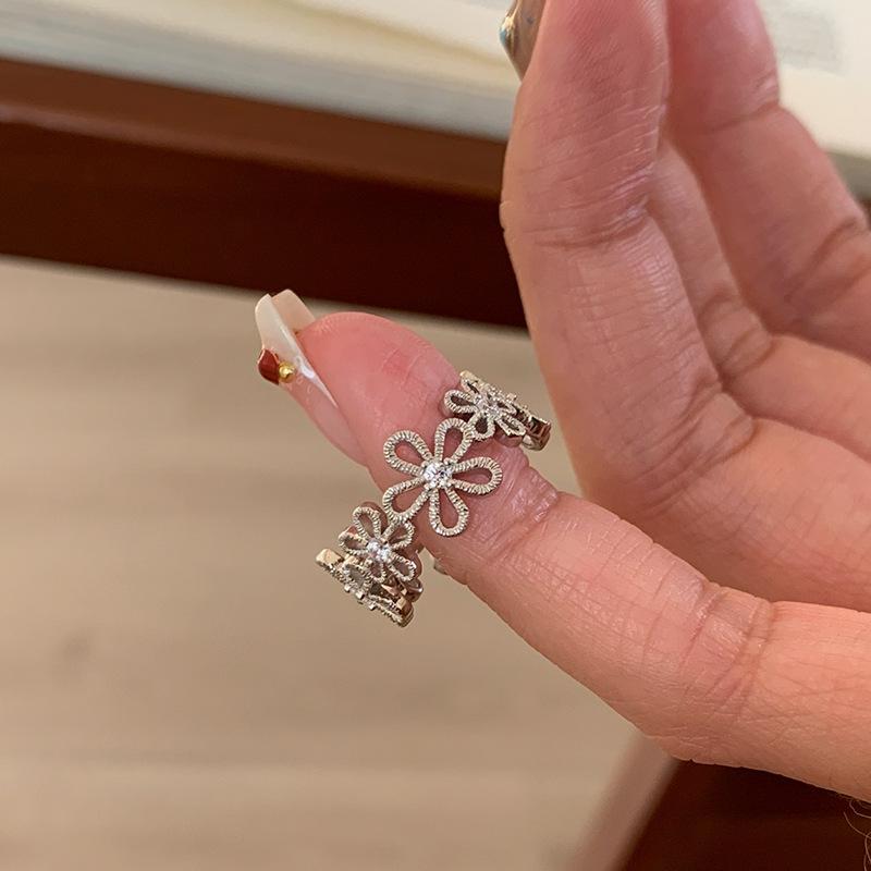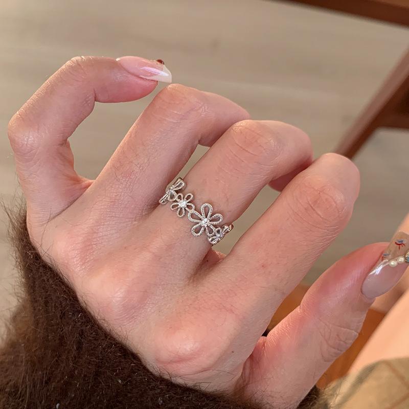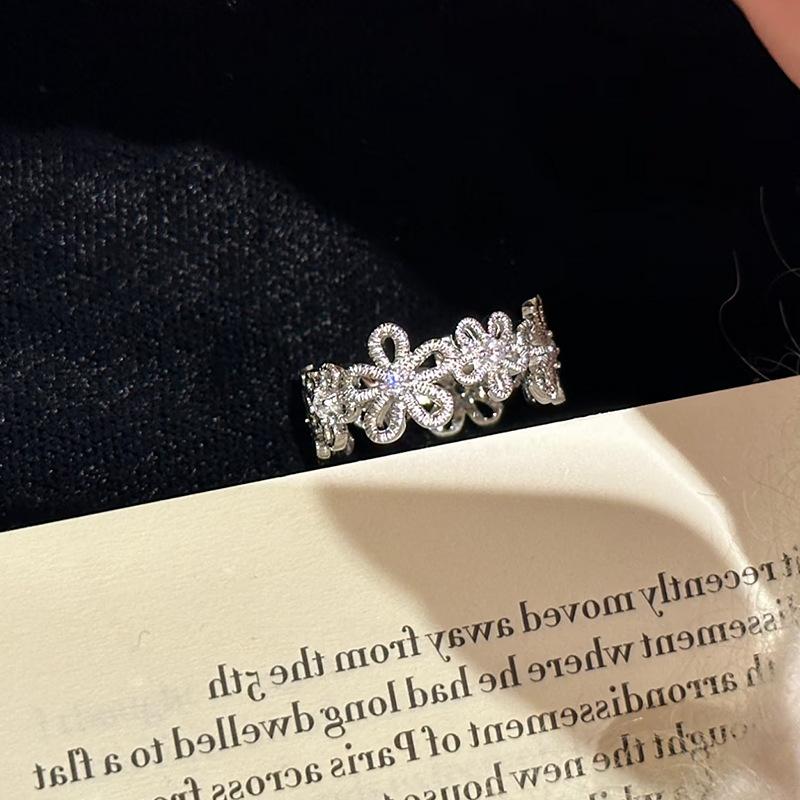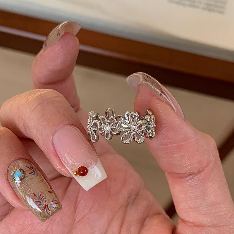 Anillo de Encaje Calado con Dibujo de Flor para Mujer, Diseño de Lujo Ligero con Sentido de Alta Gama, Refinado, Elegante, Moda Versátil, Anillo para Dedo