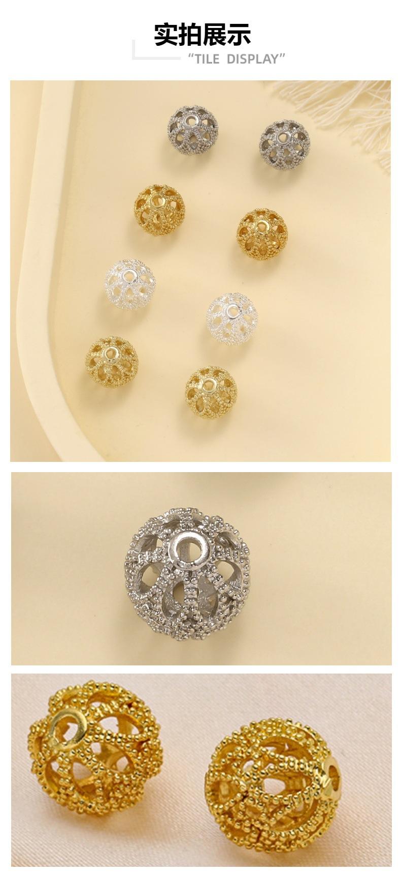 DIY pulsera de hilo collar joyería material de cuentas sueltas color oro 14K retenedor de color bola de flor hueca cuenta redonda cuenta espaciadora de hortensia hecha a mano