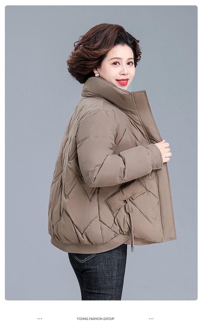 Chamarra de plumón de invierno para madre de mediana edad, corta, talla grande, chamarra de invierno acolchada de algodón, abrigo cálido de otoño e invierno para mujeres de mediana edad y mayores