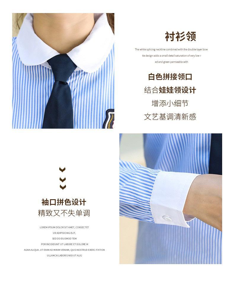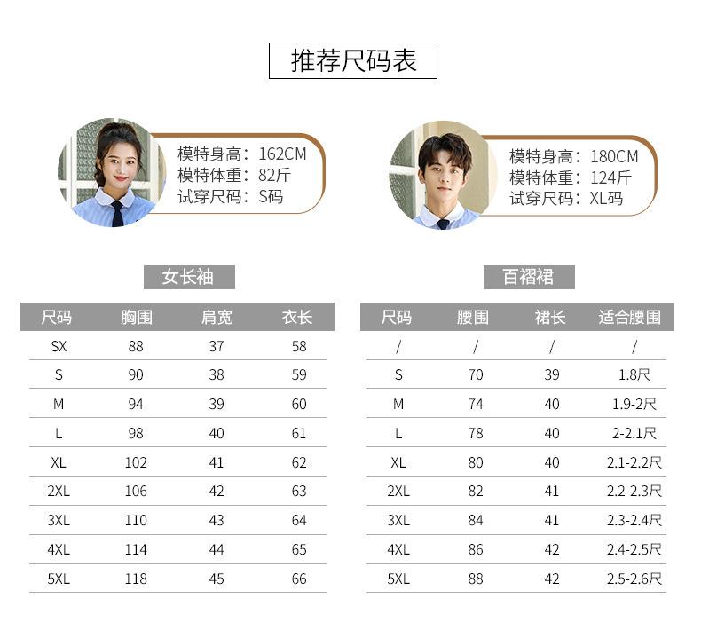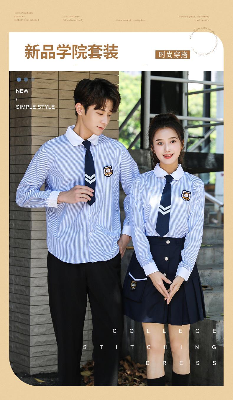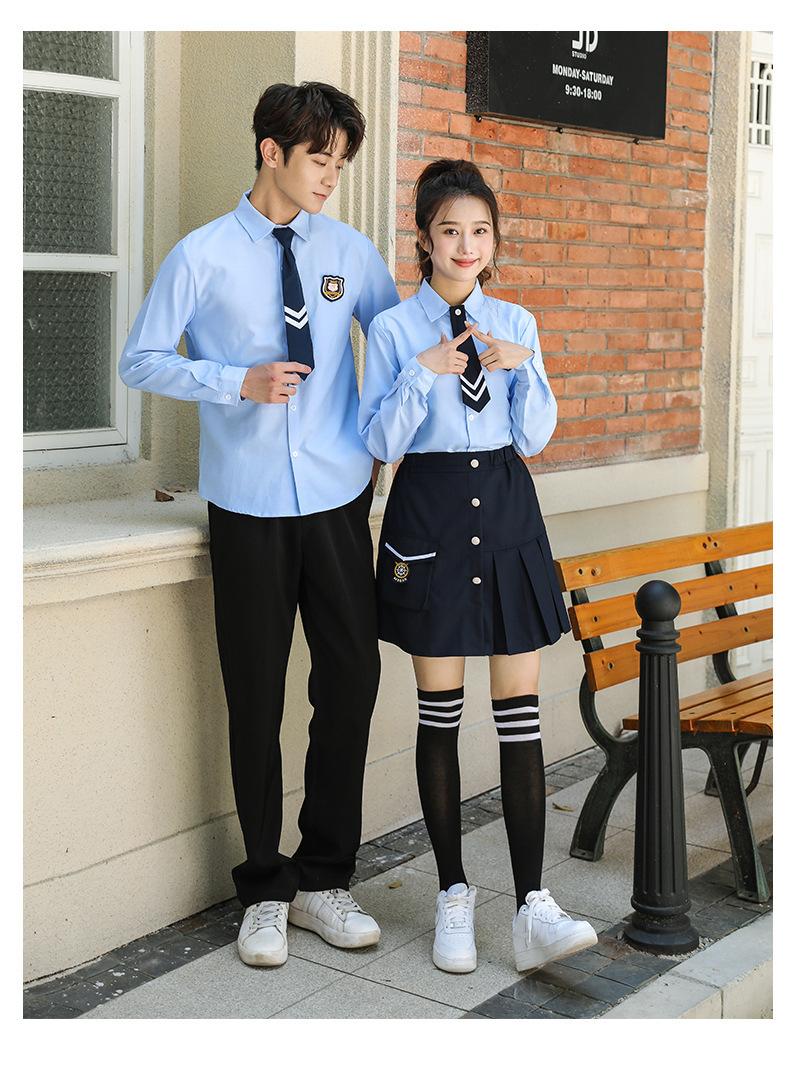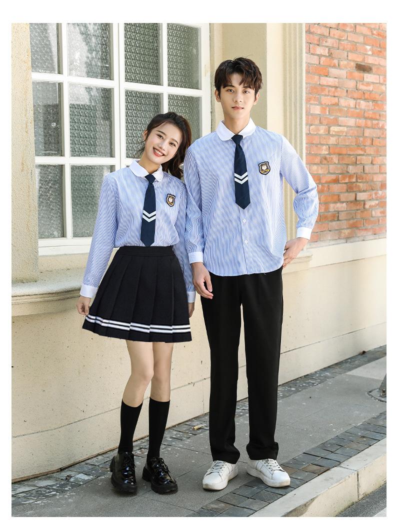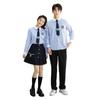 Women's thin blue stripe long sleeve + Pocket Skirt + navy tie + badge, Men's thin blue stripe long sleeve + b...