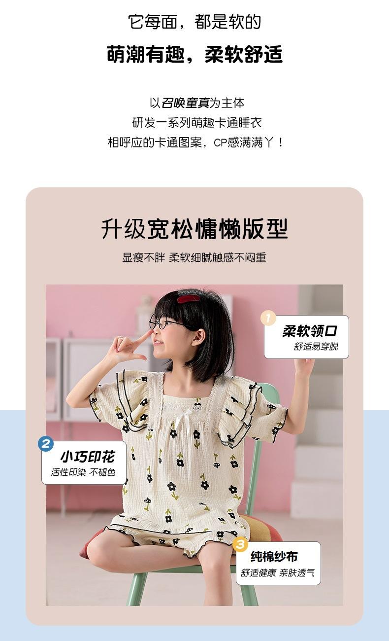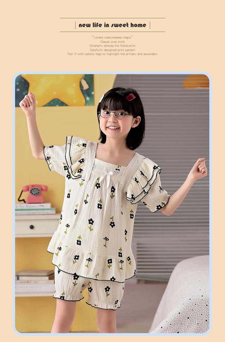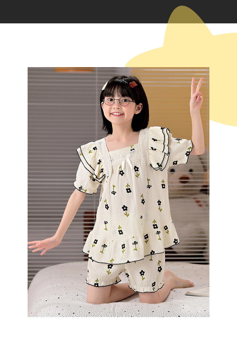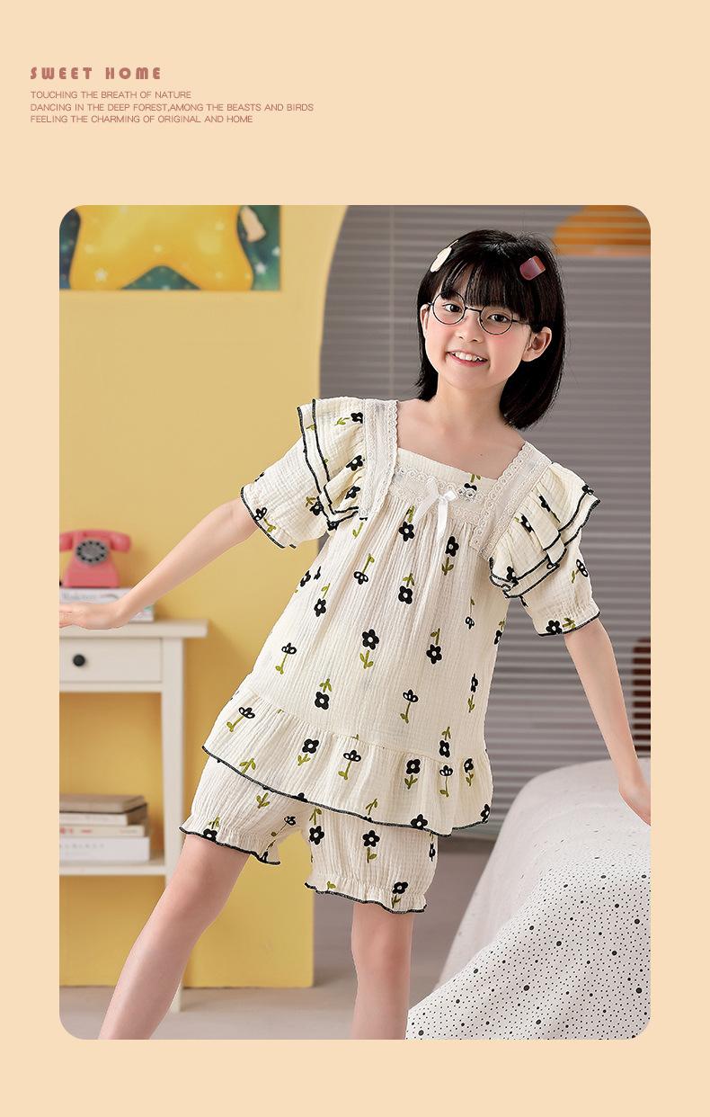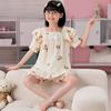 Pijamas para niñas primavera y otoño 2024 nuevo algodón puro gasa manga larga traje fino de verano para niñas