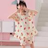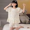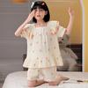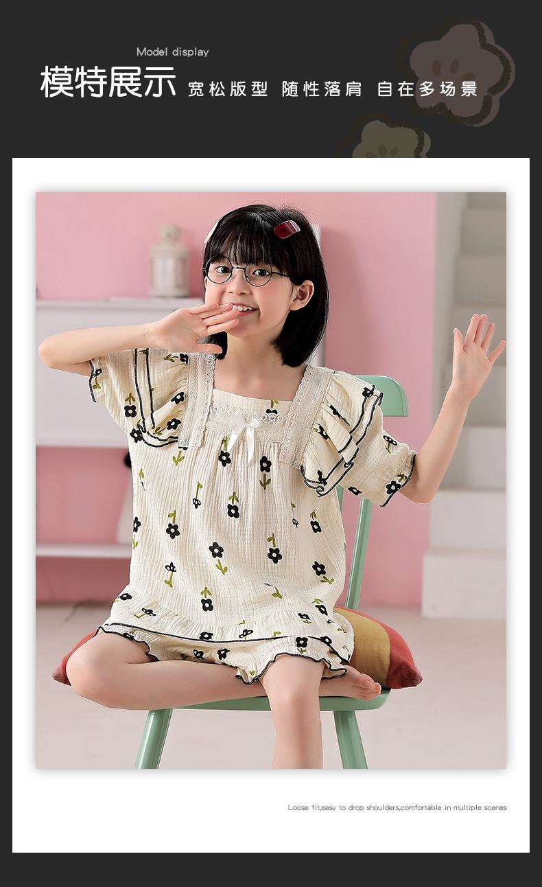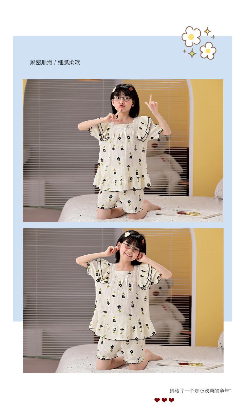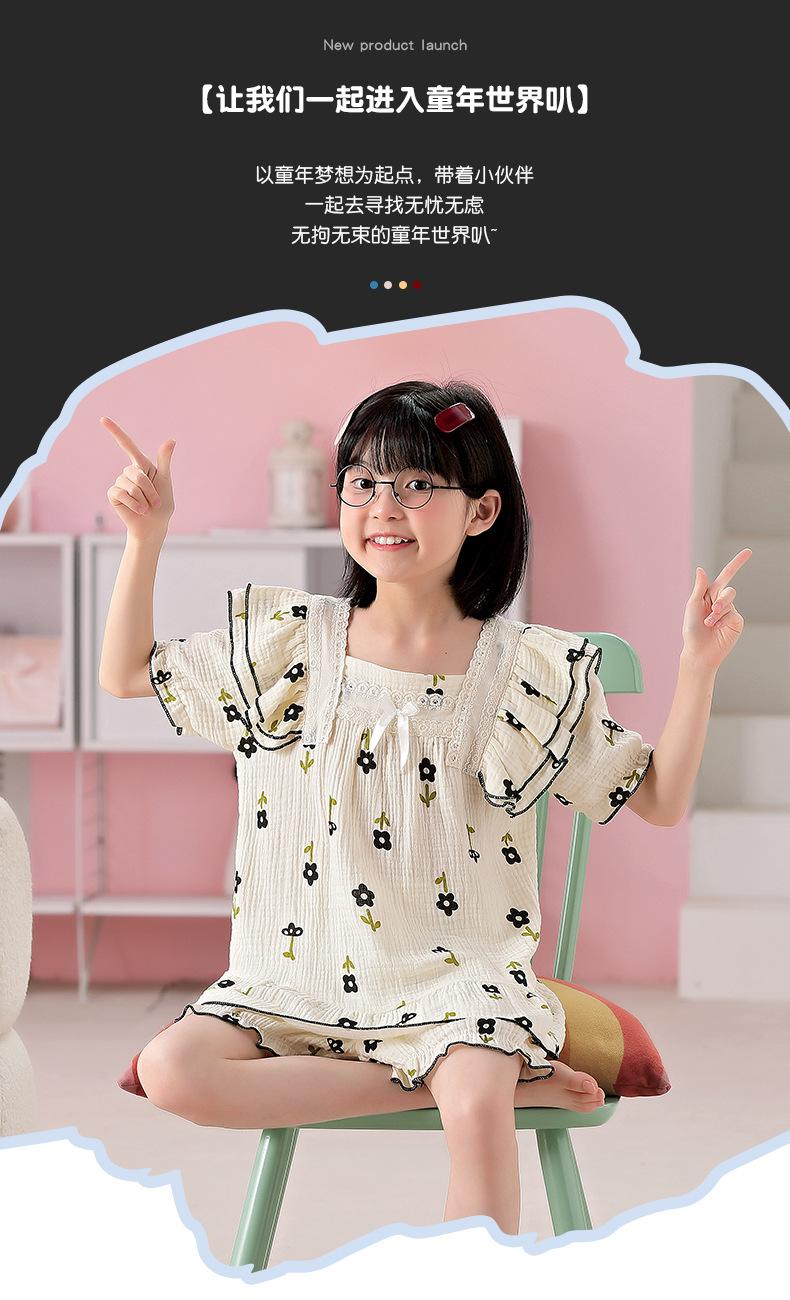 Pijamas para niñas primavera y otoño 2024 nuevo algodón puro gasa manga larga traje fino de verano para niñas