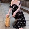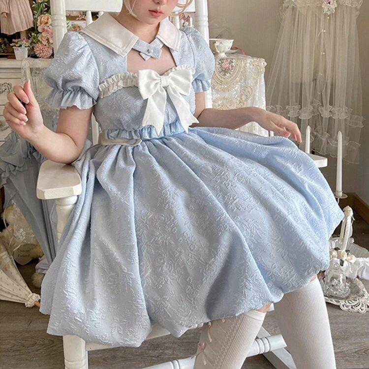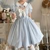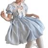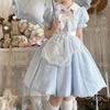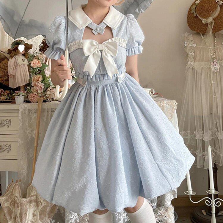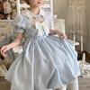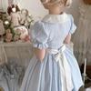Vestido estilo francés estilo suave azul manga abullonada para mujer verano nueva llegada lazo jacquard cintura ajustada corte slim vestido pengtu